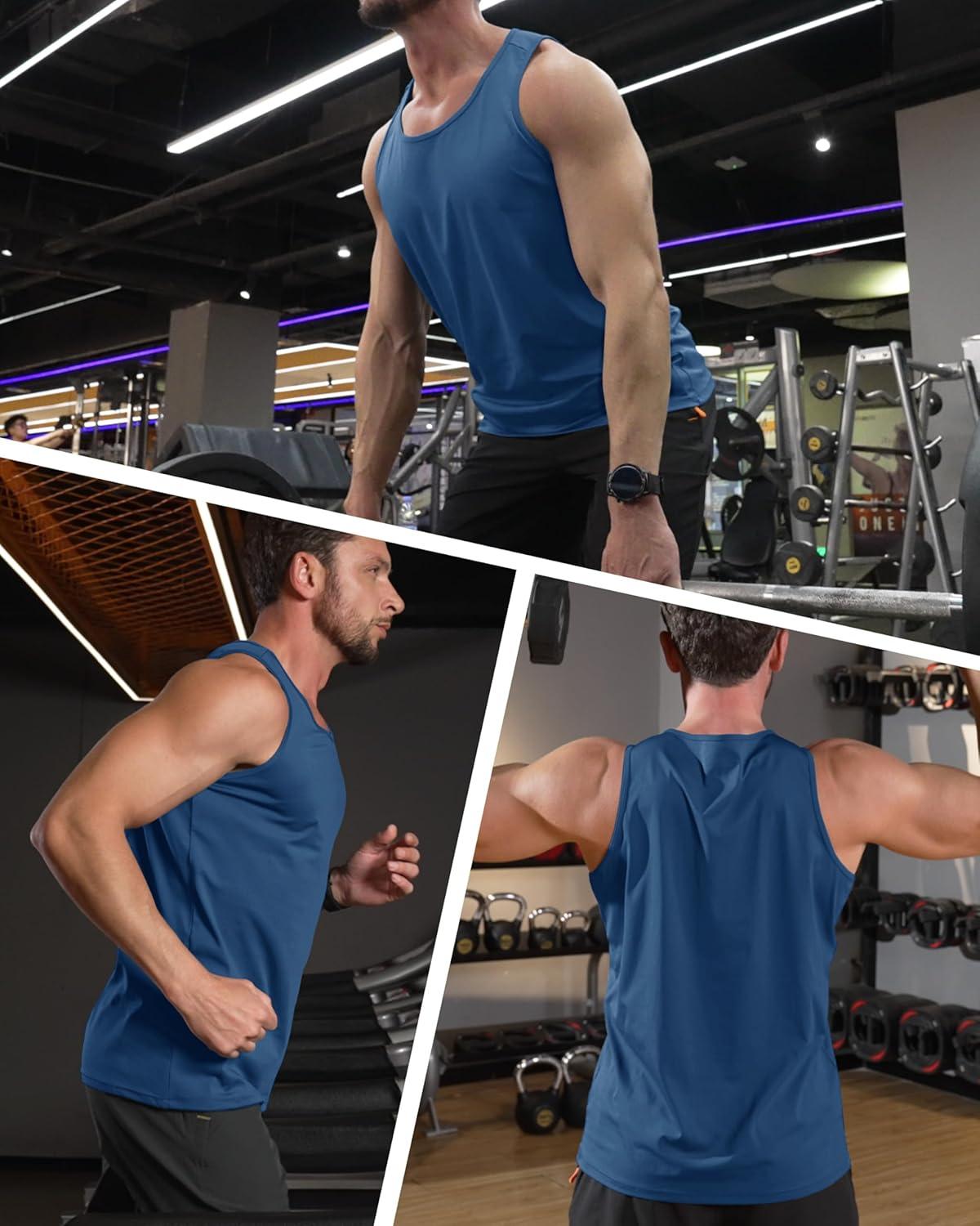 MAGCOMSEN Mens Workout Tank Tops Undershirt Cotton Muscle Athletic Sleeveless Shirts for Gym(Blue Grey)