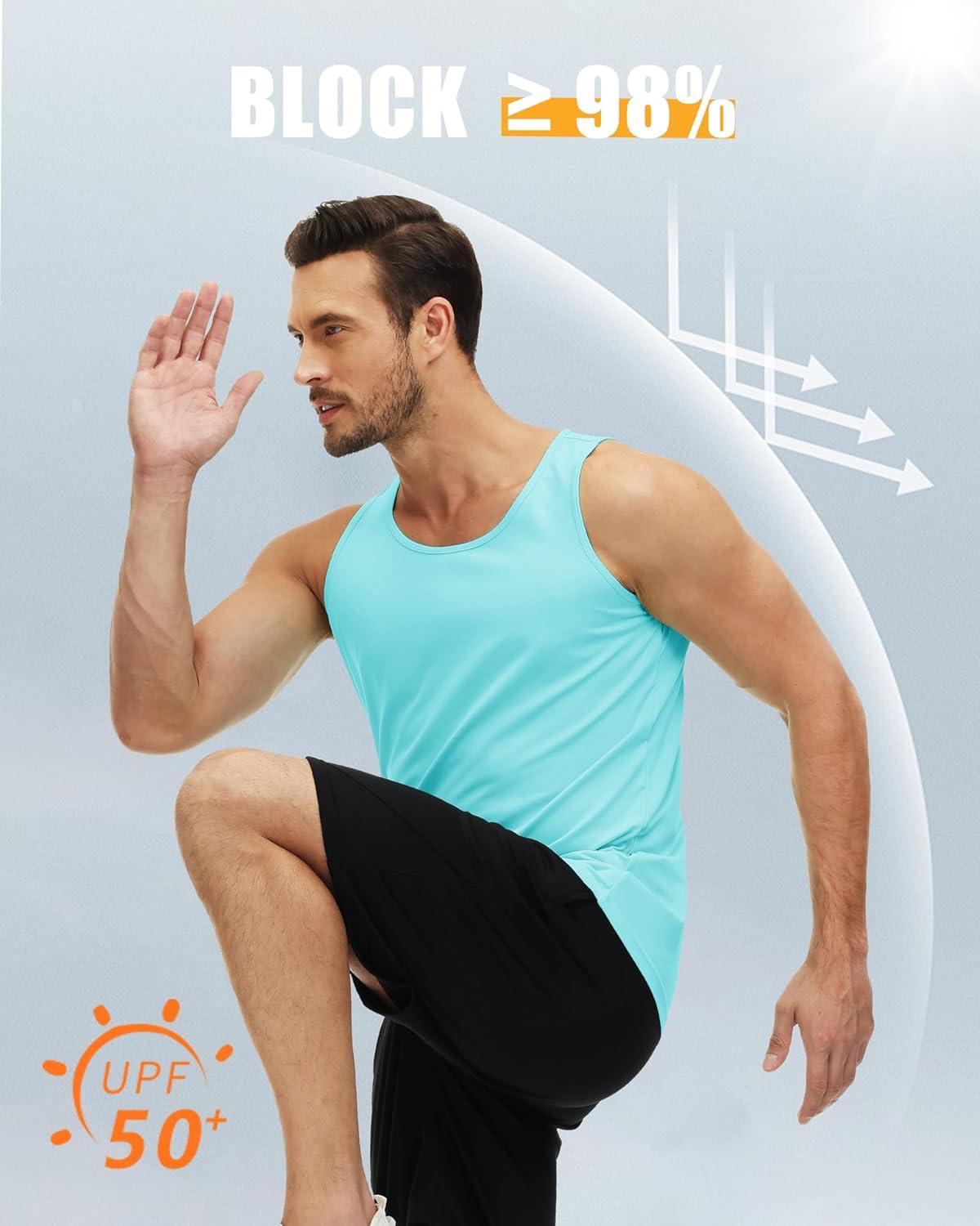 MAGCOMSEN Mens Workout Tank Tops Undershirt Cotton Muscle Athletic Sleeveless Shirts for Gym(Lake Blue)