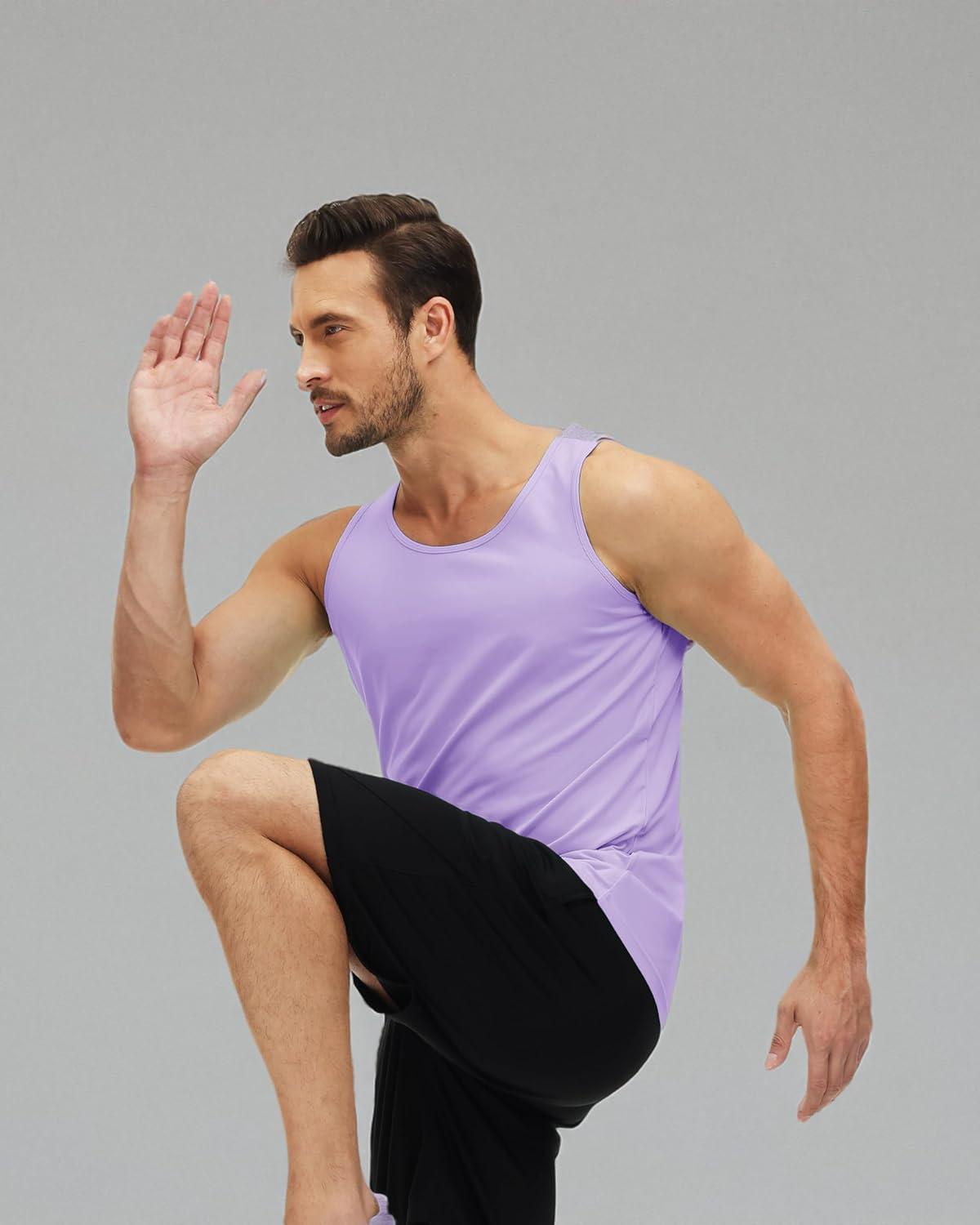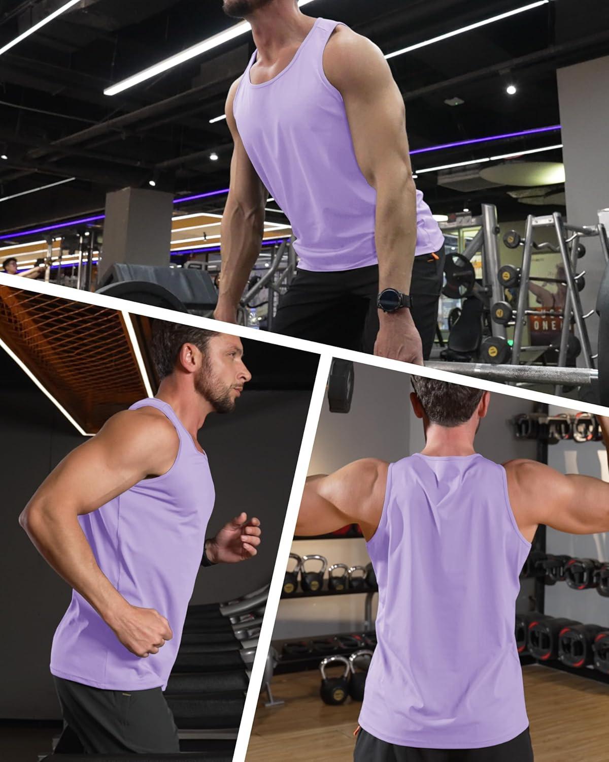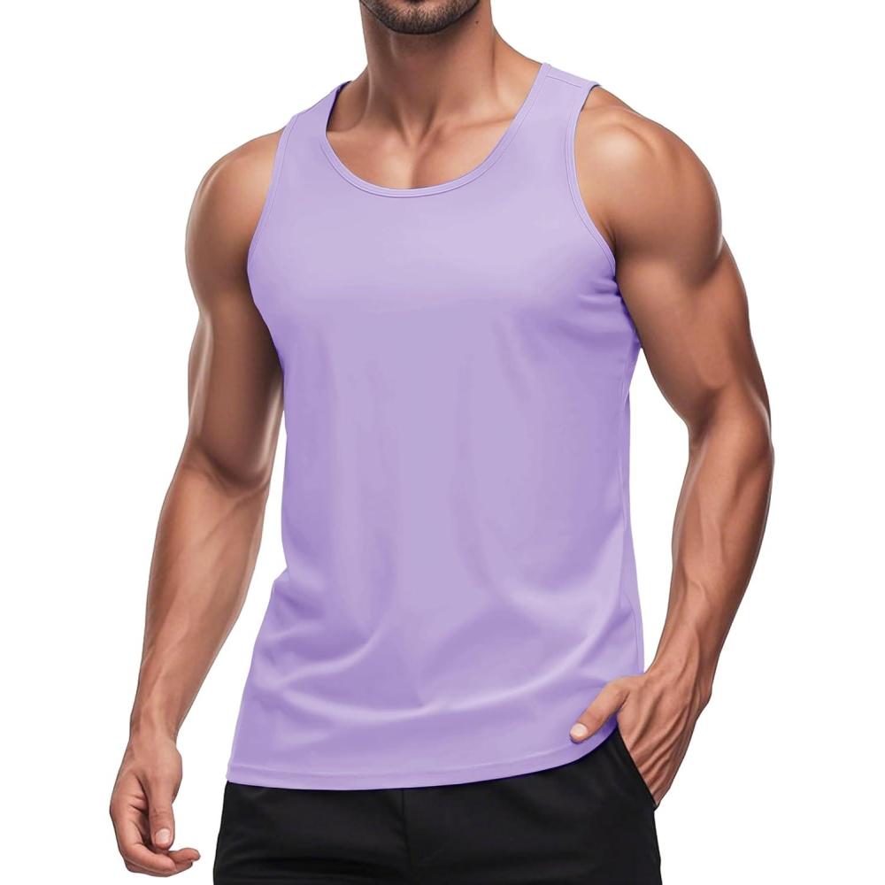 MAGCOMSEN Mens Workout Tank Tops Undershirt Cotton Muscle Athletic Sleeveless Shirts for Gym(Light Purple)