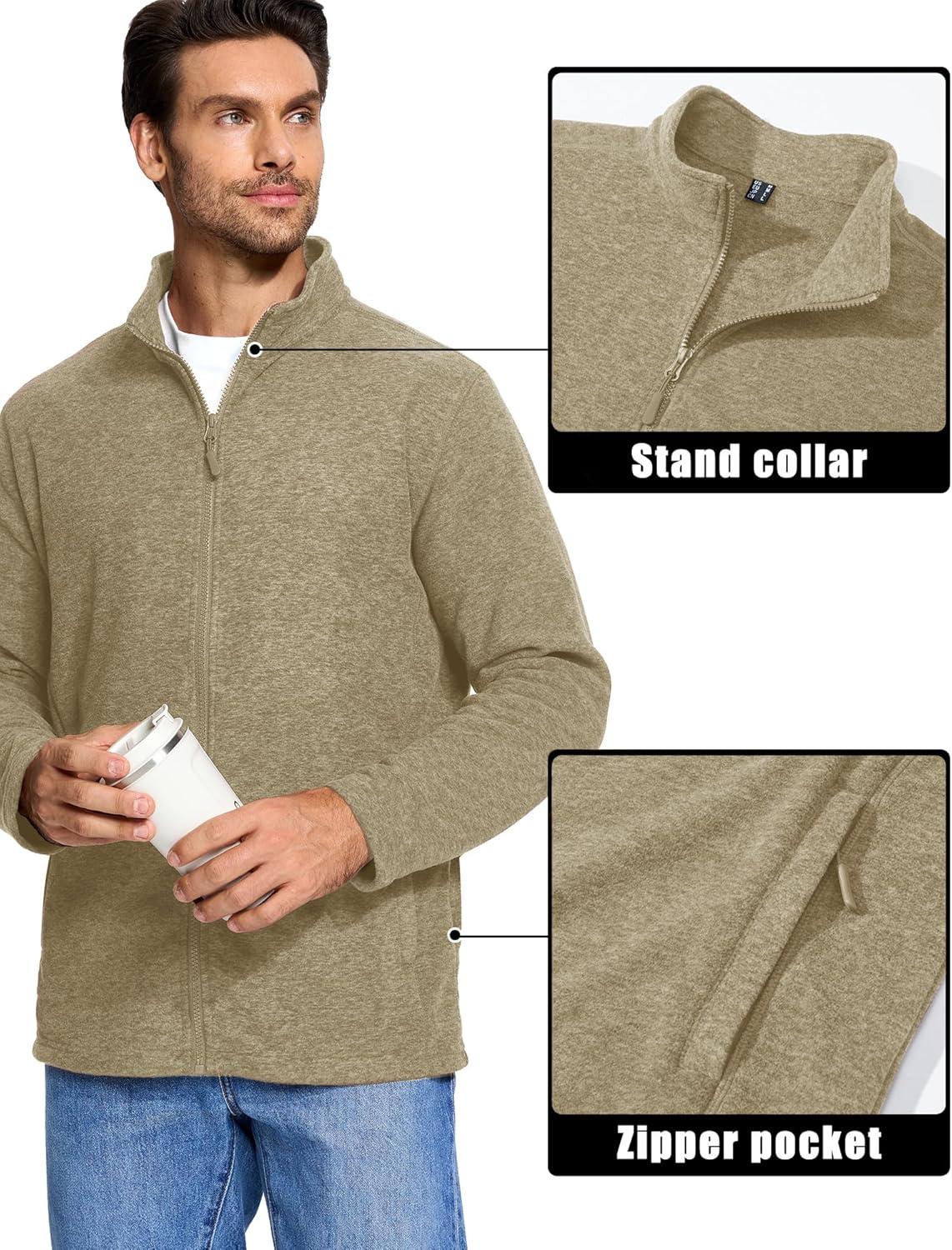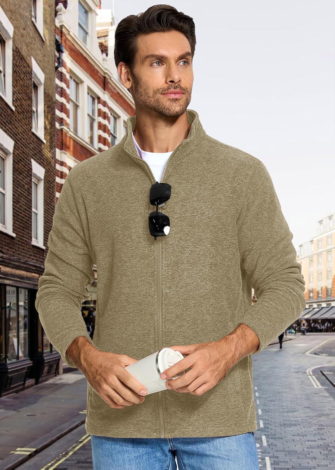 MAGCOMSEN Mens Zip Up Sweatshirt Casual Fleece Jacket with Zipper Pockets and Stand Collar(Brown)