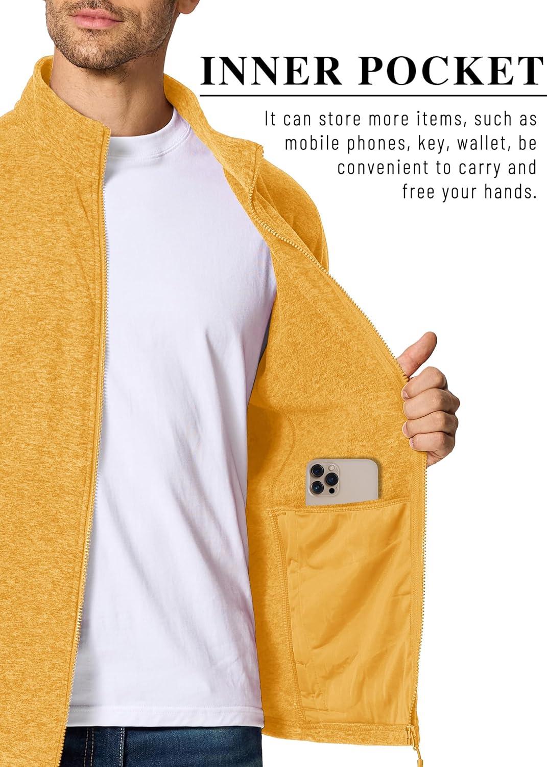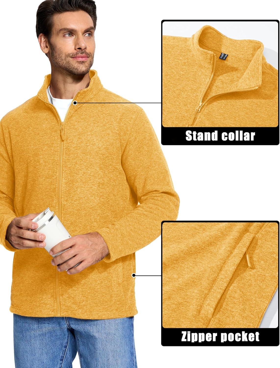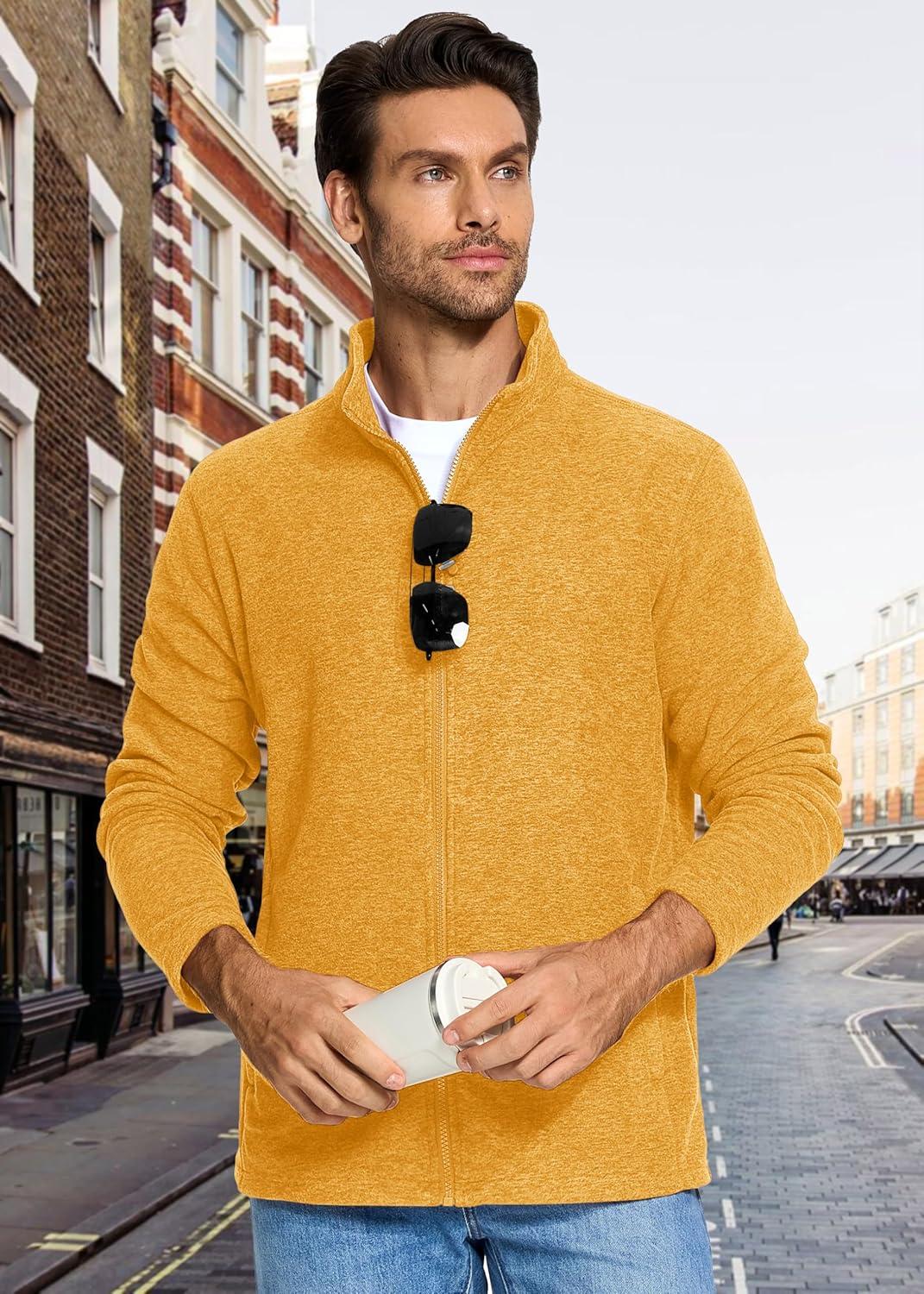 MAGCOMSEN Mens Zip Up Sweatshirt Casual Fleece Jacket with Zipper Pockets and Stand Collar(Ginger)
