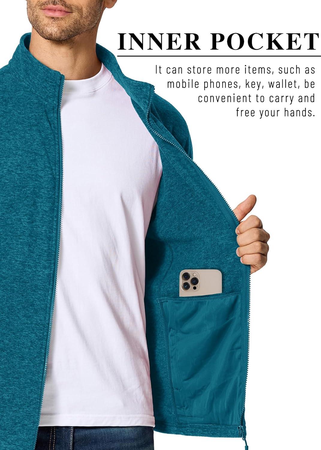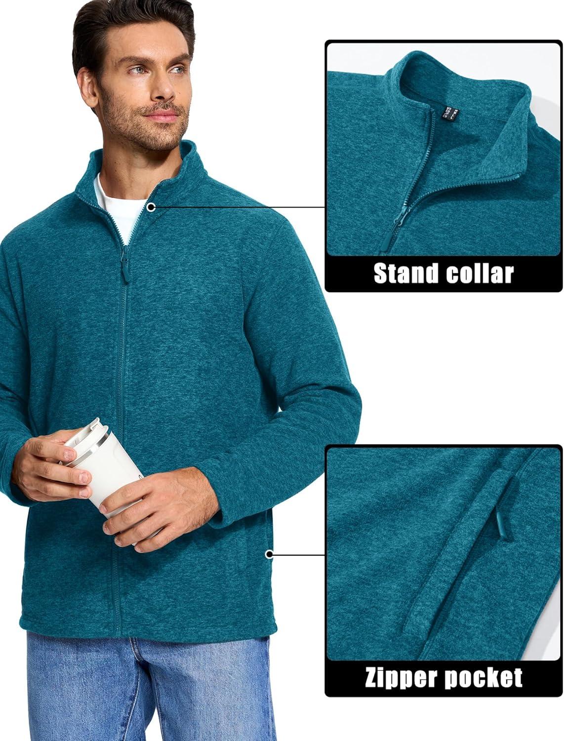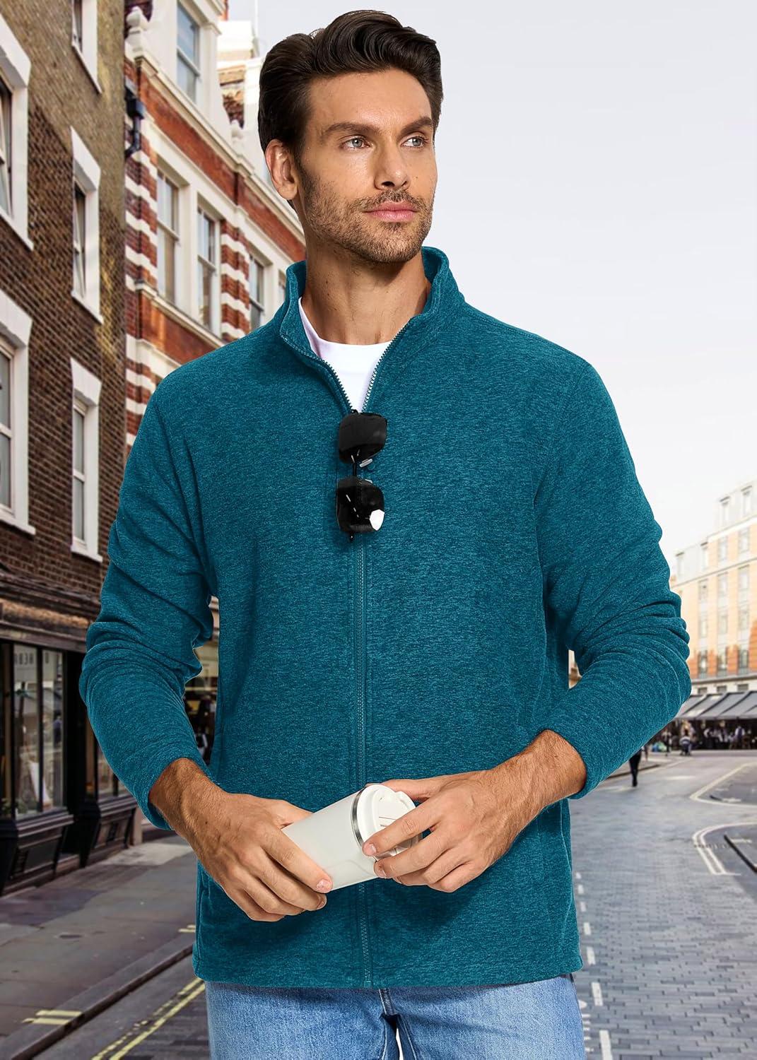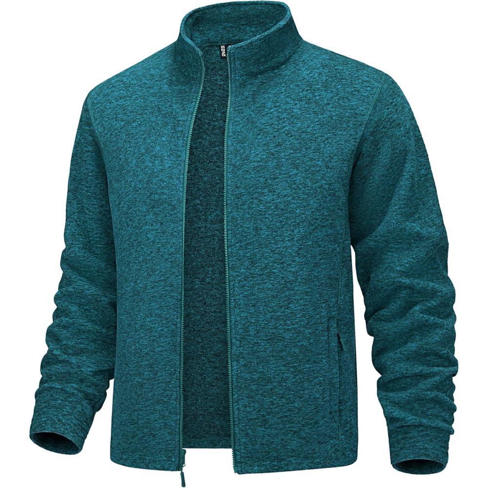 MAGCOMSEN Mens Zip Up Sweatshirt Casual Fleece Jacket with Zipper Pockets and Stand Collar(Peacock Blue)
