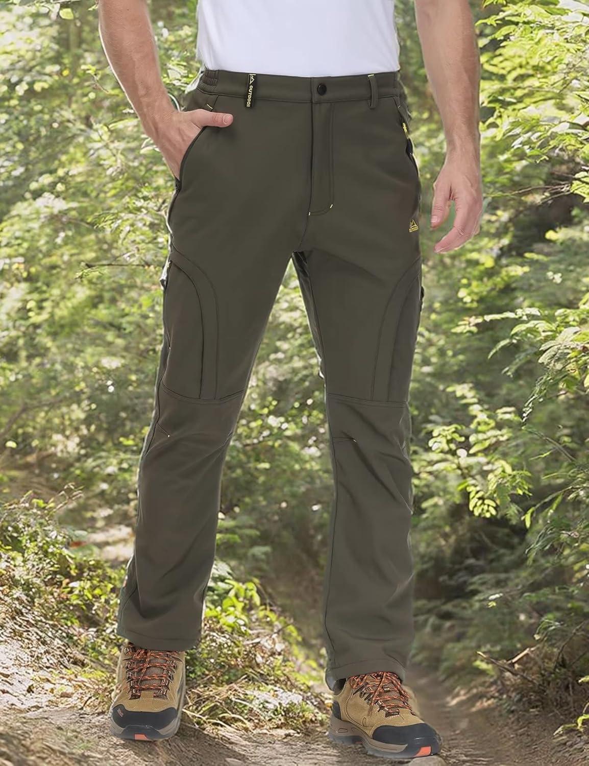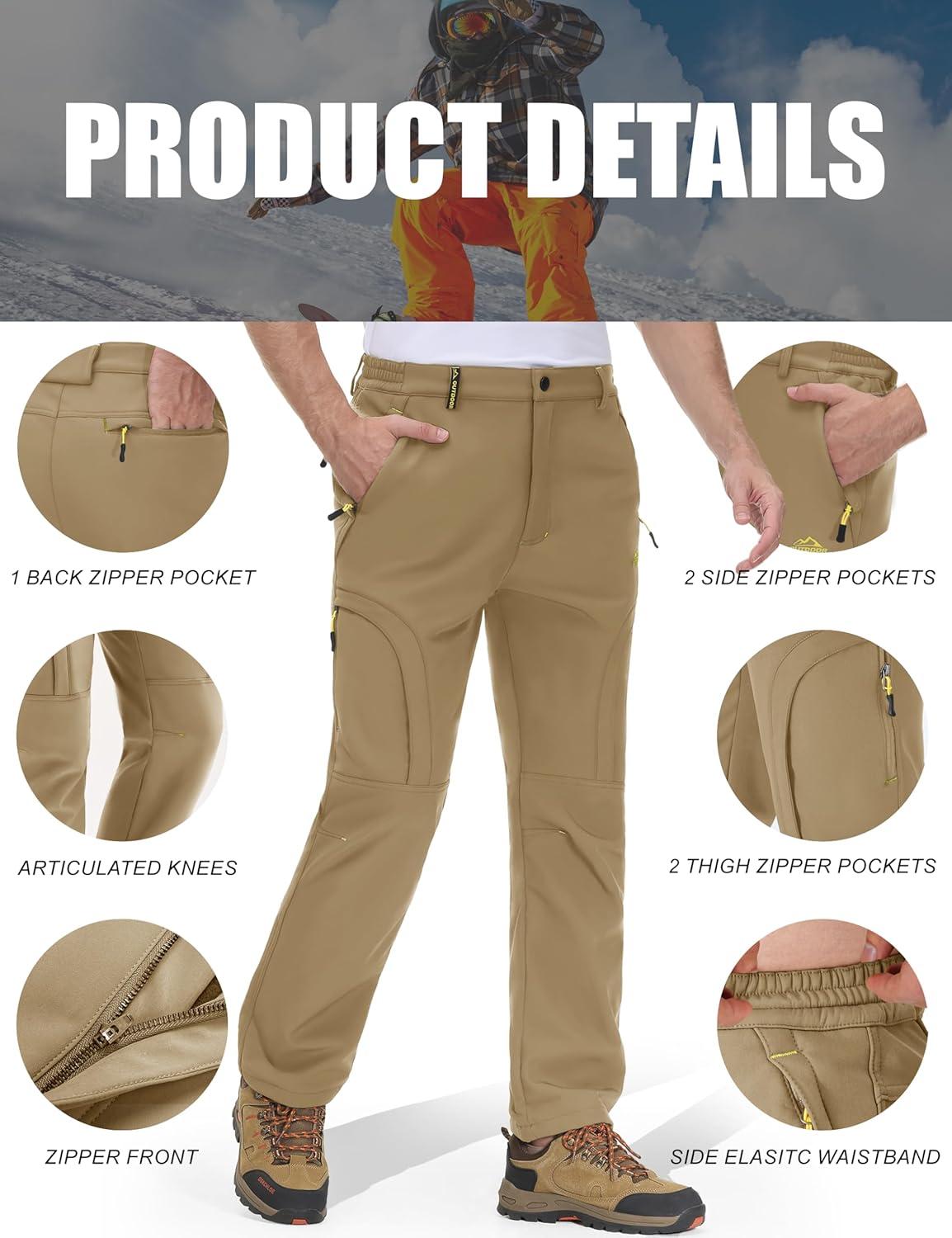 MAGCOMSEN Snow Pants for Men Water Resistant Fleece Lined 5 Zipper Pockets Winter Snowboard Hiking Insulated Ski Pants(Sand)