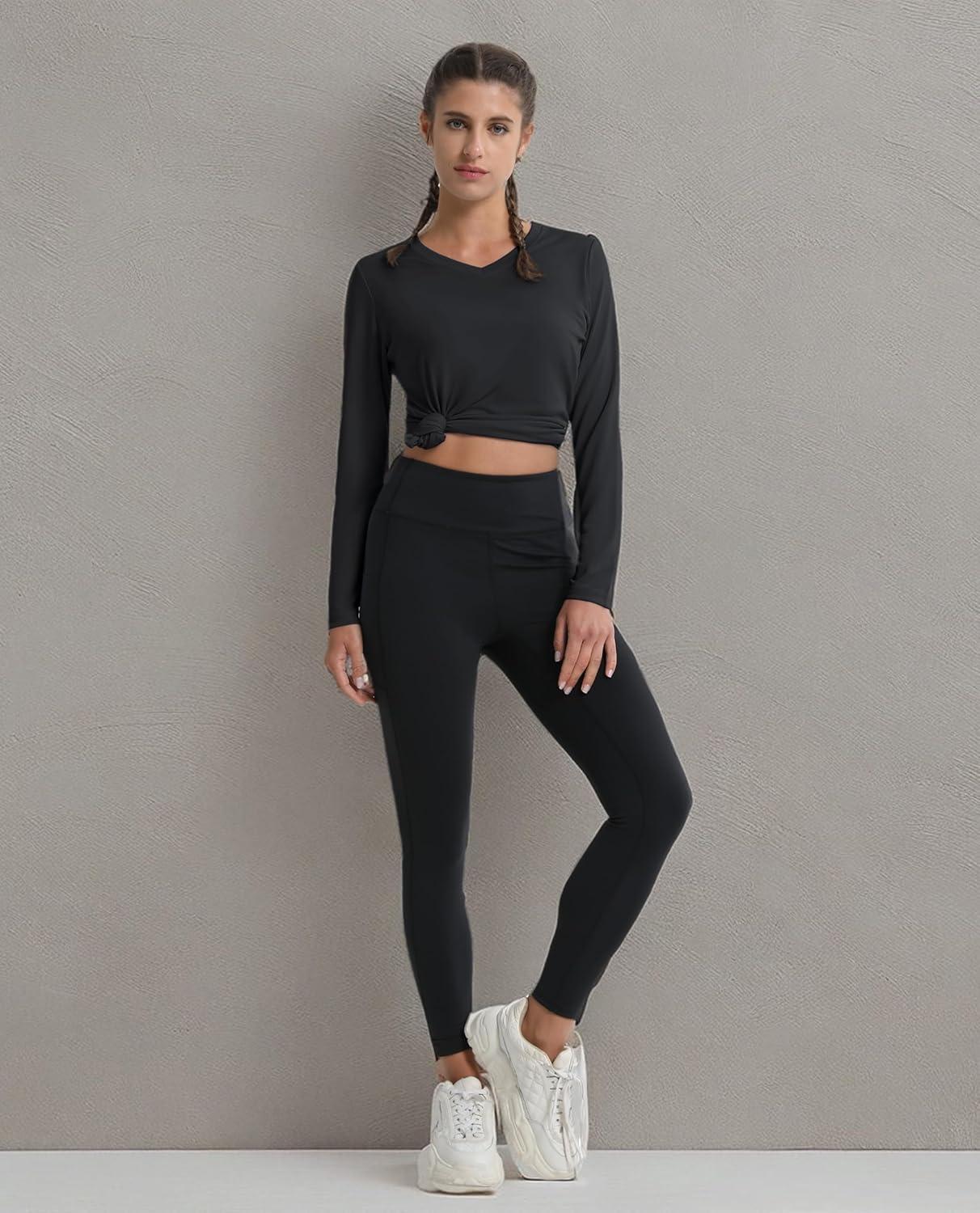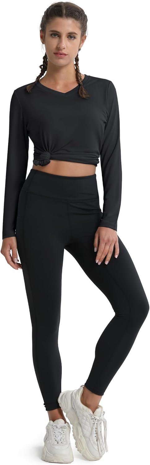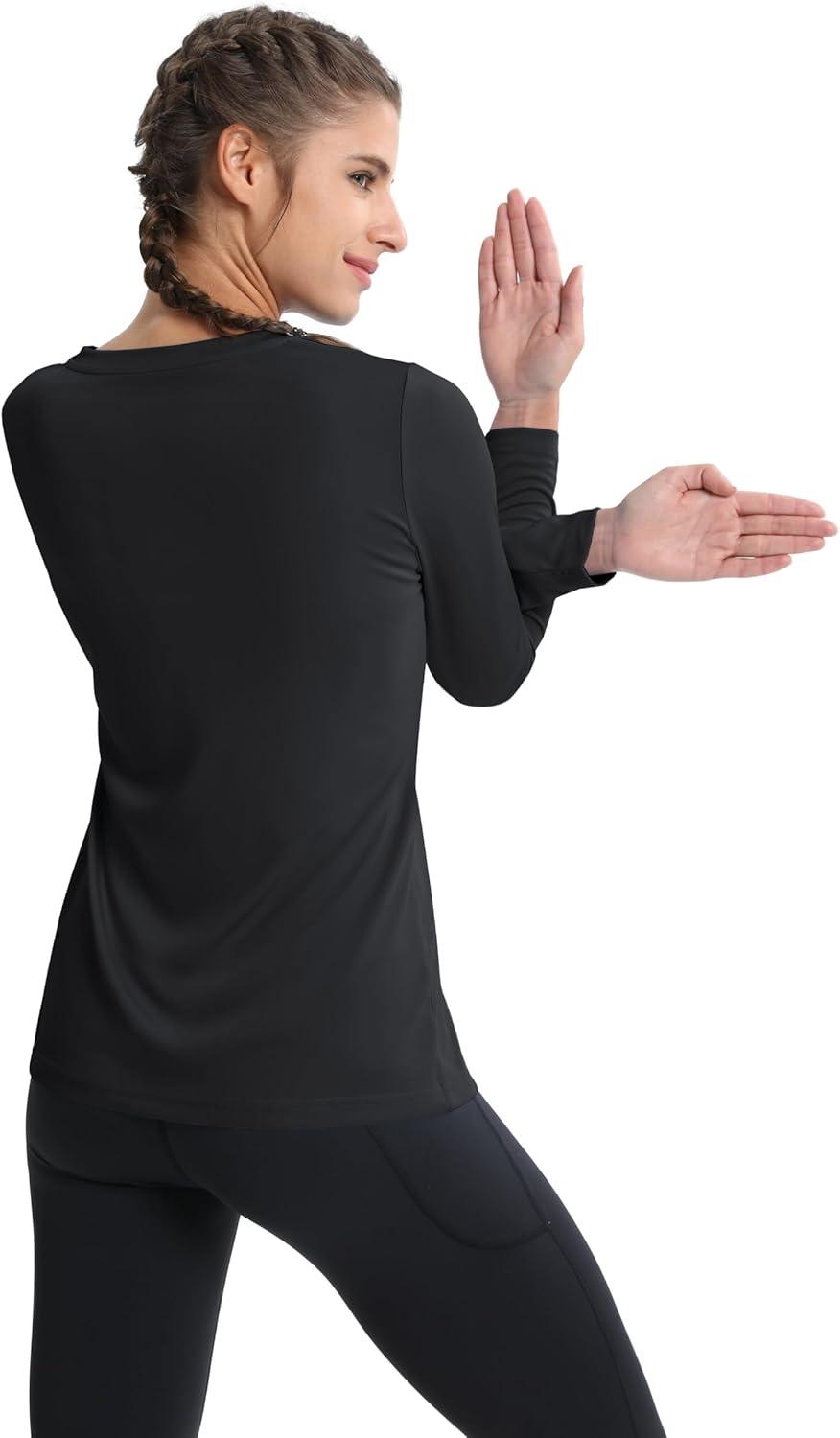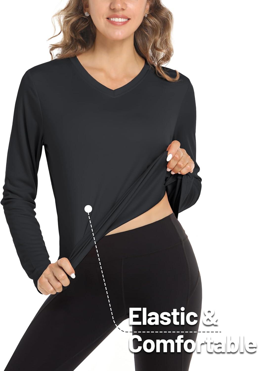 MAGCOMSEN SPF Shirts for Women Long Sleeve Workout Tops V-Neck UPF 50+ UV Sun Shirt Quick Dry Performance Tees Swim Tops(Black)