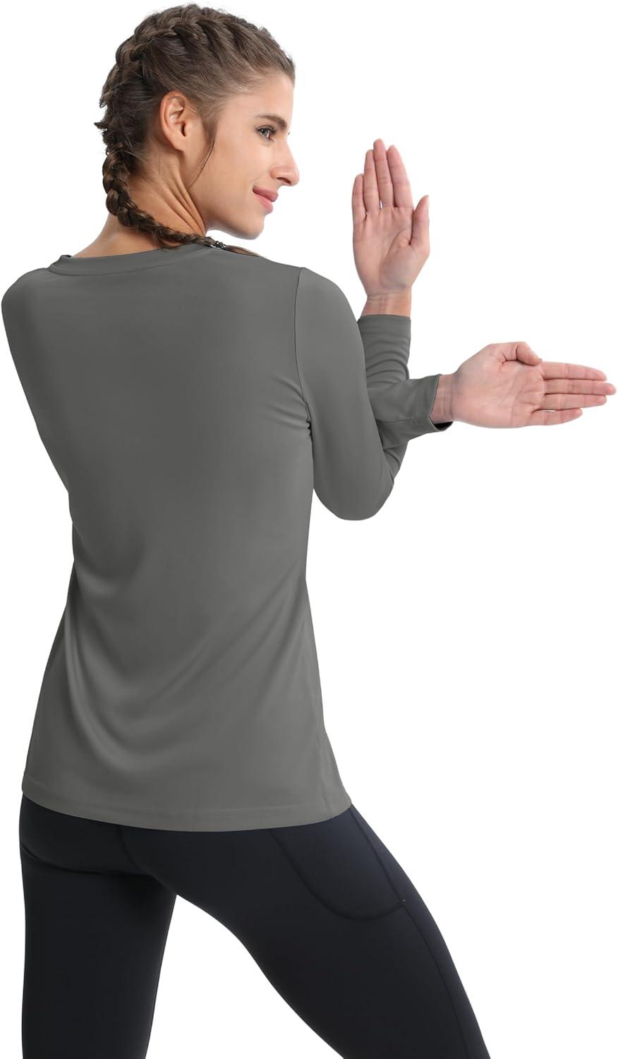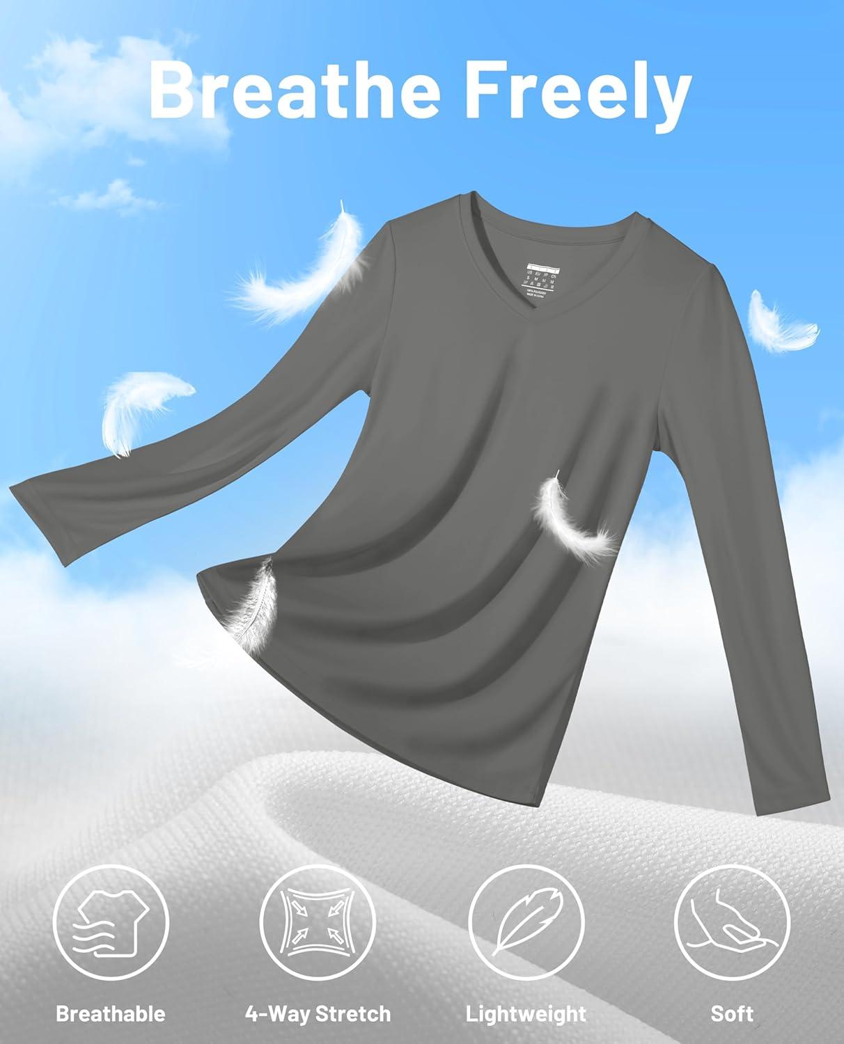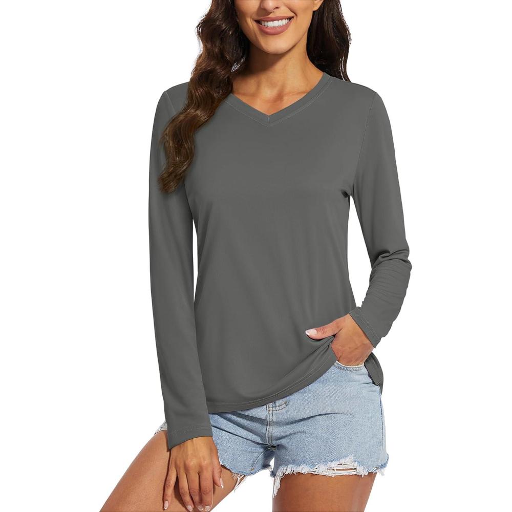 MAGCOMSEN SPF Shirts for Women Long Sleeve Workout Tops V-Neck UPF 50+ UV Sun Shirt Quick Dry Performance Tees Swim Tops(Dark Grey)