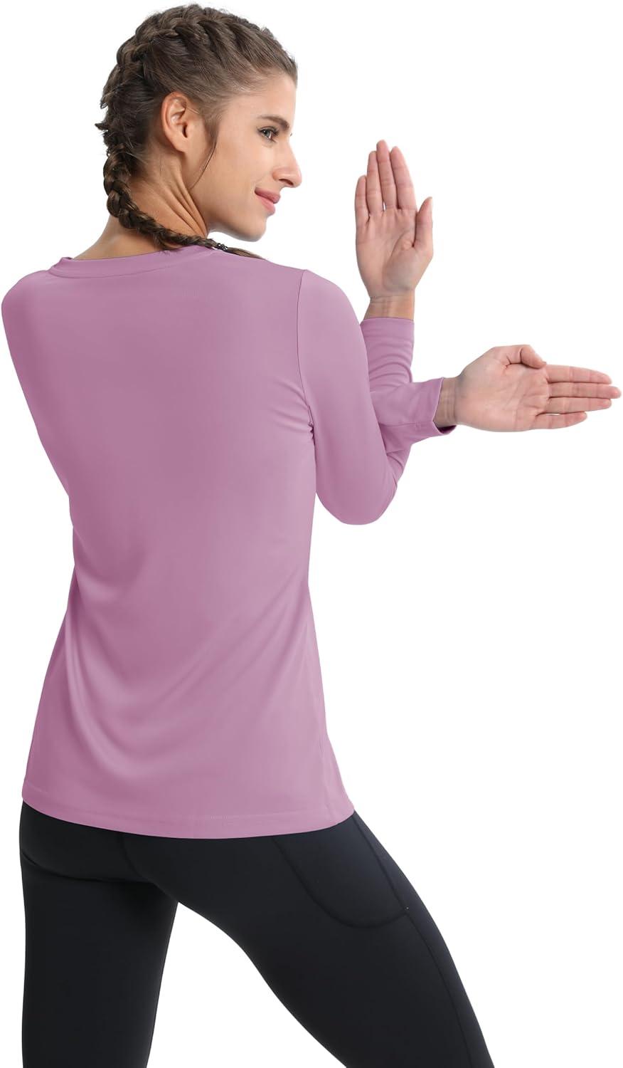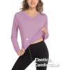 MAGCOMSEN SPF Shirts for Women Long Sleeve Workout Tops V-Neck UPF 50+ UV Sun Shirt Quick Dry Performance Tees Swim Tops(Grey Pruple)