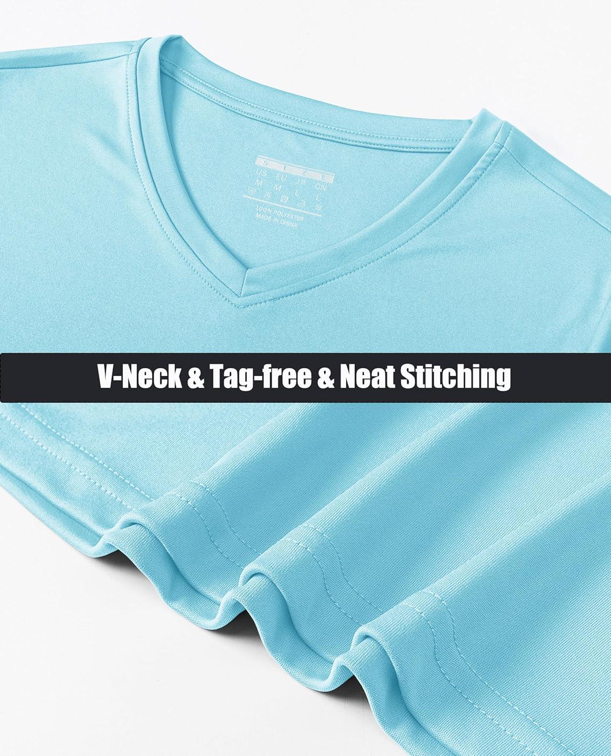 MAGCOMSEN SPF Shirts for Women Long Sleeve Workout Tops V-Neck UPF 50+ UV Sun Shirt Quick Dry Performance Tees Swim Tops(Lake Blue)