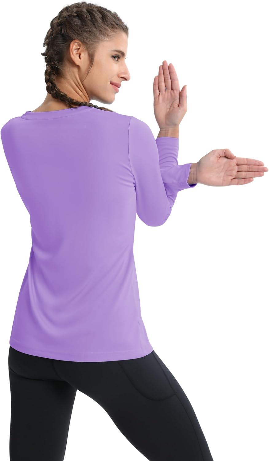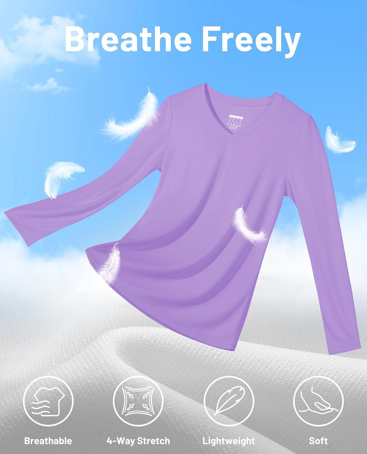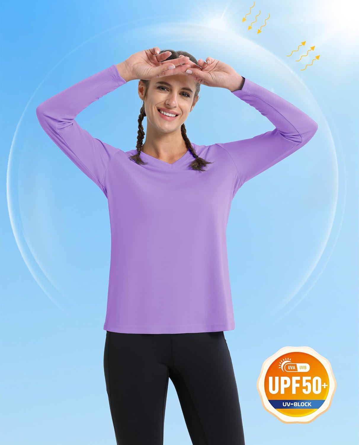 MAGCOMSEN SPF Shirts for Women Long Sleeve Workout Tops V-Neck UPF 50+ UV Sun Shirt Quick Dry Performance Tees Swim Tops(Light Purple)