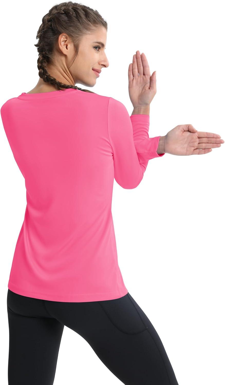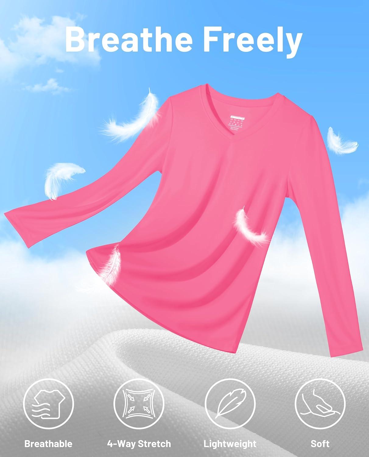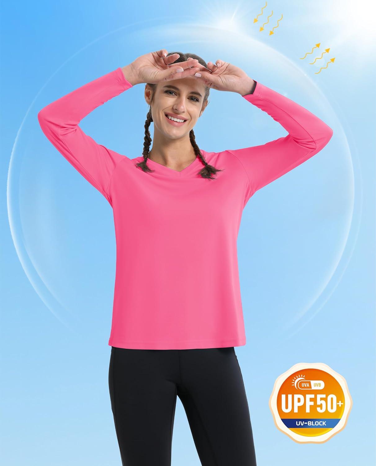 MAGCOMSEN SPF Shirts for Women Long Sleeve Workout Tops V-Neck UPF 50+ UV Sun Shirt Quick Dry Performance Tees Swim Tops(Rose)