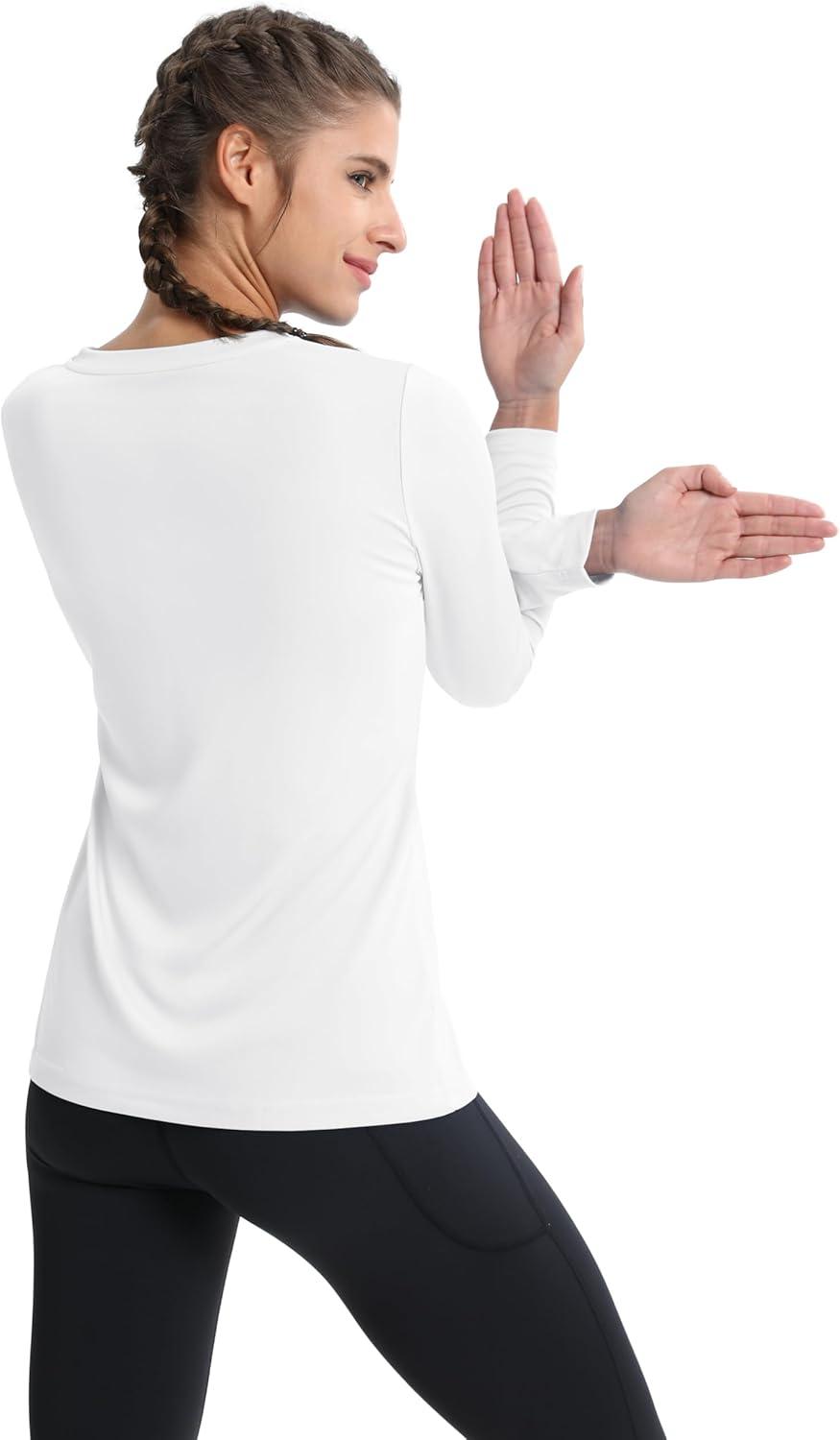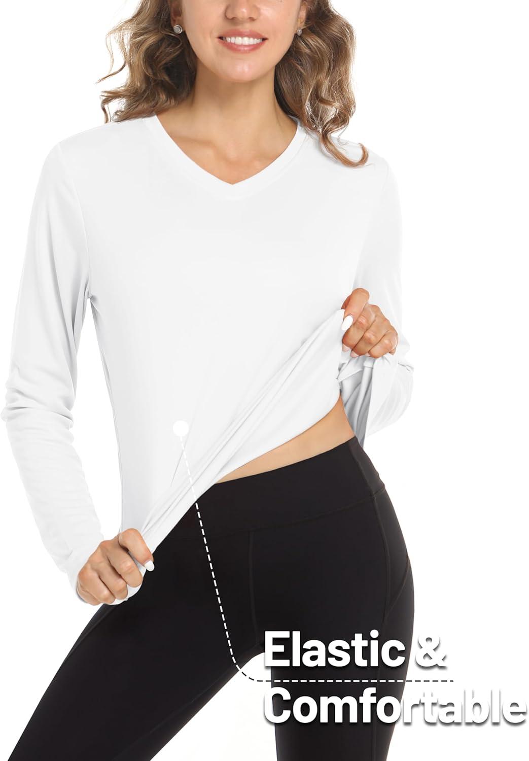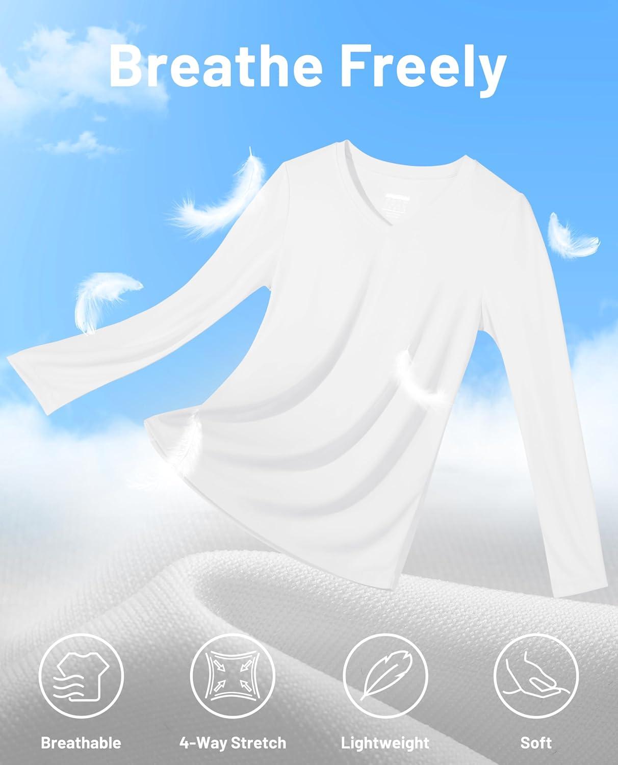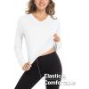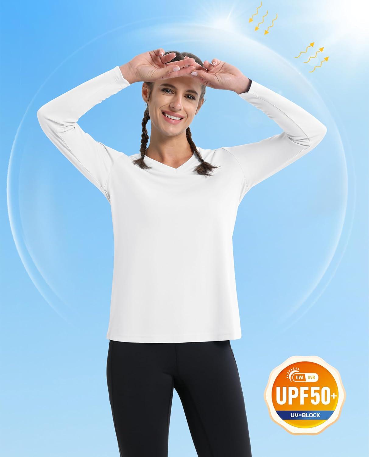 MAGCOMSEN SPF Shirts for Women Long Sleeve Workout Tops V-Neck UPF 50+ UV Sun Shirt Quick Dry Performance Tees Swim Tops(White)
