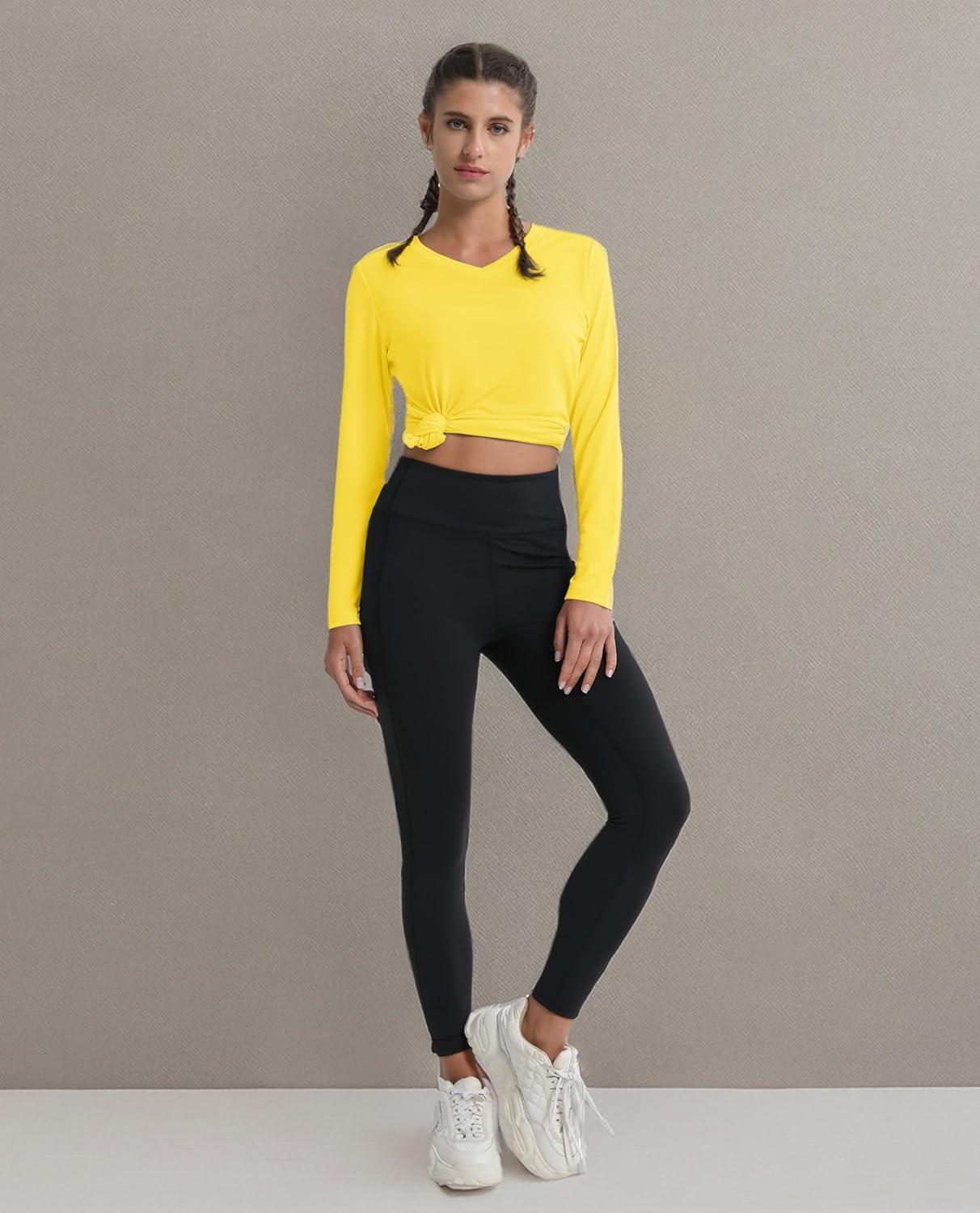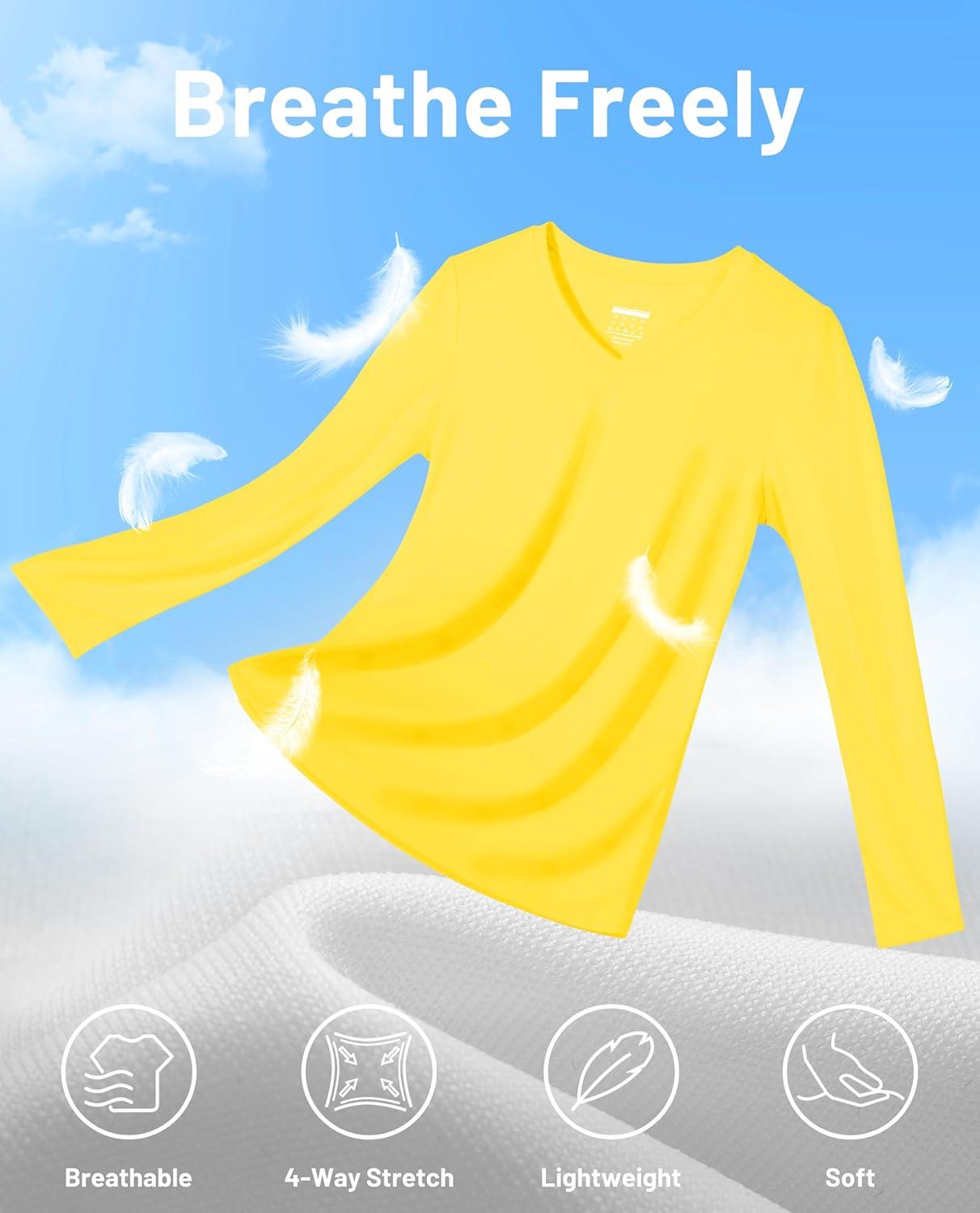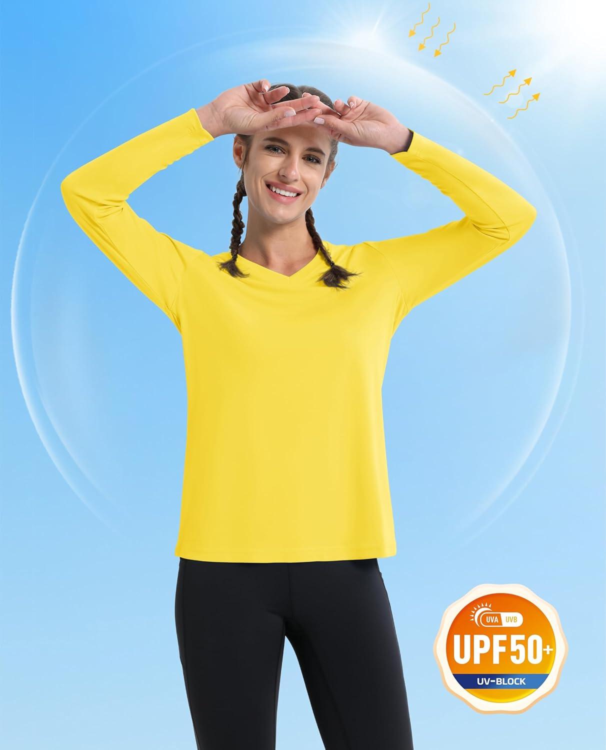 MAGCOMSEN SPF Shirts for Women Long Sleeve Workout Tops V-Neck UPF 50+ UV Sun Shirt Quick Dry Performance Tees Swim Tops(Yellow)