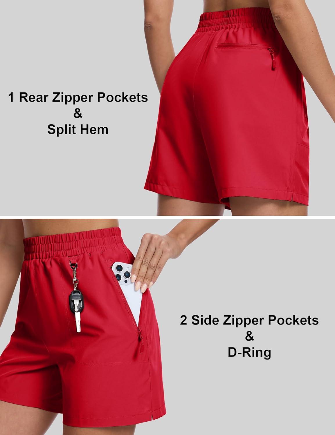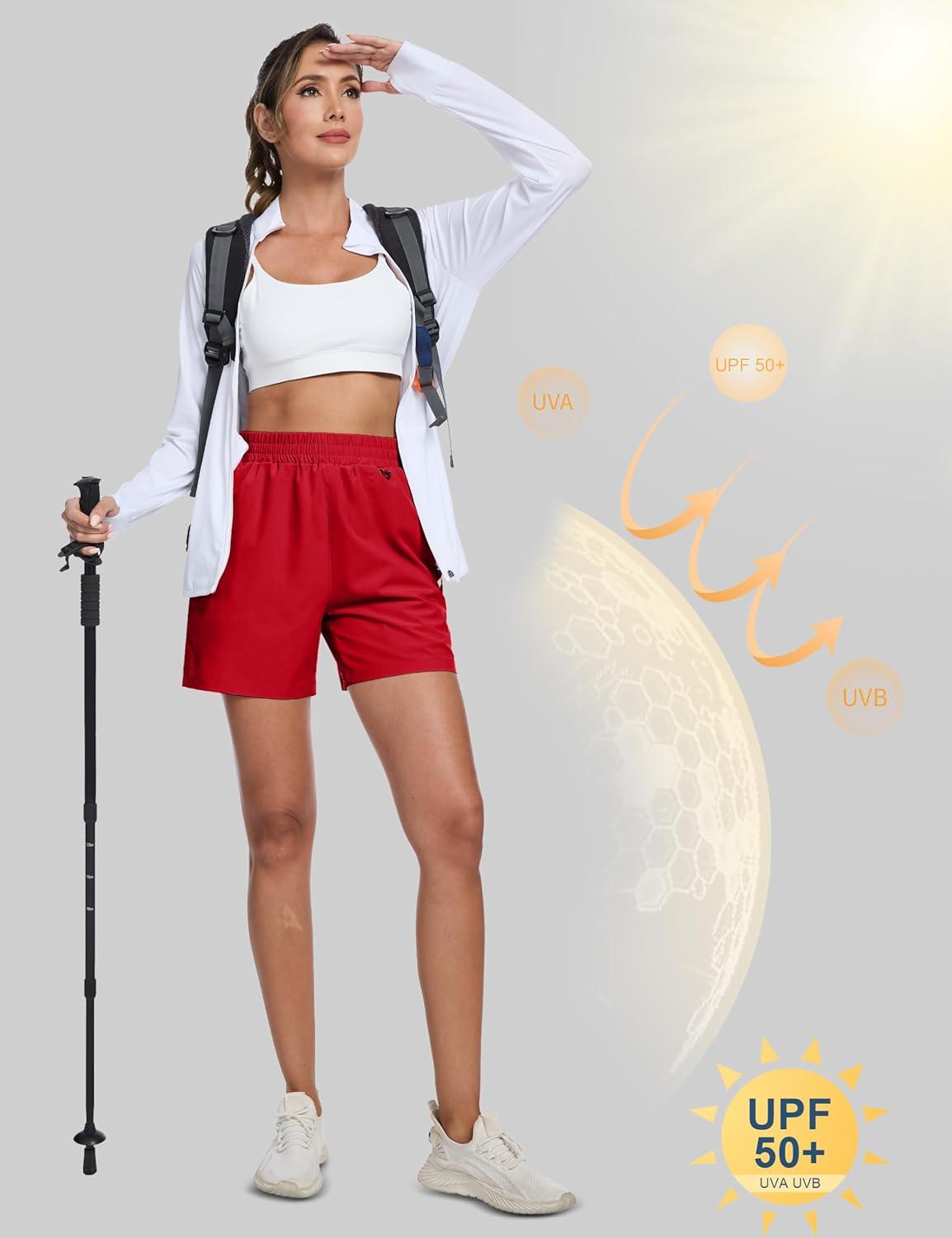 MAGCOMSEN Women’s 5″ Hiking Cargo Shorts UPF 50+ Quick Dry Lightweight Golf Athletic Casual Summer Shorts with Pockets(Red)