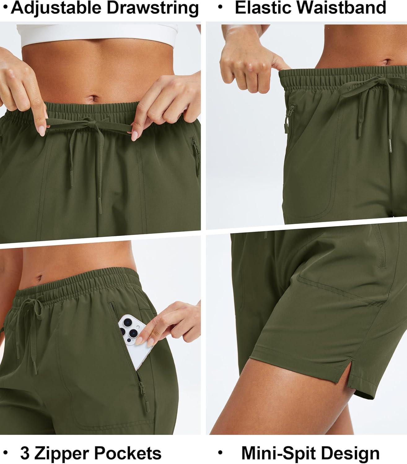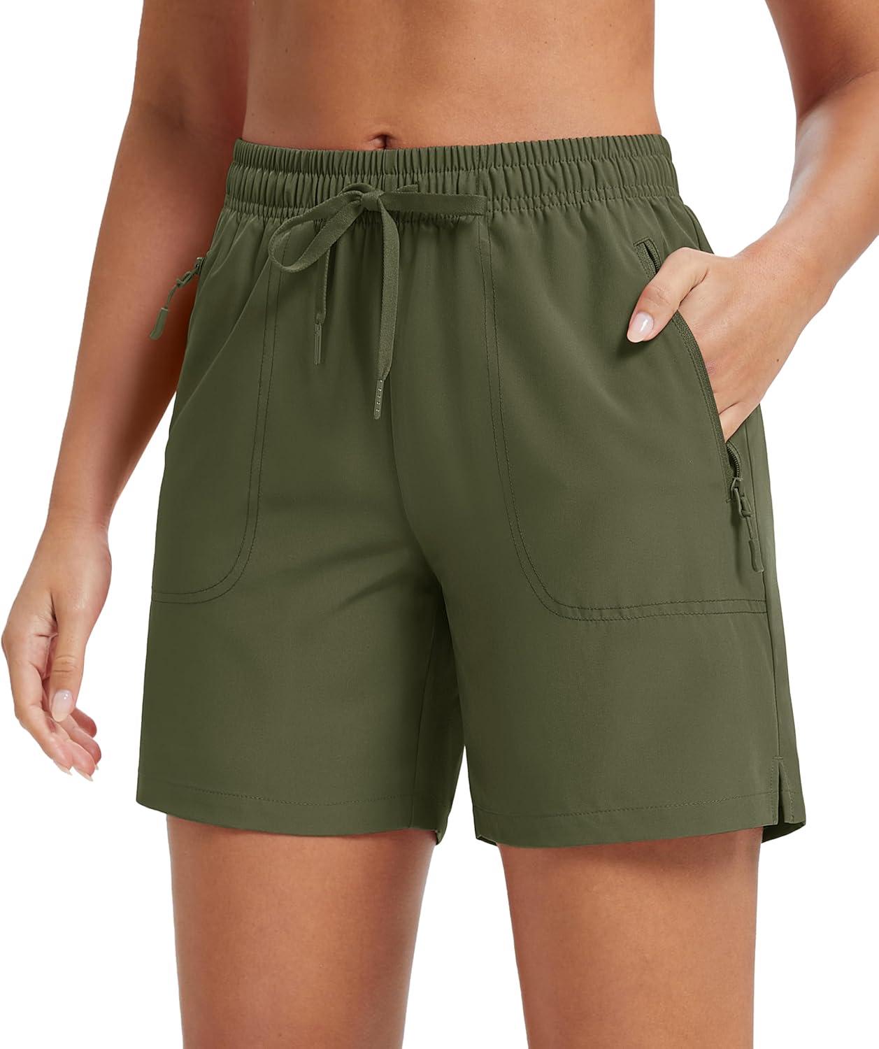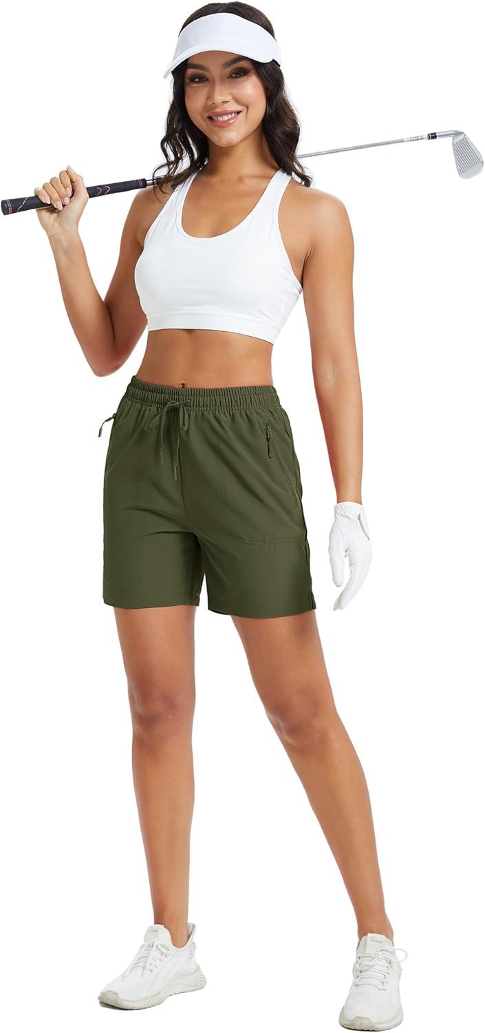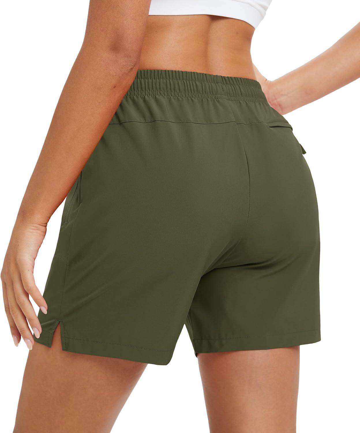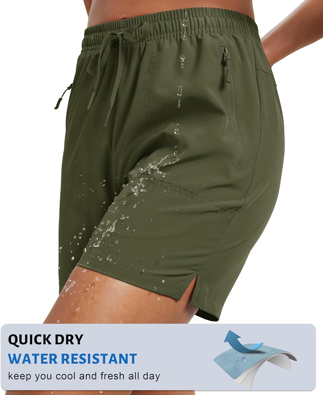 MAGCOMSEN Women’s 5″ Hiking Shorts UPF 50+ Quick Dry Lightweight Athletic Running Golf Summer Casual Shorts with Pockets(Army Green)