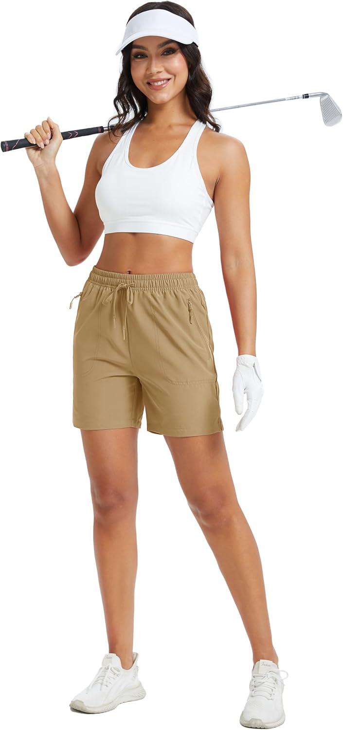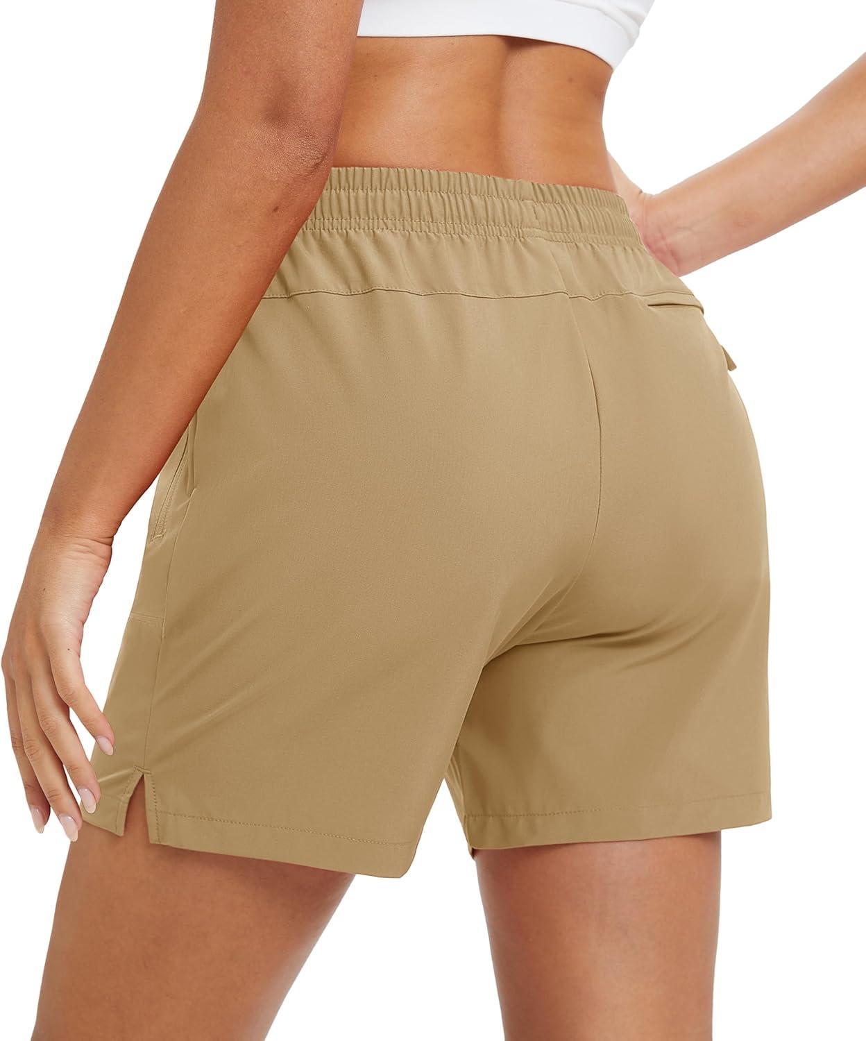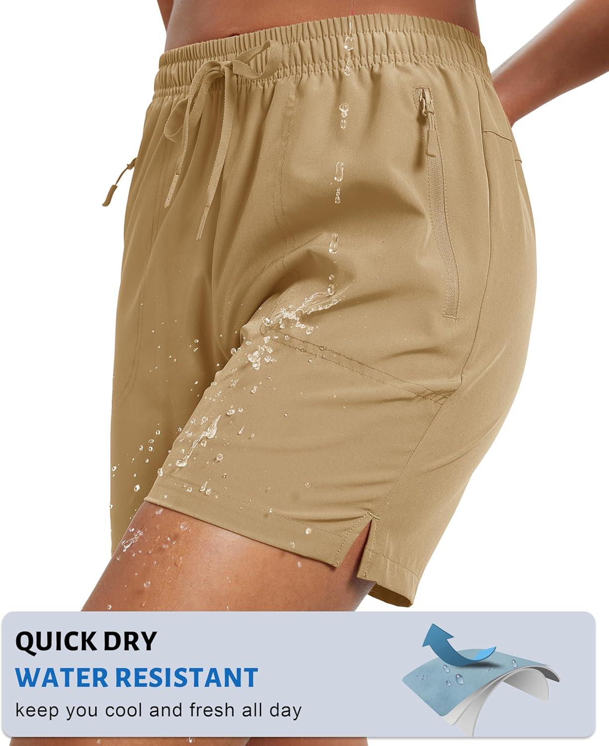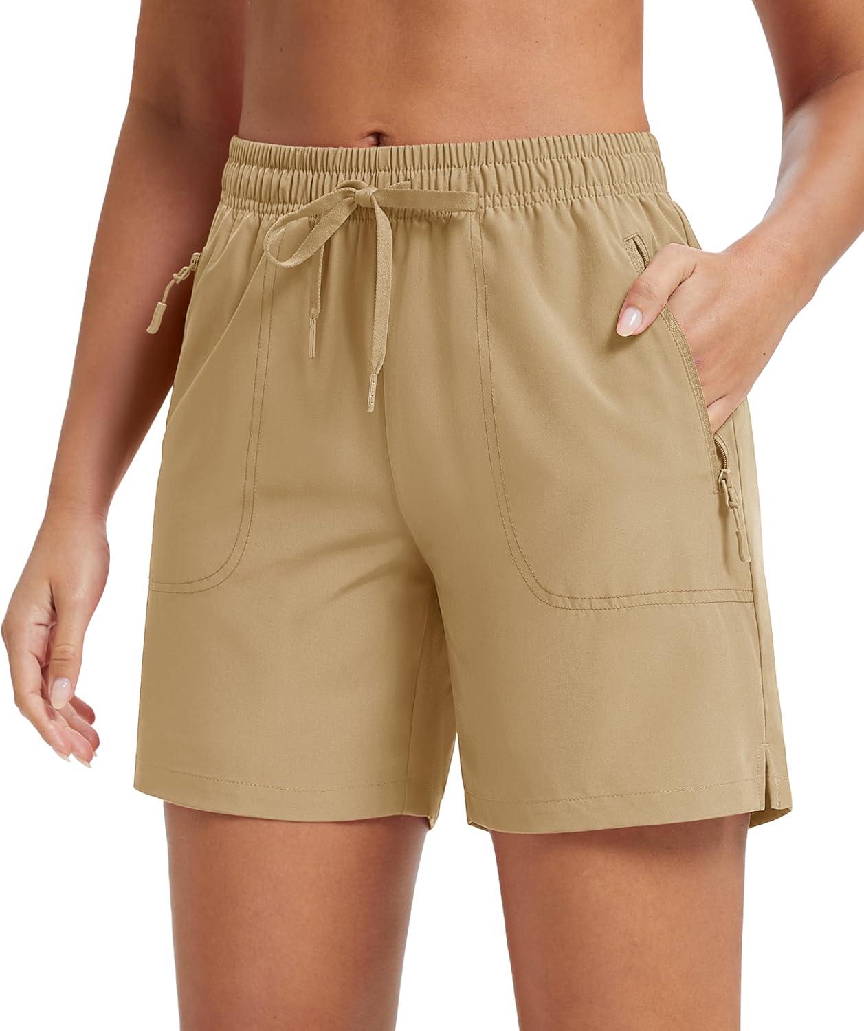 MAGCOMSEN Women’s 5″ Hiking Shorts UPF 50+ Quick Dry Lightweight Athletic Running Golf Summer Casual Shorts with Pockets(Khaki)