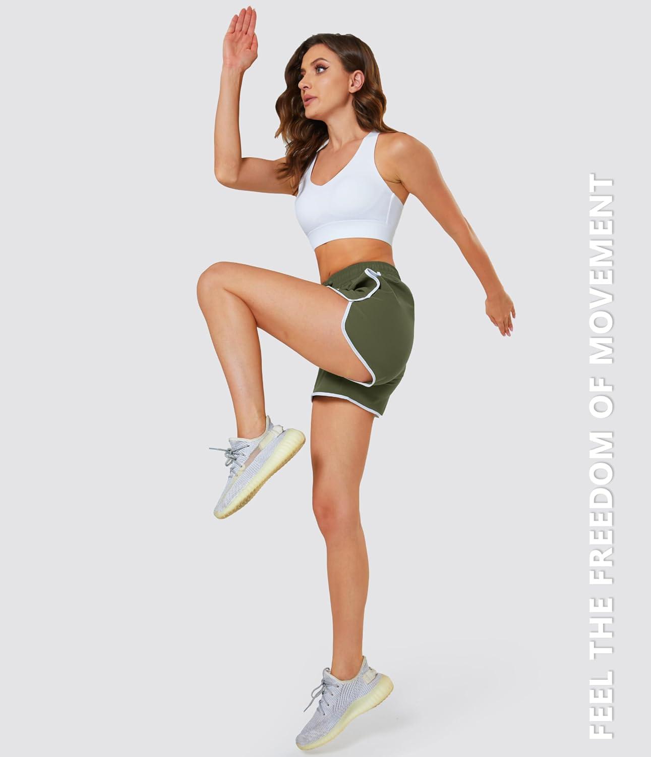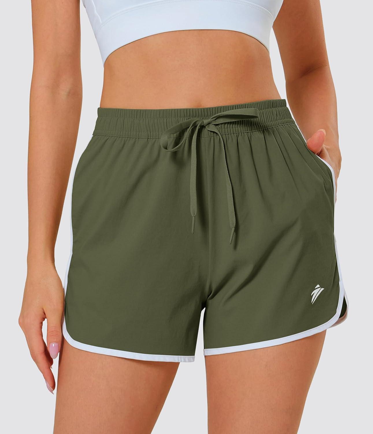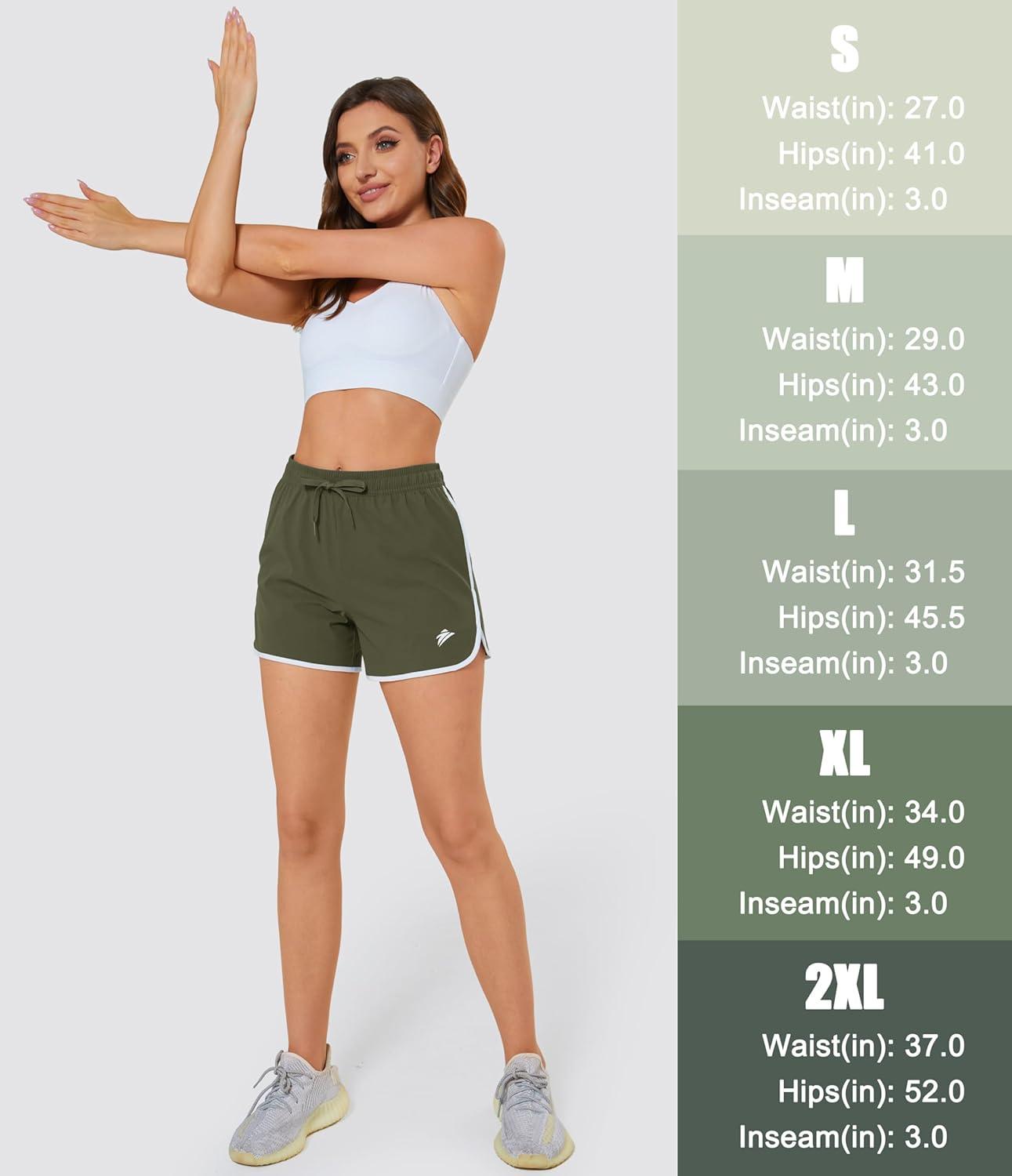 MAGCOMSEN Women’s Athletic Shorts with Pockets Quick Dry Lightweight 3.5″ Running Gym Workout Shorts Hiking Sport(Army Green)