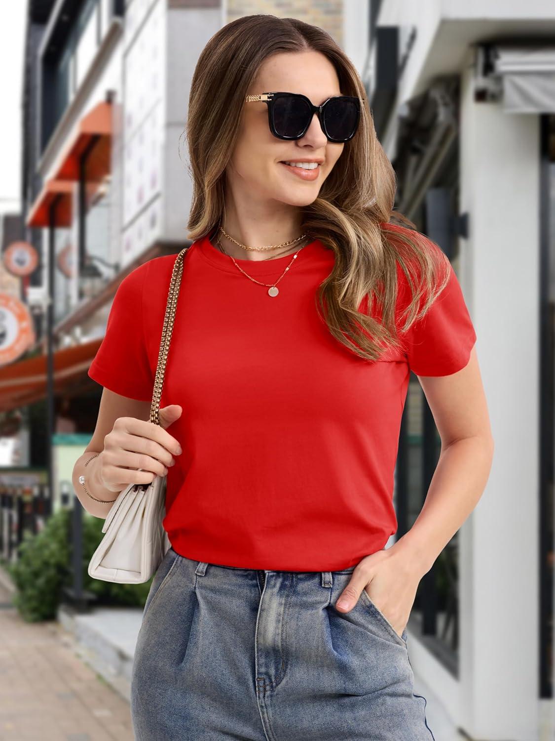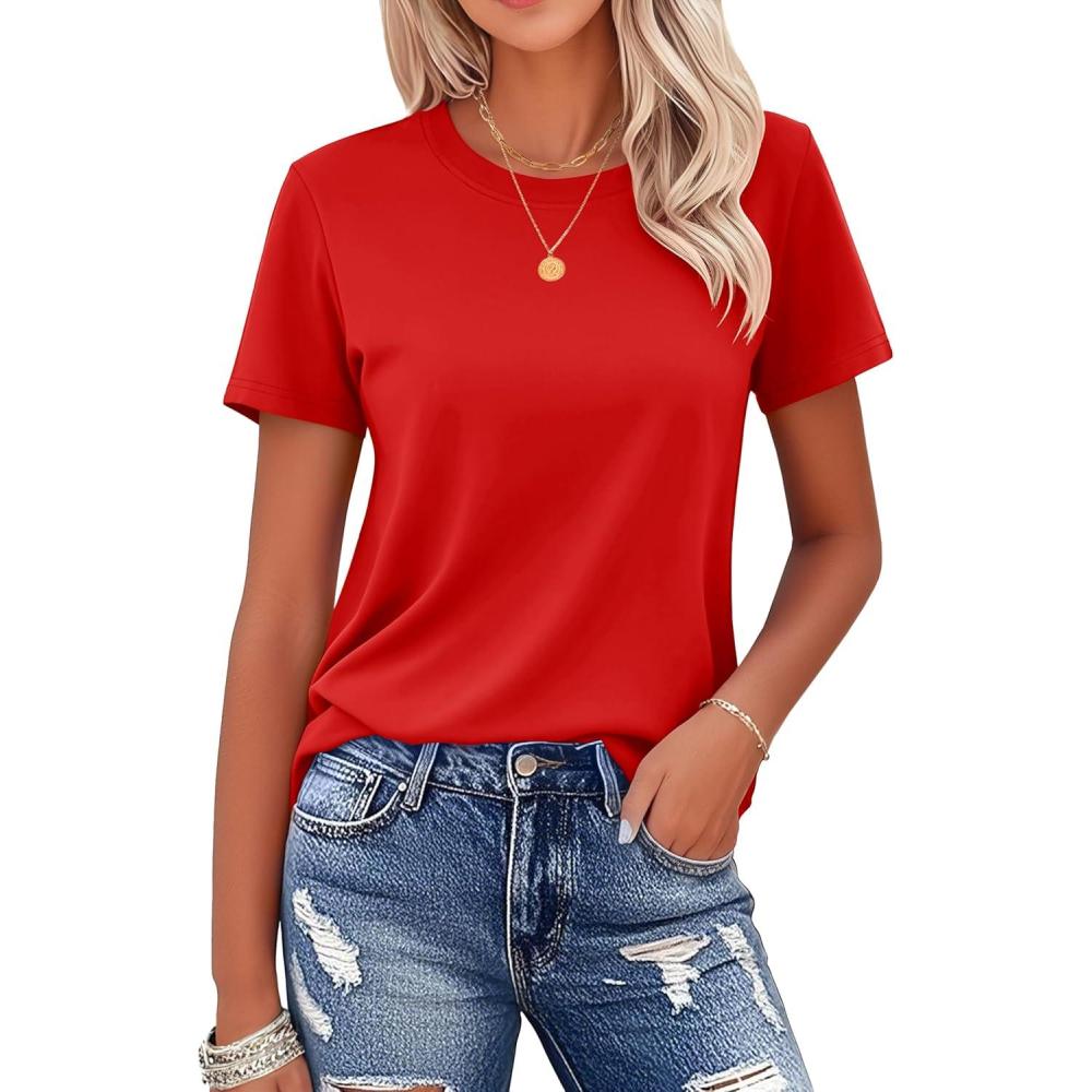 MAGCOMSEN Women’s Cotton T-Shirts Short-Sleeve Shirts Crew-Neck Tops Classic-Fit Breathable Casual Summer Tees(A-tomato Red)