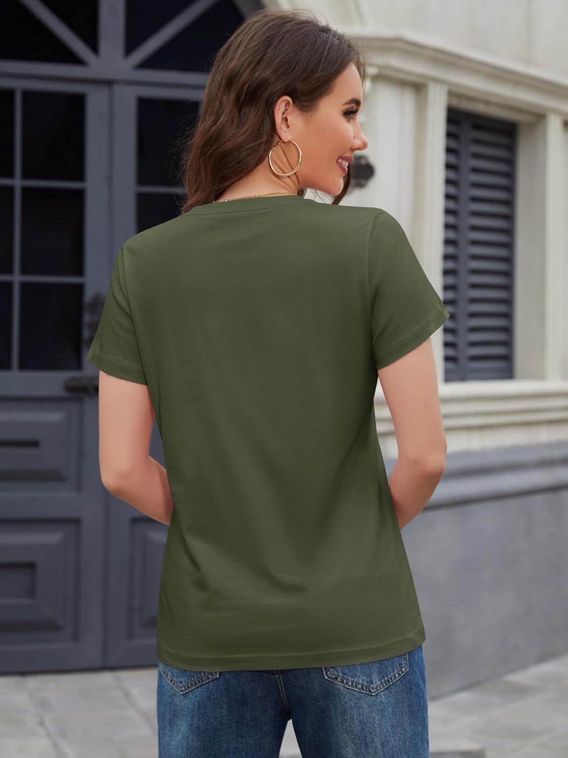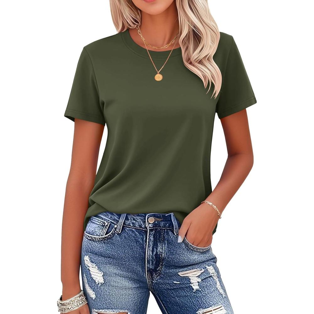 MAGCOMSEN Women’s Cotton T-Shirts Short-Sleeve Shirts Crew-Neck Tops Classic-Fit Breathable Casual Summer Tees(Army Green)
