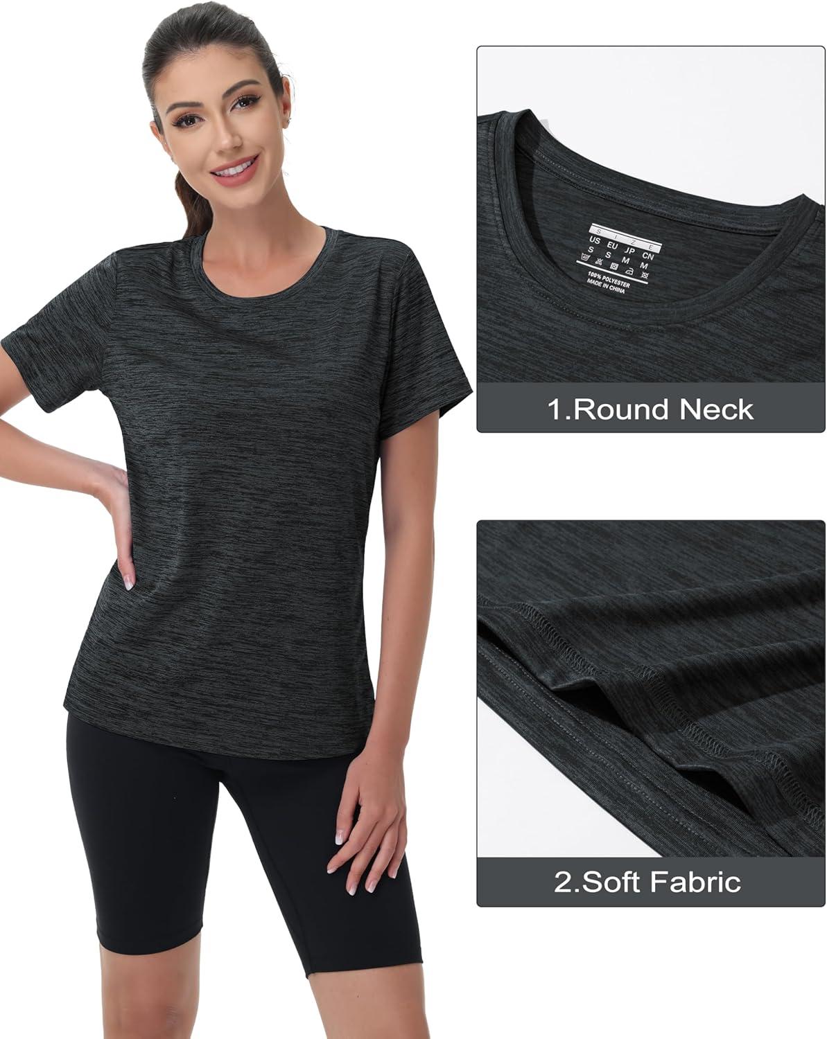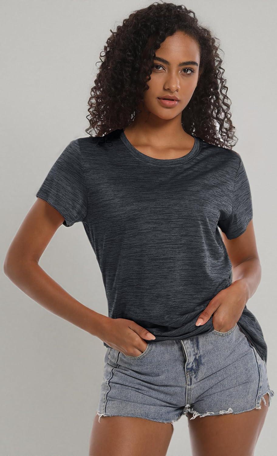 MAGCOMSEN Women’s Cotton T-Shirts Short-Sleeve Shirts Crew-Neck Tops Classic-Fit Breathable Casual Summer Tees(Dark Grey)