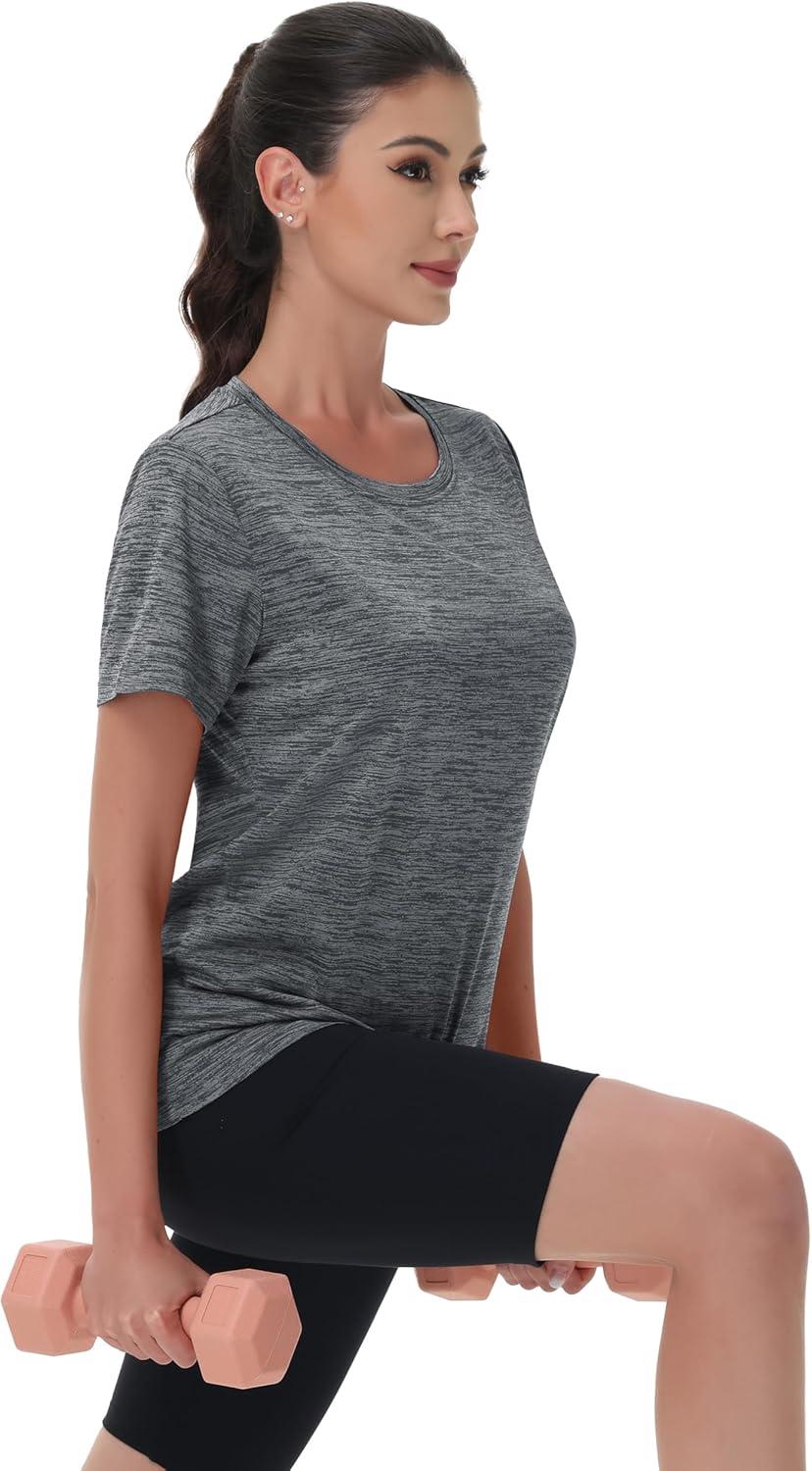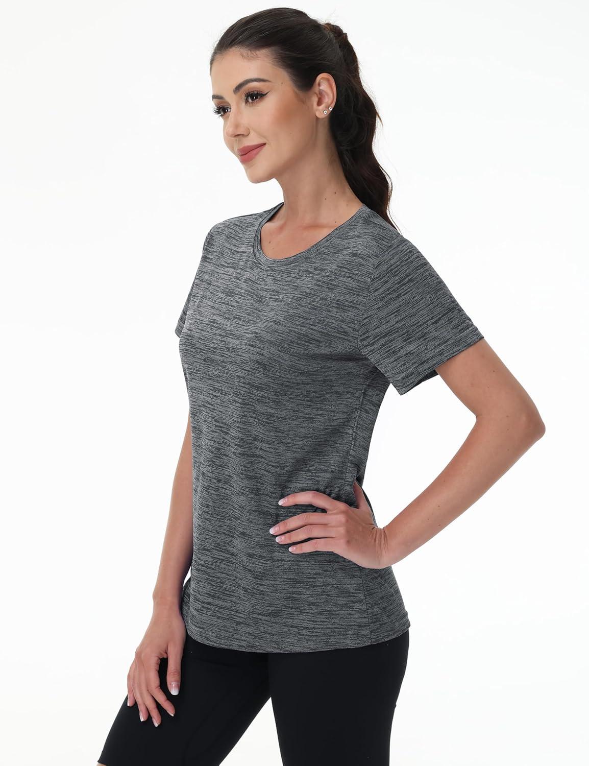MAGCOMSEN Women’s Cotton T-Shirts Short-Sleeve Shirts Crew-Neck Tops Classic-Fit Breathable Casual Summer Tees(Dark Grey)