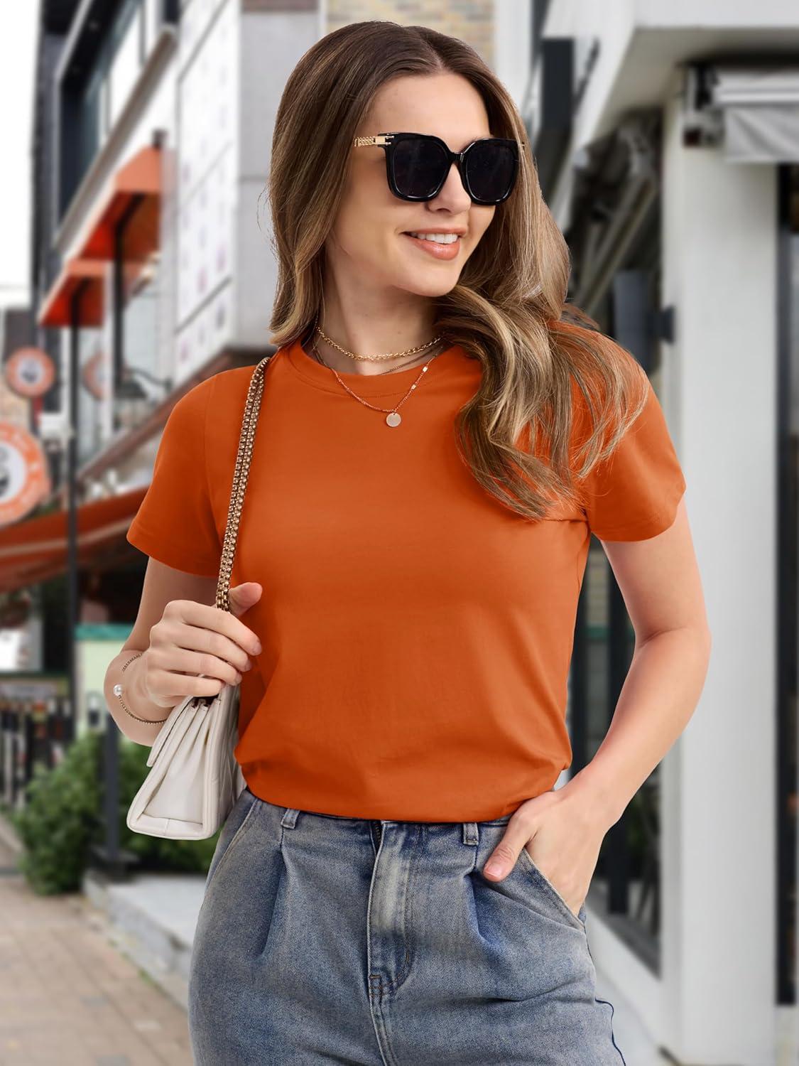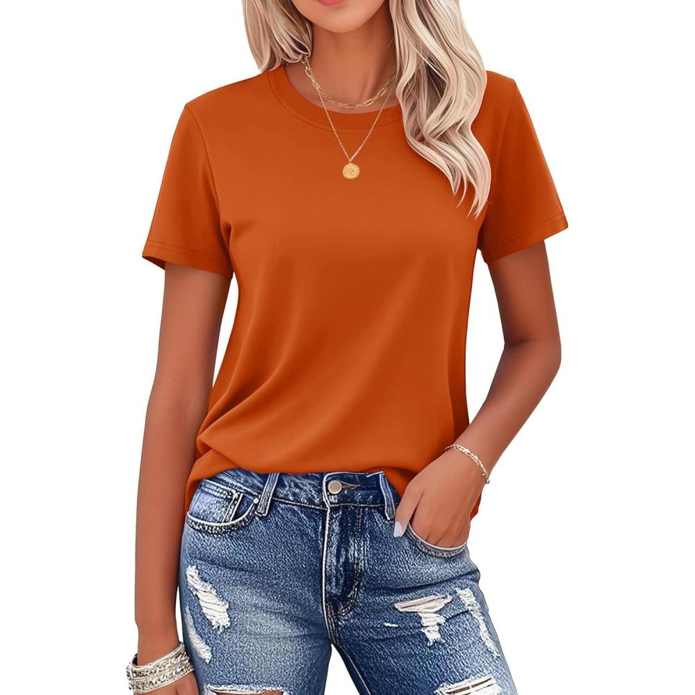 MAGCOMSEN Women’s Cotton T-Shirts Short-Sleeve Shirts Crew-Neck Tops Classic-Fit Breathable Casual Summer Tees(Dark Orange)