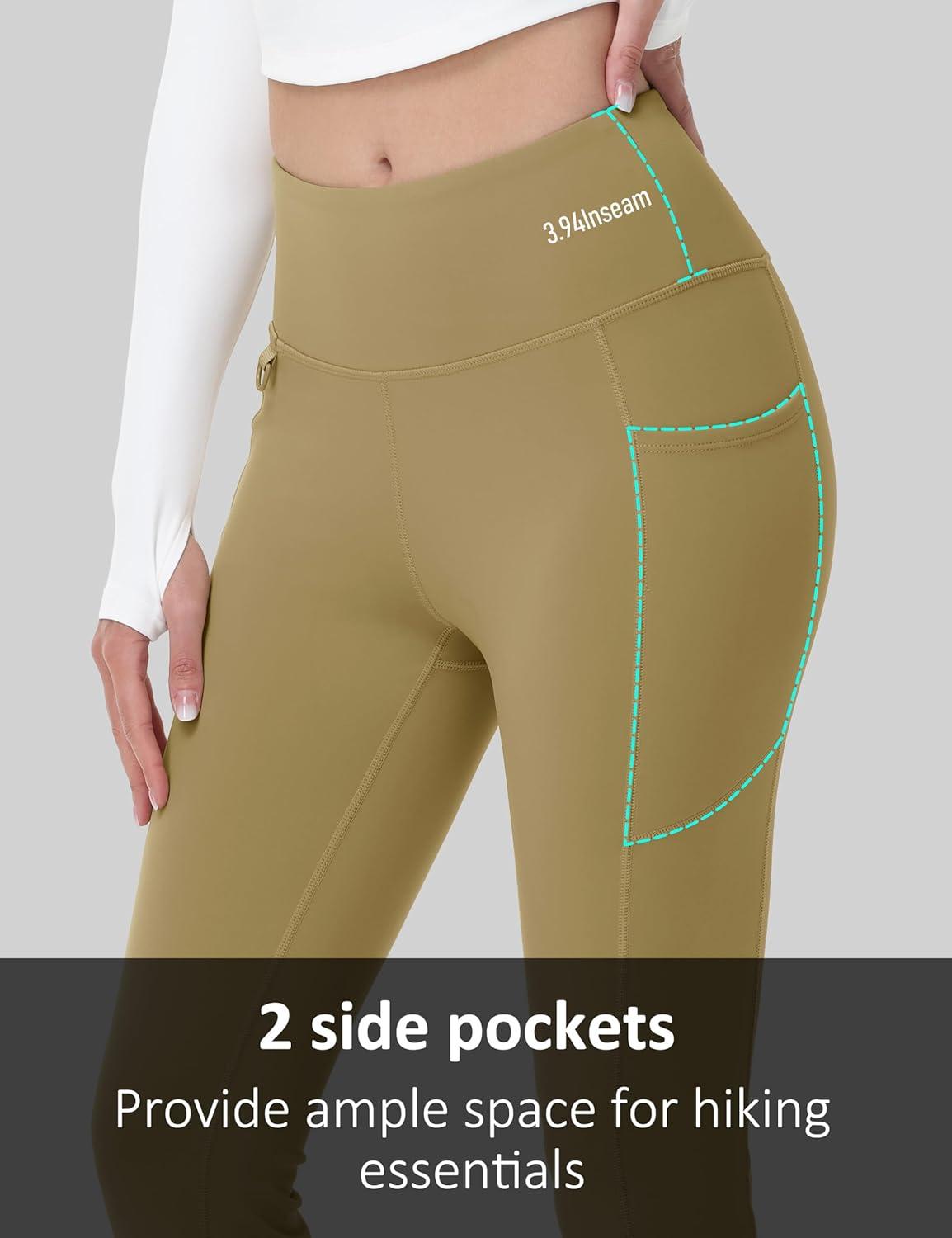 MAGCOMSEN Women’s Fleece Lined Flare Leggings Waterproof Insulated Winter Pants Warm Snow Yoga Hiking Bootcut 3 Pcokets(Light Brown)