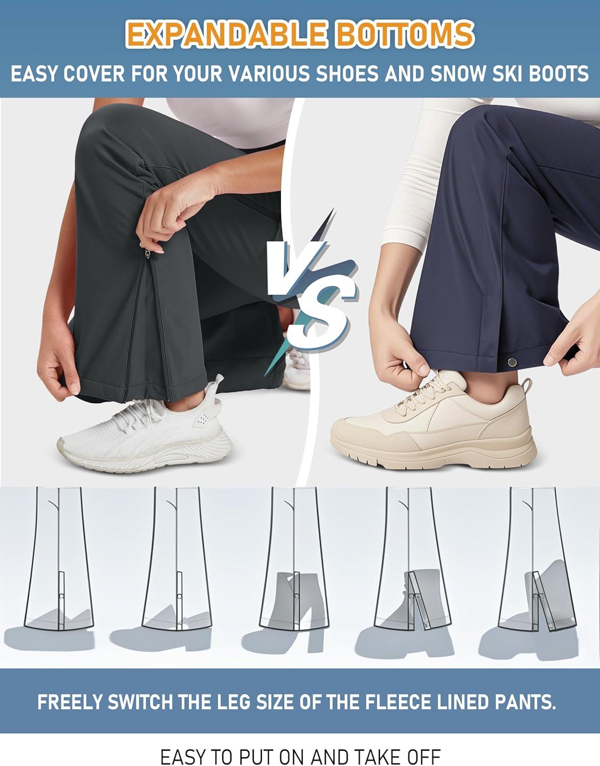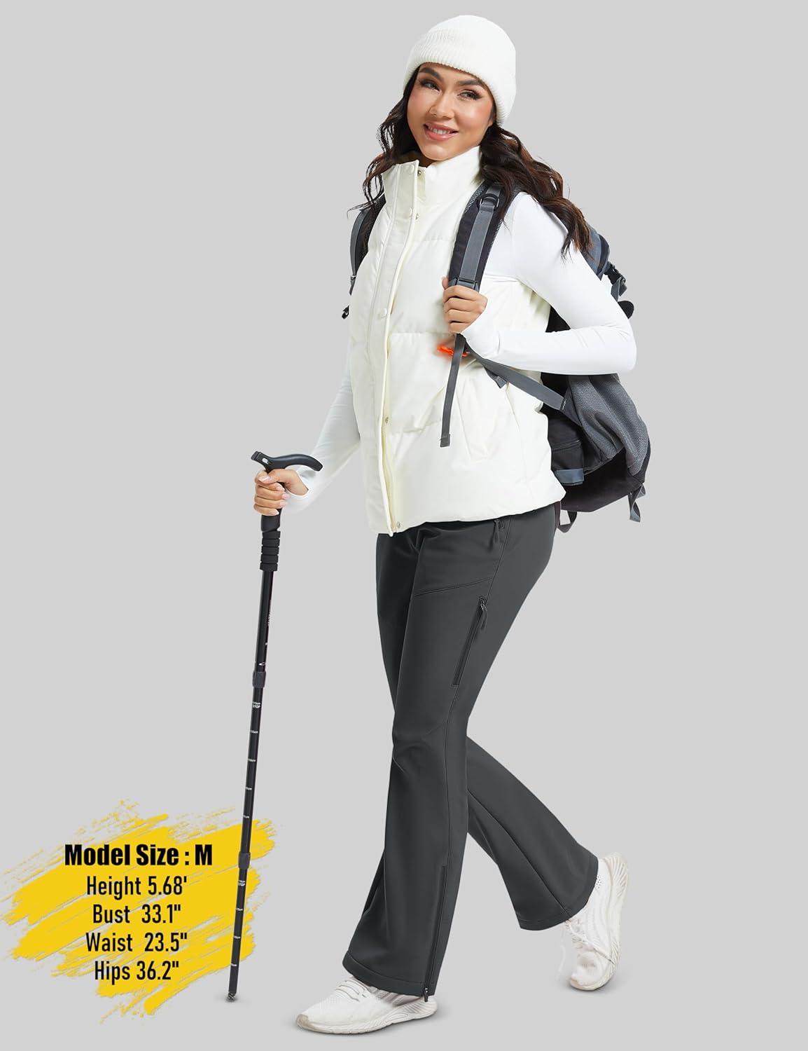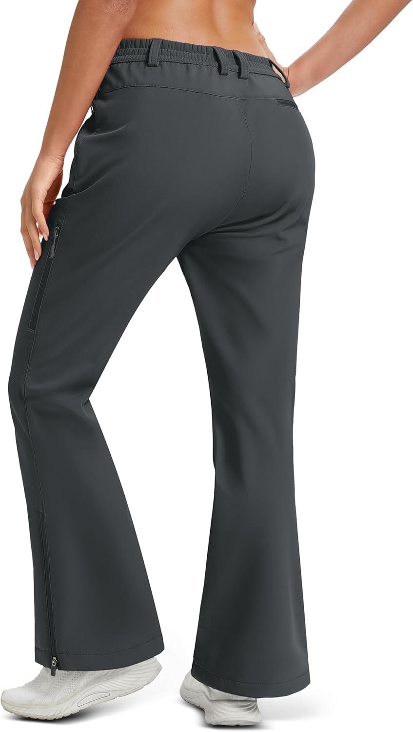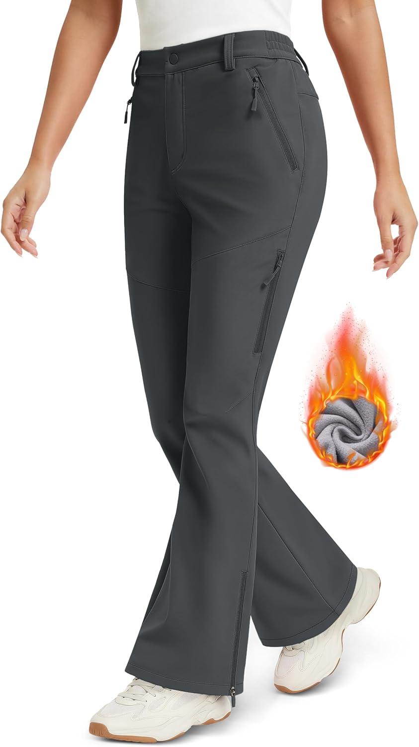 MAGCOMSEN Women’s Fleece Lined Flare Pants Waterproof Insulated Snow Ski Pants Warm Outdoor Winter Hiking Softshell(Darkgrey)