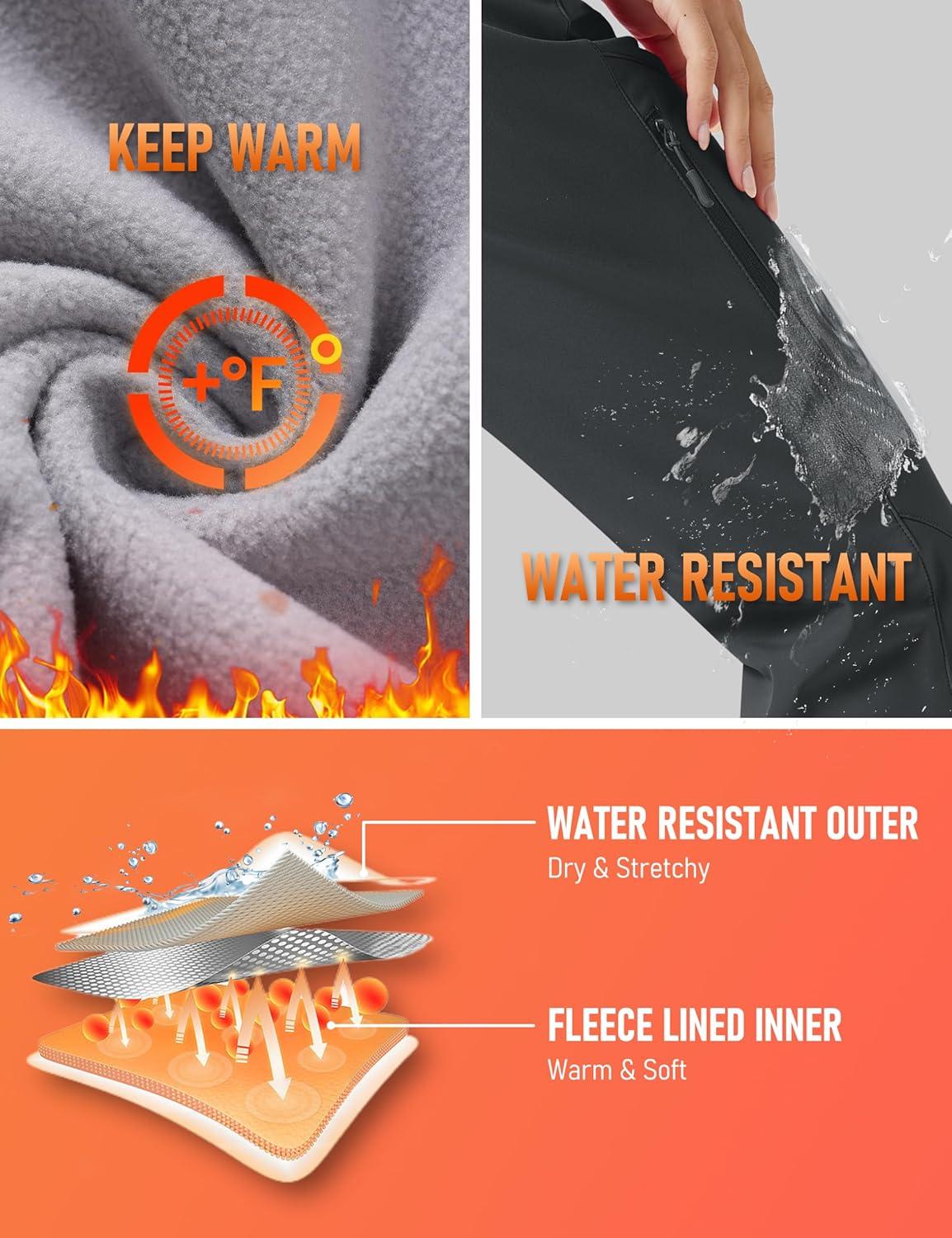 imageMAGCOMSEN Womens Fleece Lined Flare Pants Waterproof Insulated Snow Ski Pants Warm Outdoor Winter Hiking SoftshellBlack