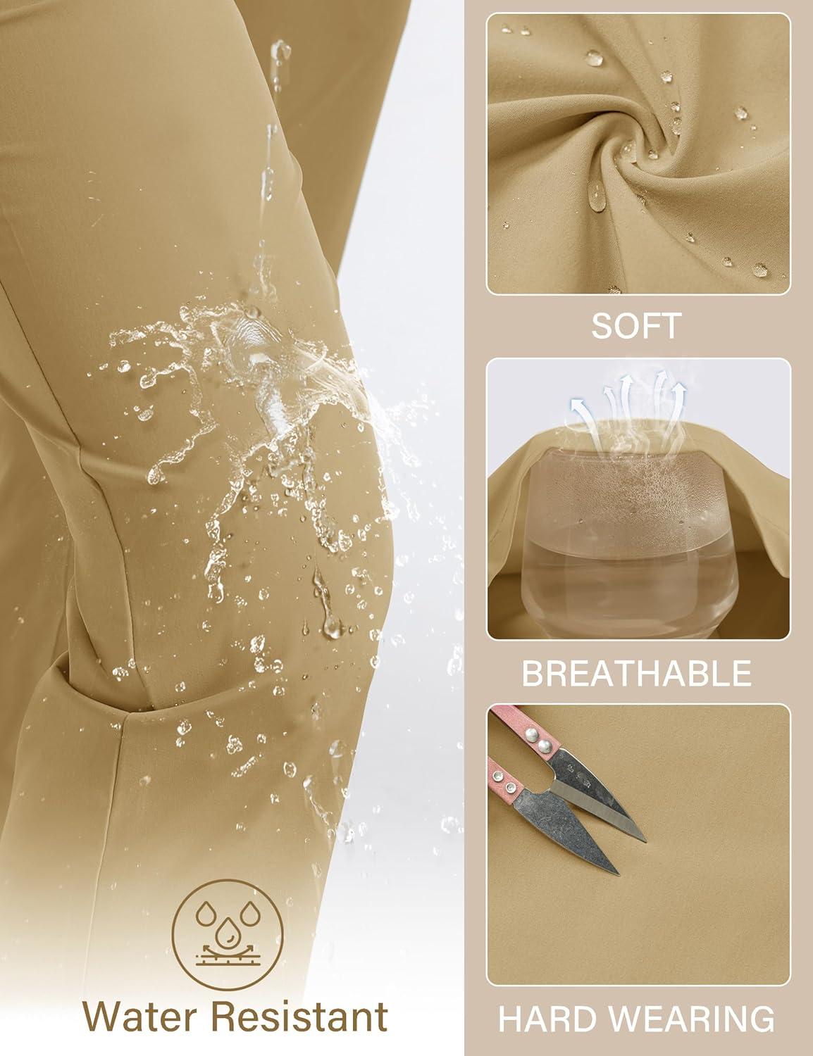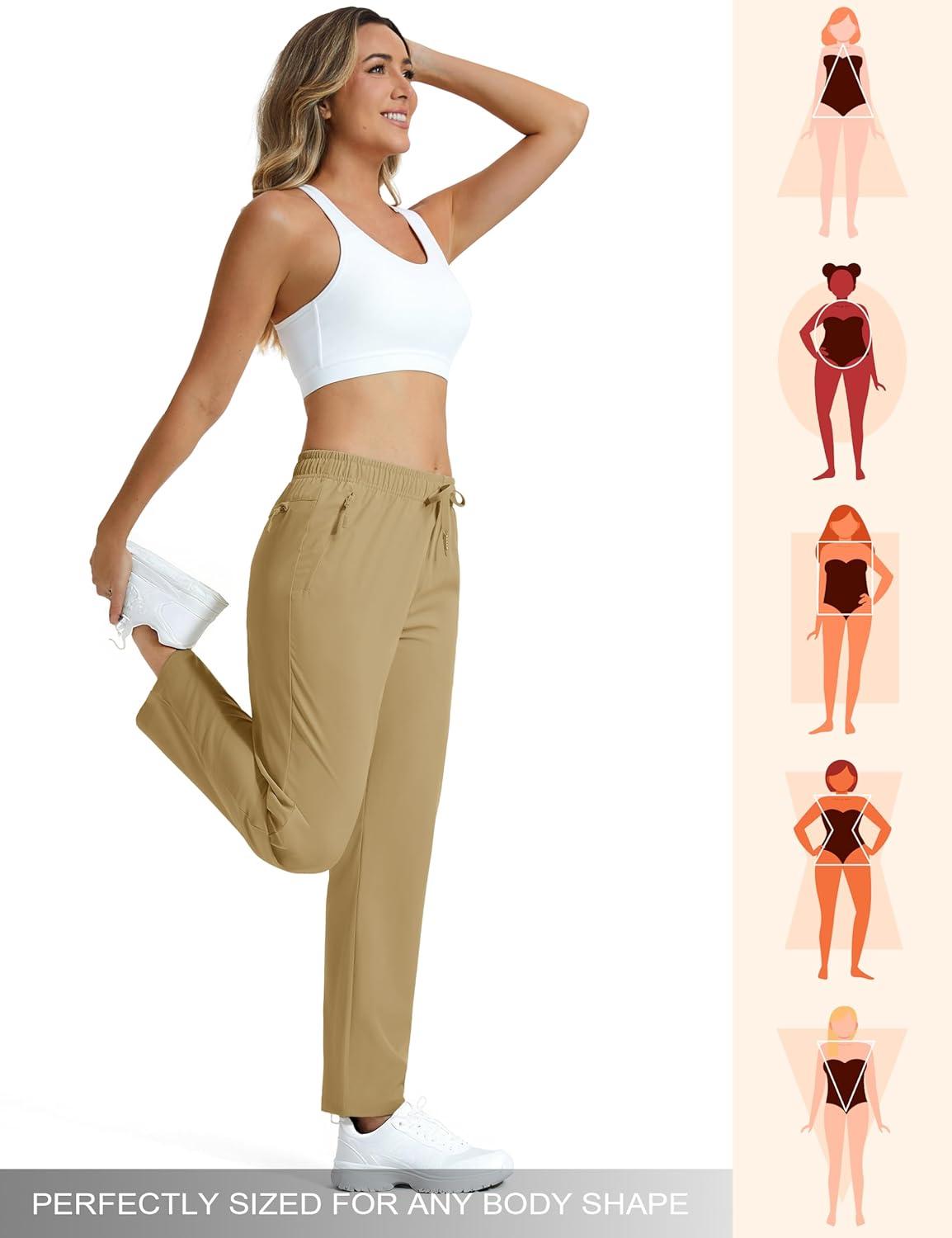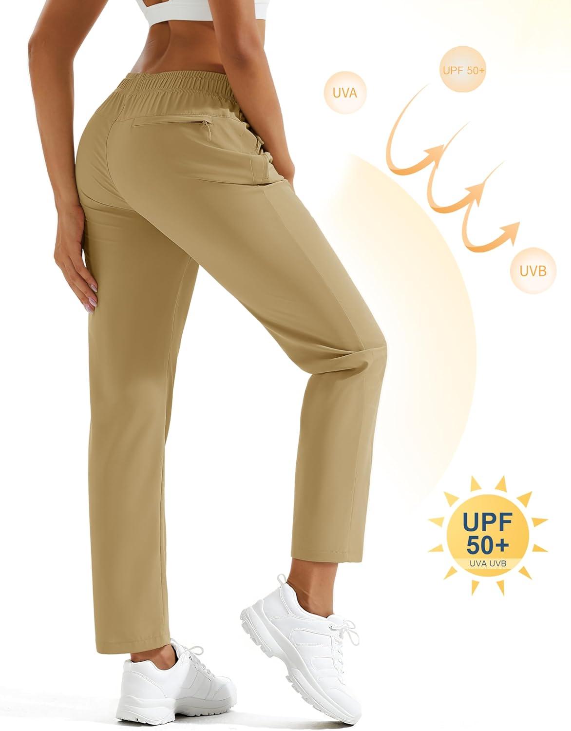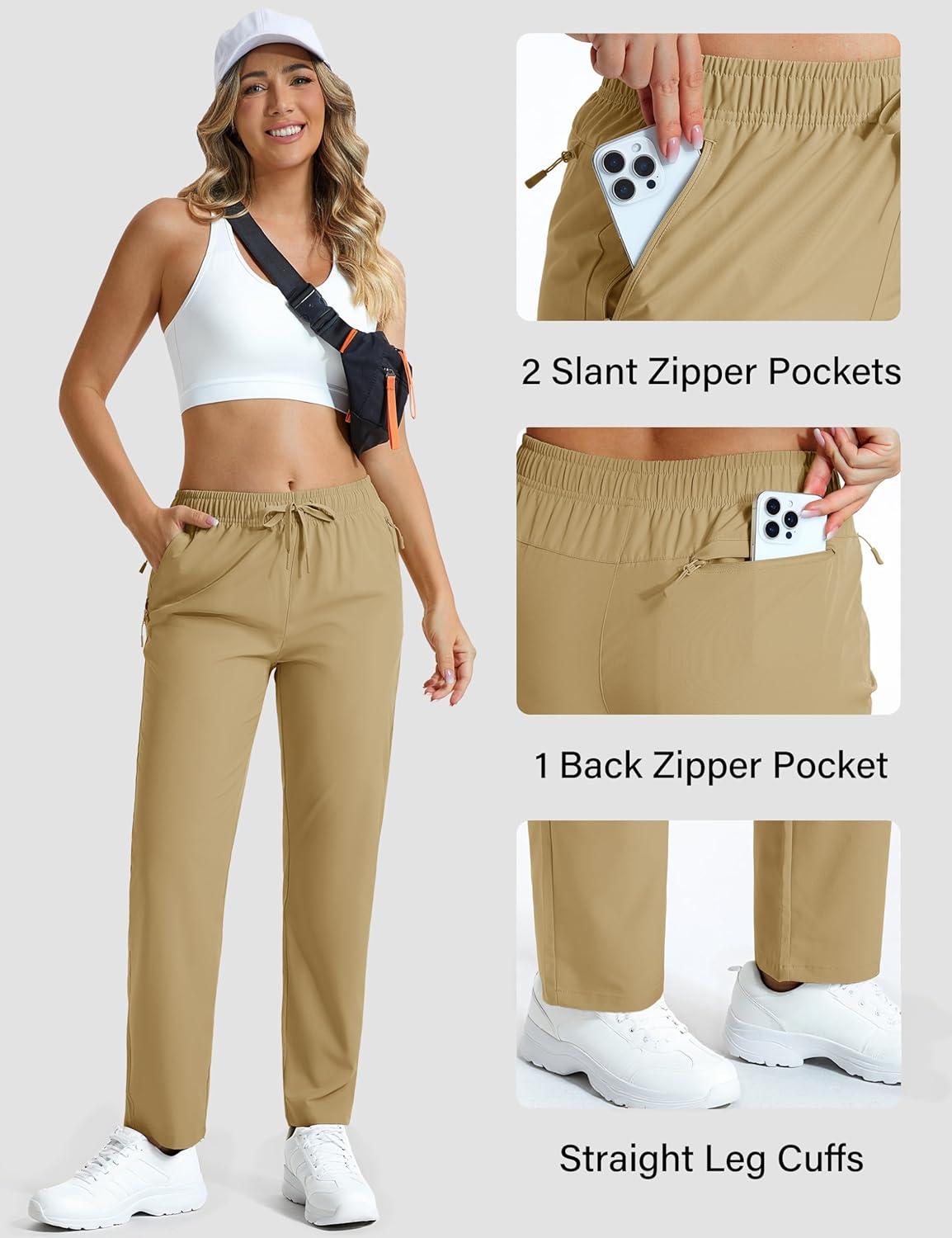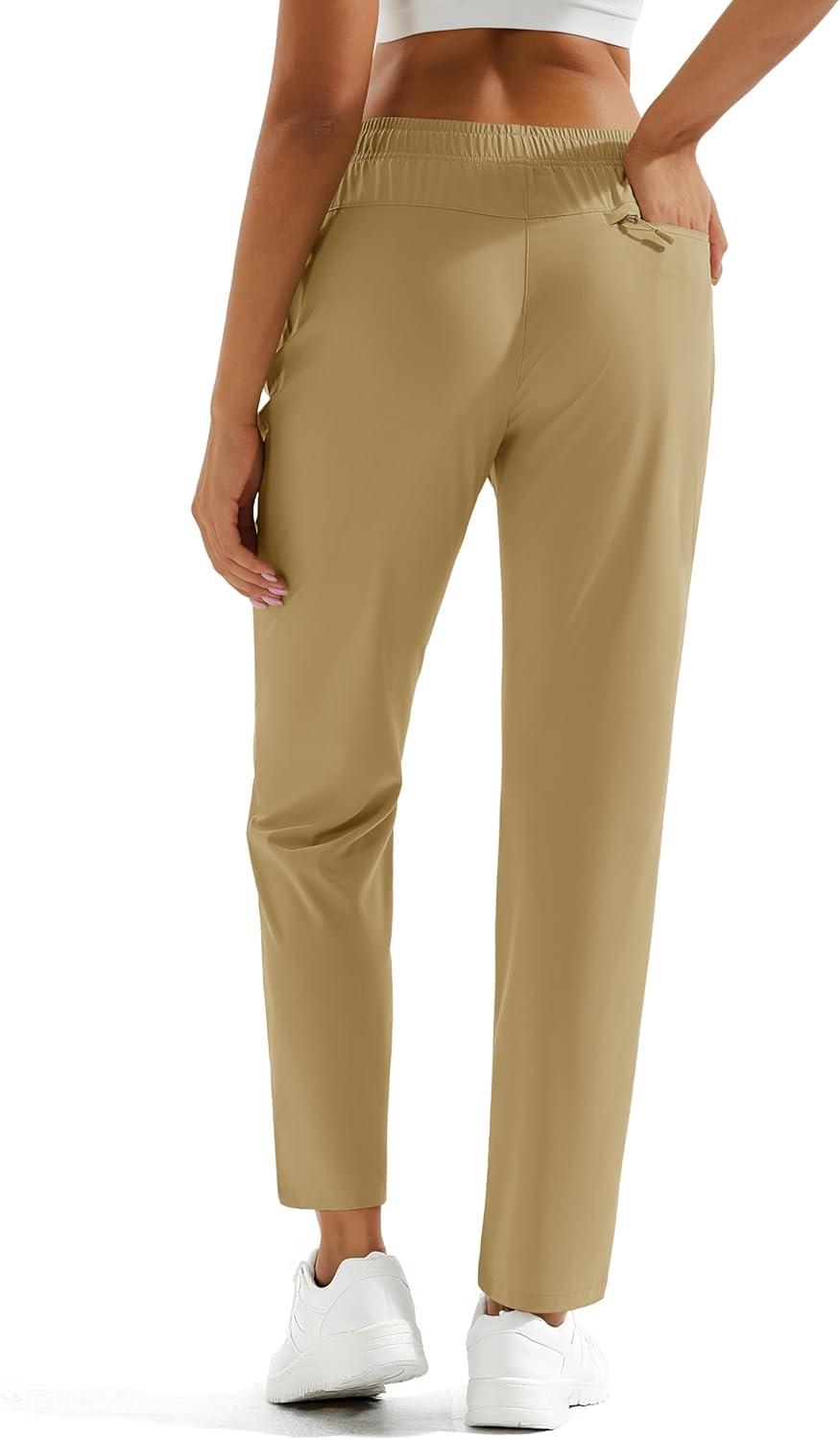 MAGCOMSEN Women’s Hiking Pants Lightweight Quick Dry UPF 50 Water Resistant Elastic Waist Golf Travel Pants Zip Pockets(Khaki)