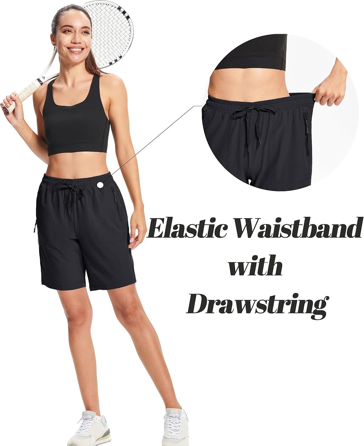 MAGCOMSEN Women’s Hiking Shorts Lightweight Quick Dry 8″ Golf Shorts Water Resistant with 3 Zipper Pockets(Black)