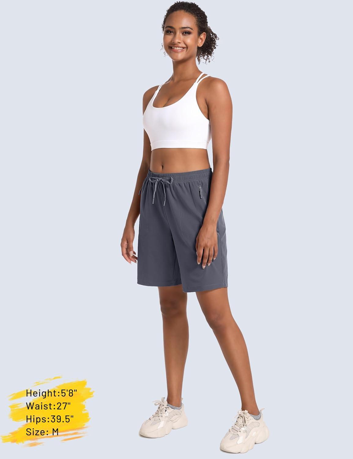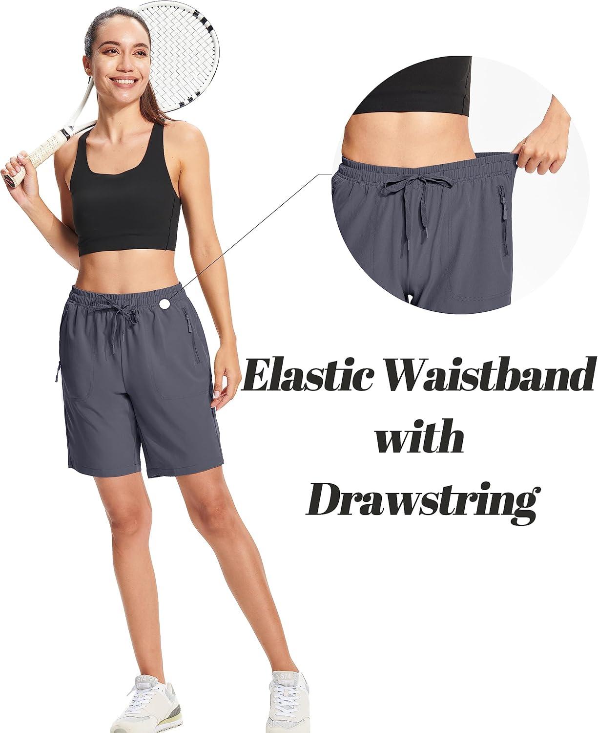 MAGCOMSEN Women’s Hiking Shorts Lightweight Quick Dry 8″ Golf Shorts Water Resistant with 3 Zipper Pockets(Dark Grey)
