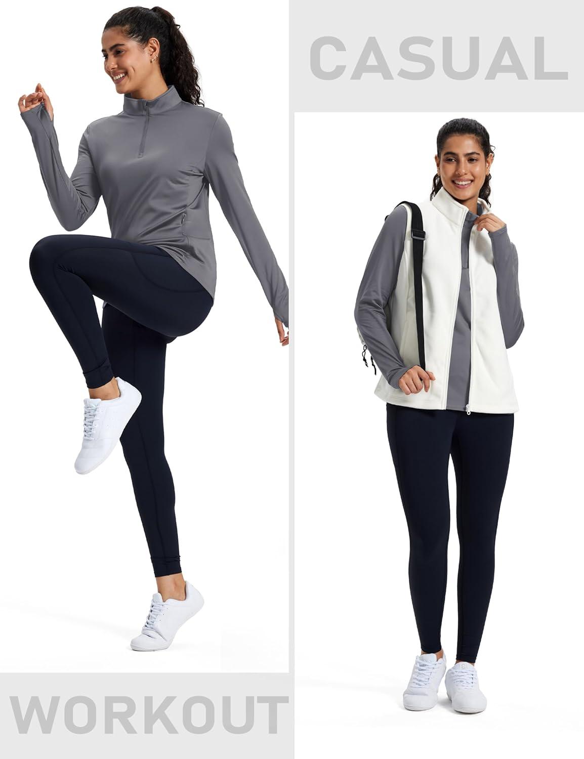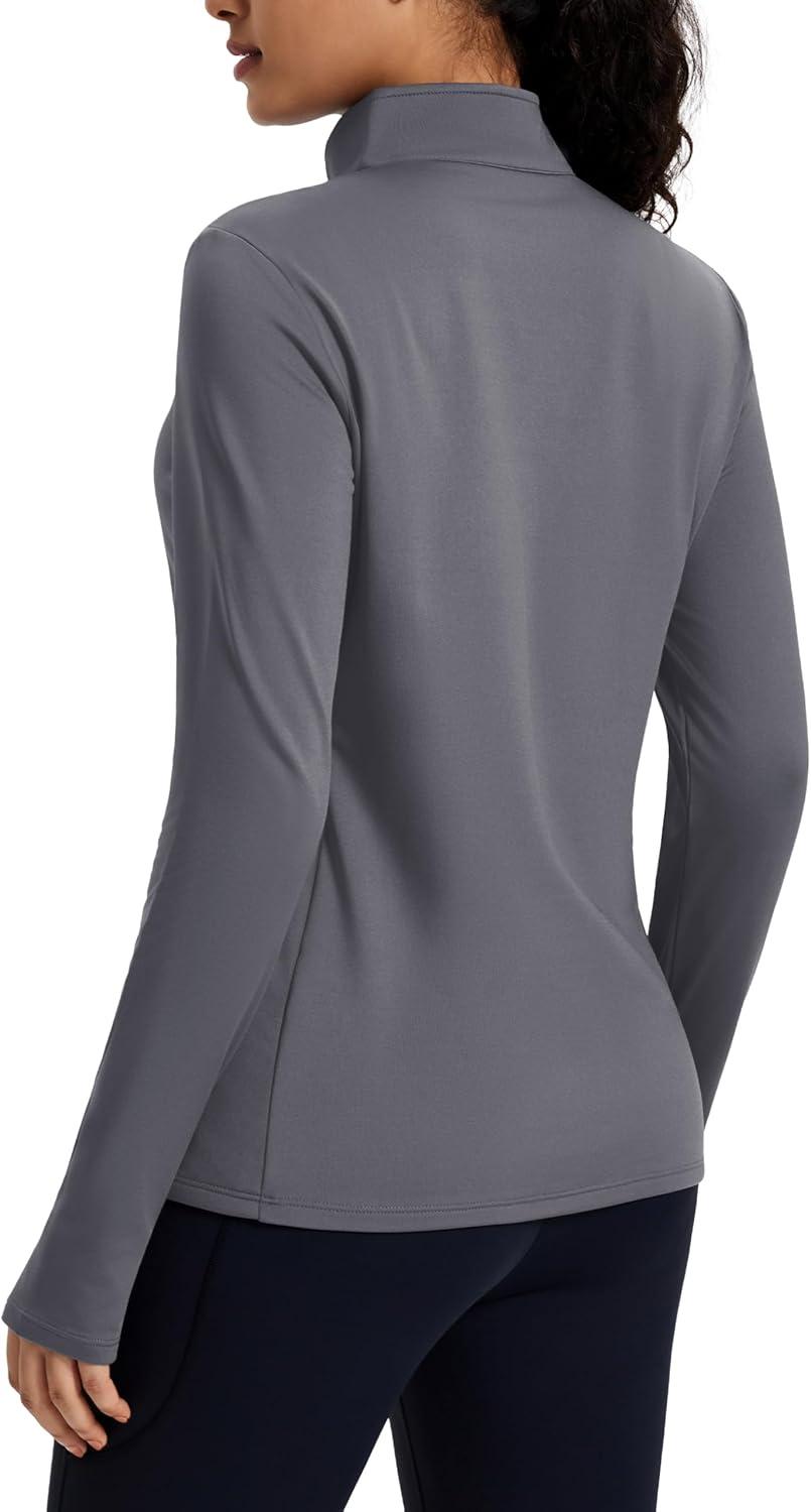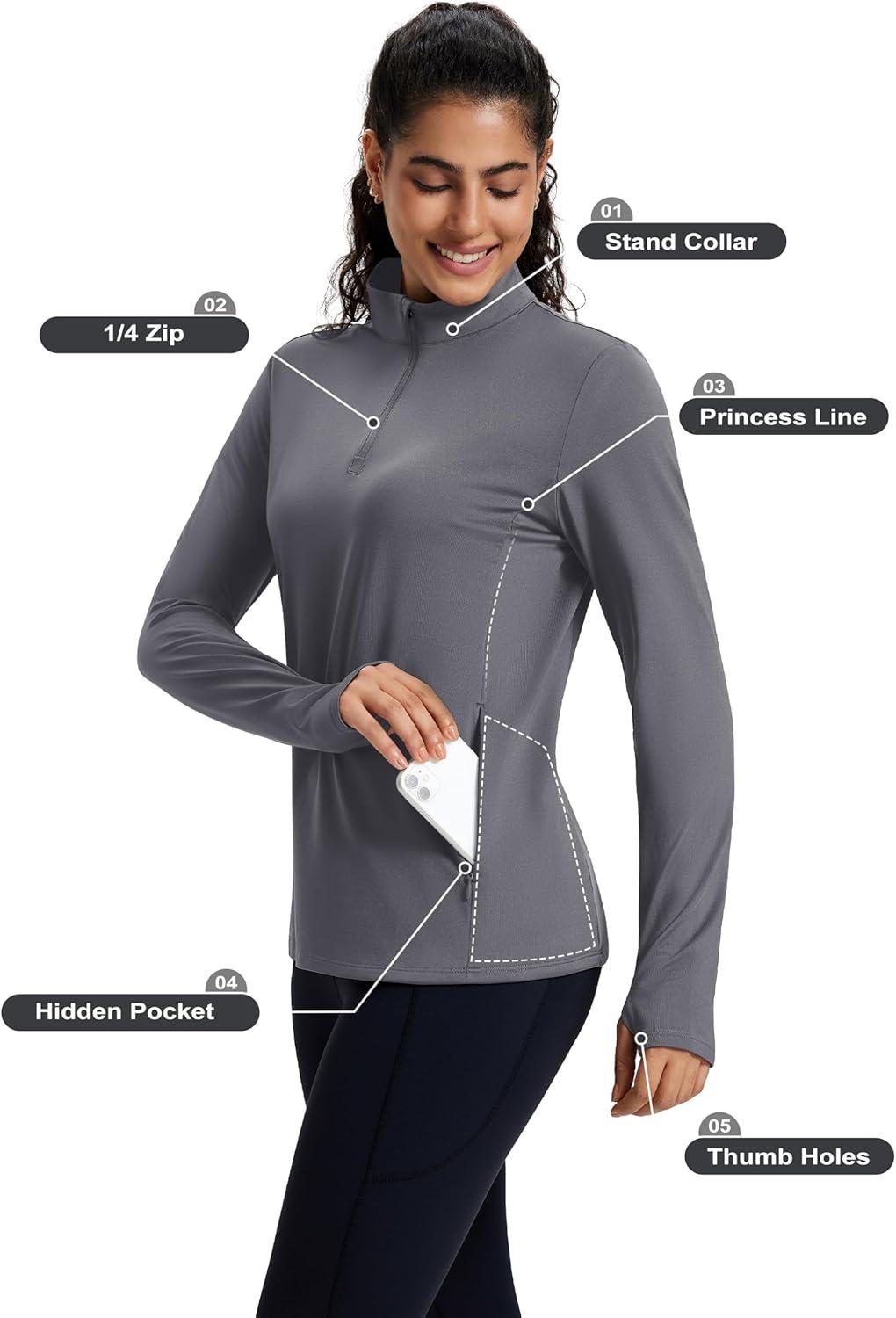 MAGCOMSEN Women’s Quarter Zip Fleece Pullover Thermal Shirts with Zip Pocket Workout Running Tops Thumb Holes(Dark Grey)