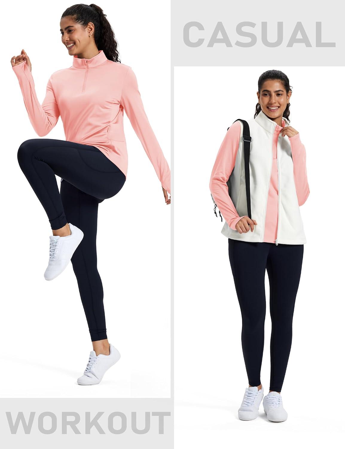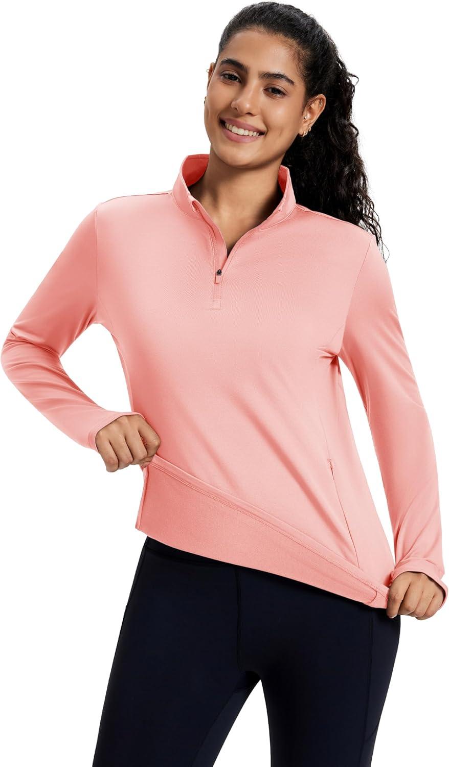 MAGCOMSEN Women’s Quarter Zip Fleece Pullover Thermal Shirts with Zip Pocket Workout Running Tops Thumb Holes(Lightpink)