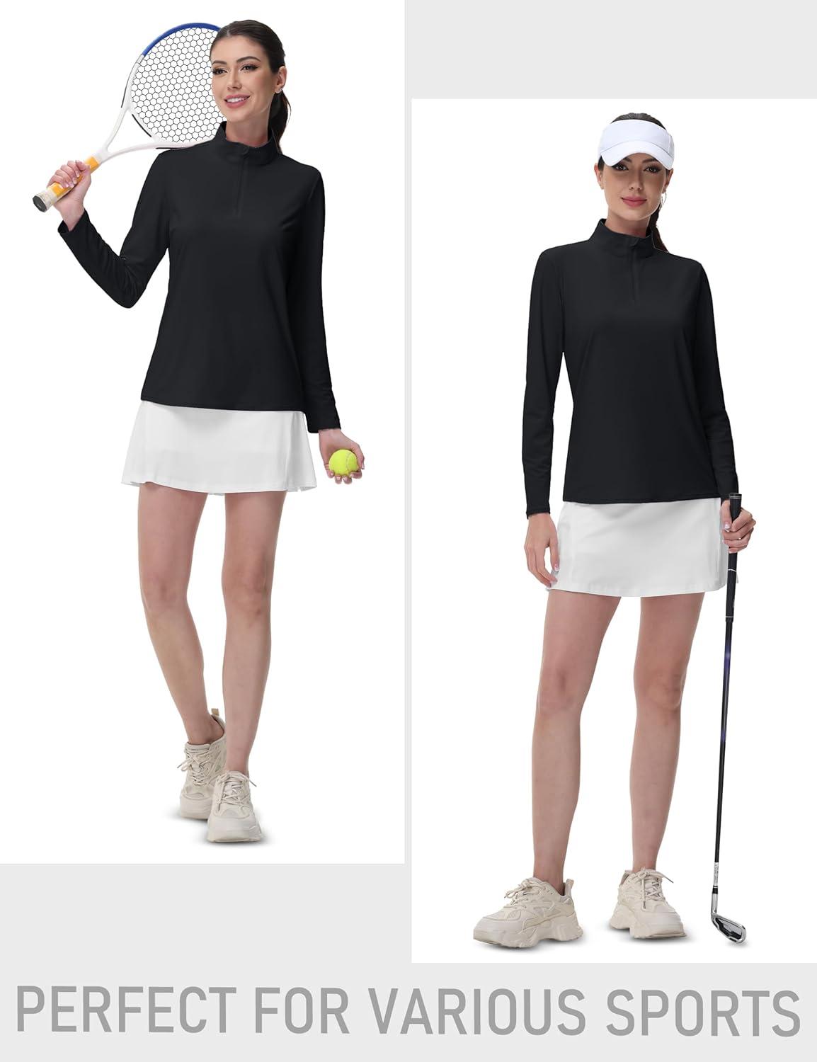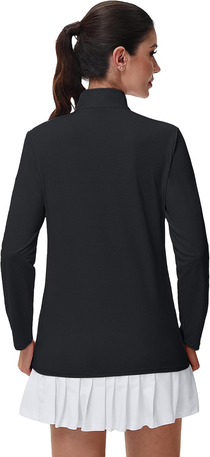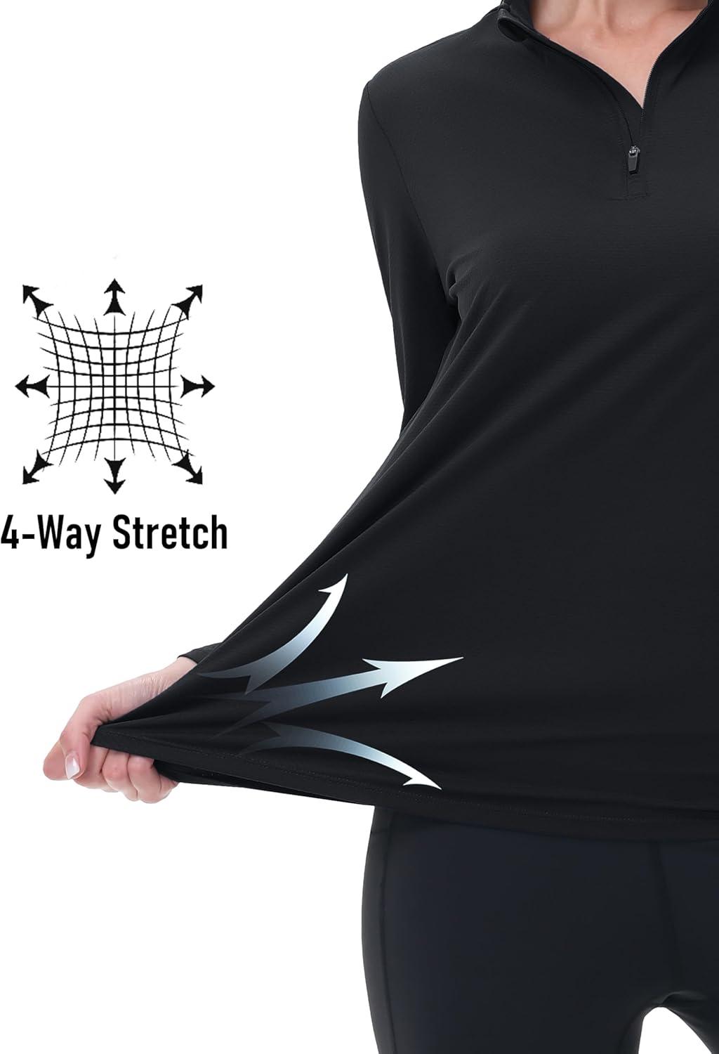 MAGCOMSEN Women’s Quarter Zip Pullover Long Sleeve UPF 50+ Rashguard Golf Sun Protection Shirts Quick Dry Workout Tops(Black)