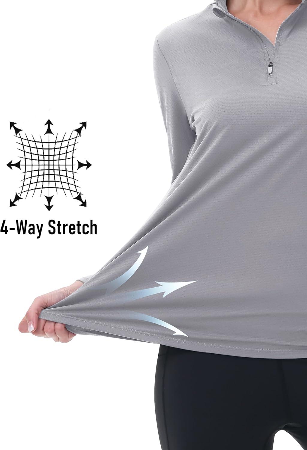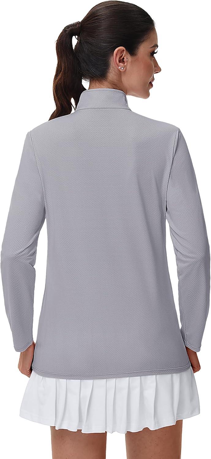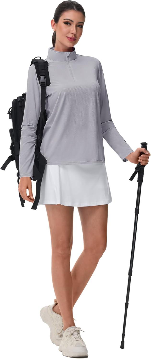 MAGCOMSEN Women’s Quarter Zip Pullover Long Sleeve UPF 50+ Rashguard Golf Sun Protection Shirts Quick Dry Workout Tops(Light Grey)