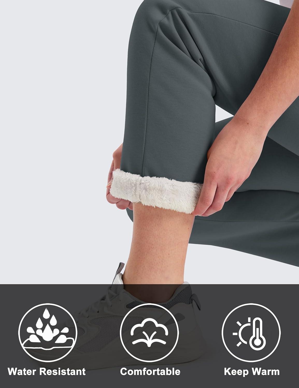 MAGCOMSEN Women’s Sherpa Lined Sweatpants Winter Warm Fleece Pants Water Resistant Heavy Insulated Thermal Pants Outdoor(Dark Grey)