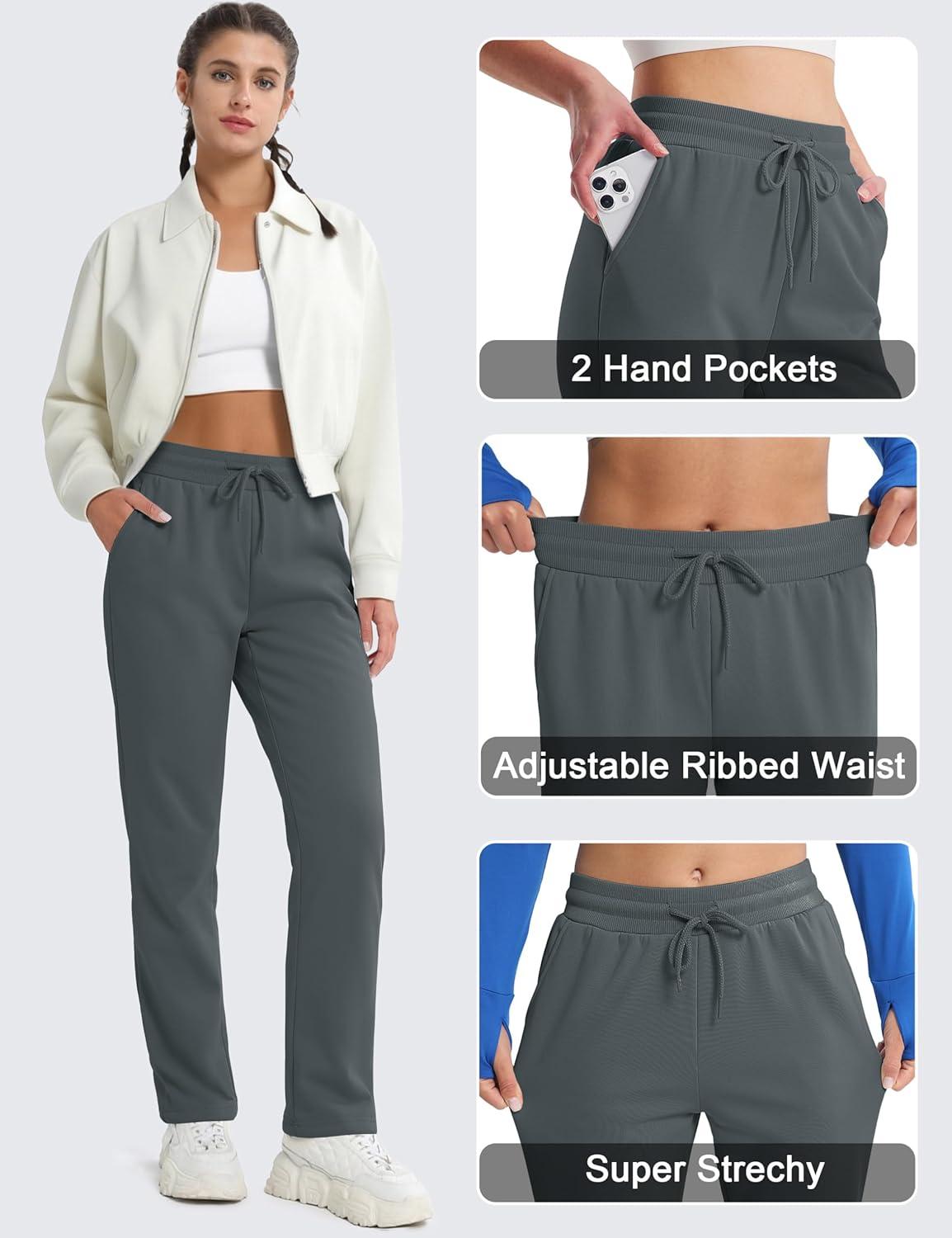imageMAGCOMSEN Womens Sherpa Lined Sweatpants Winter Warm Fleece Pants Water Resistant Heavy Insulated Thermal Pants OutdoorLight Grey
