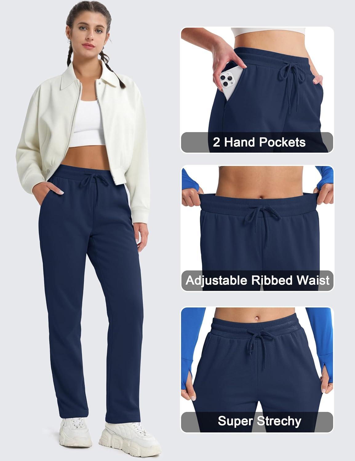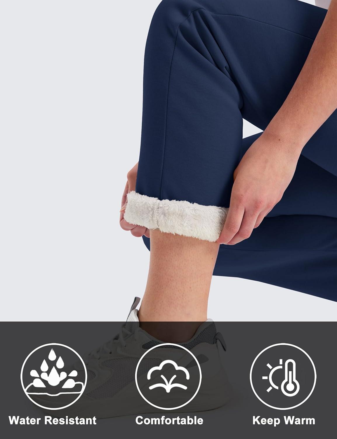 MAGCOMSEN Women’s Sherpa Lined Sweatpants Winter Warm Fleece Pants Water Resistant Heavy Insulated Thermal Pants Outdoor(Navy)
