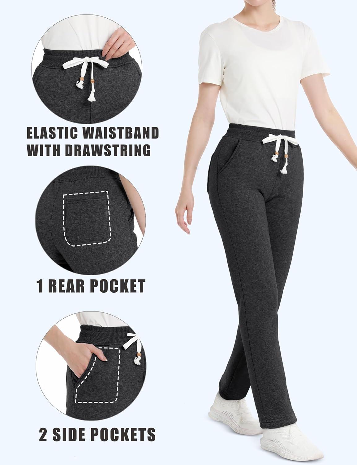 MAGCOMSEN Women’s Sherpa Lined Sweatpants with Pockets Warm Thick Fleece Winter Casual Lounge Pants(Grey)