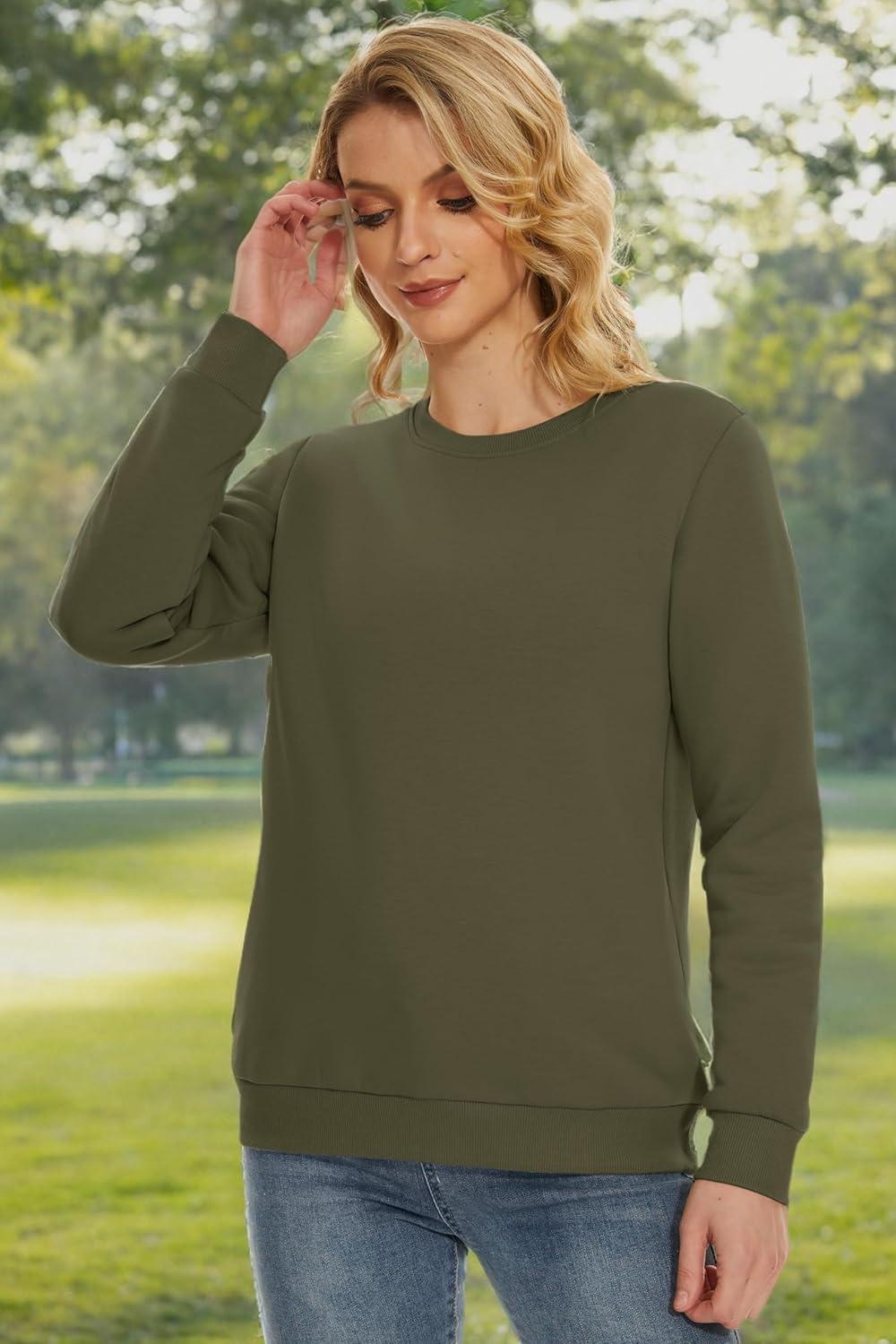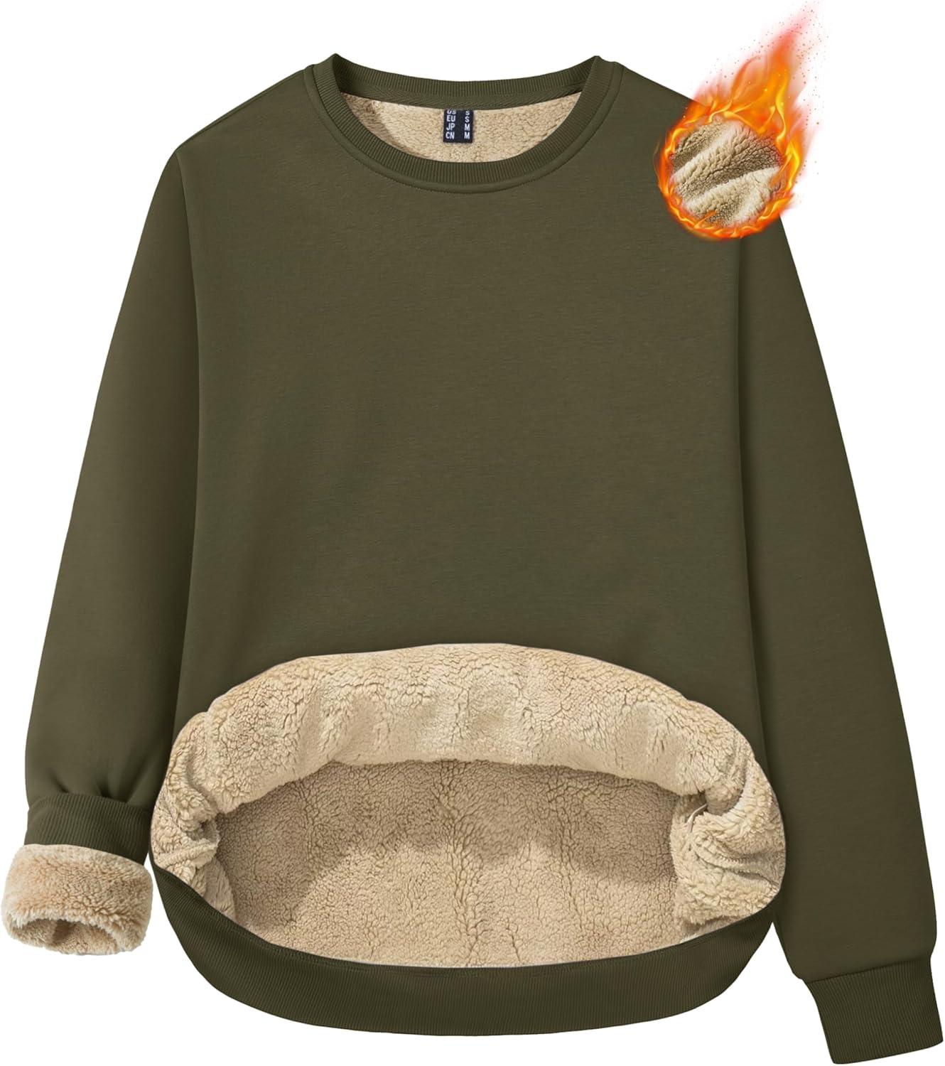 MAGCOMSEN Women’s Sherpa Lined Sweatshirts Thermal Casual Crewneck Fleece Pullover Winter Warm Thick Tops(Army Green)