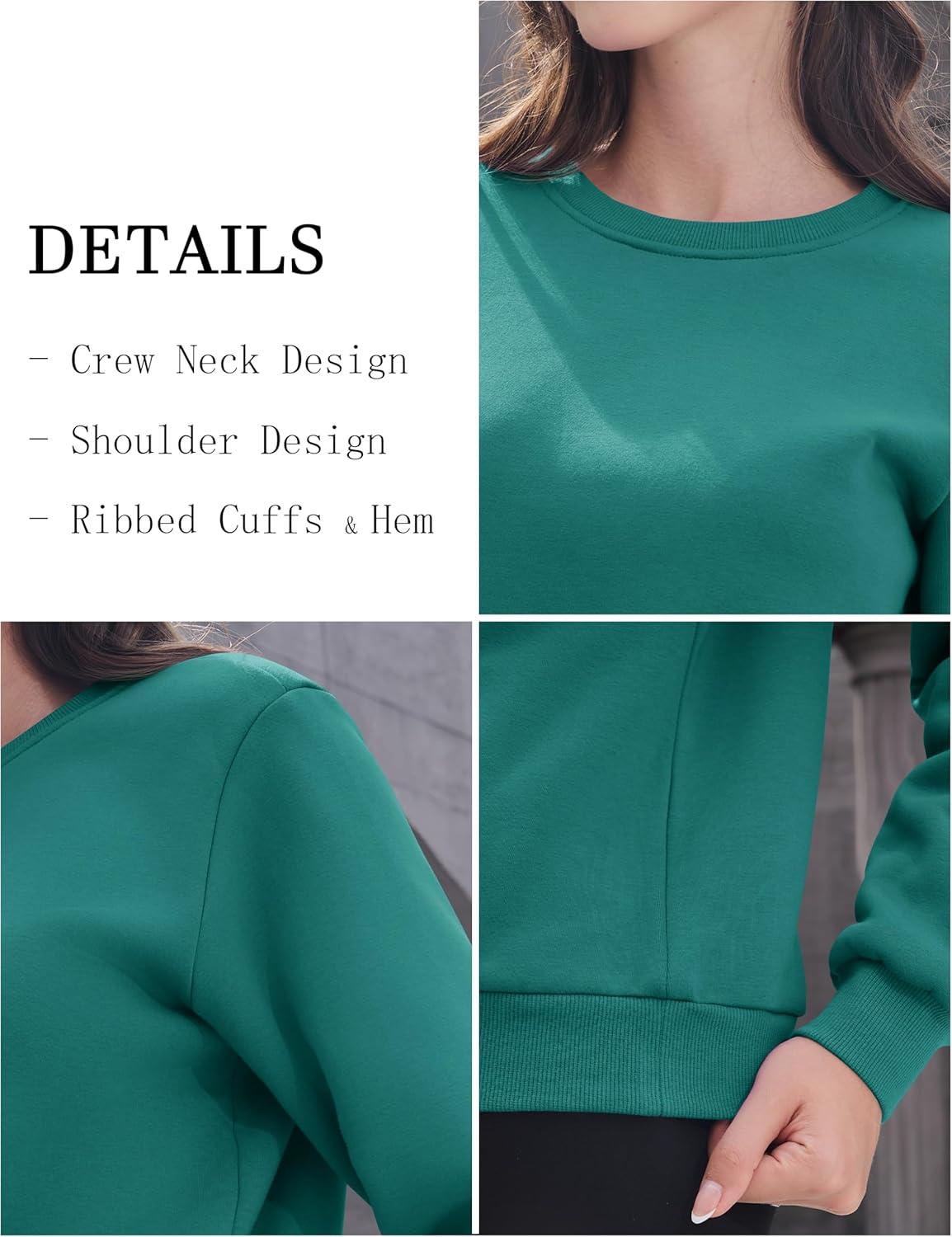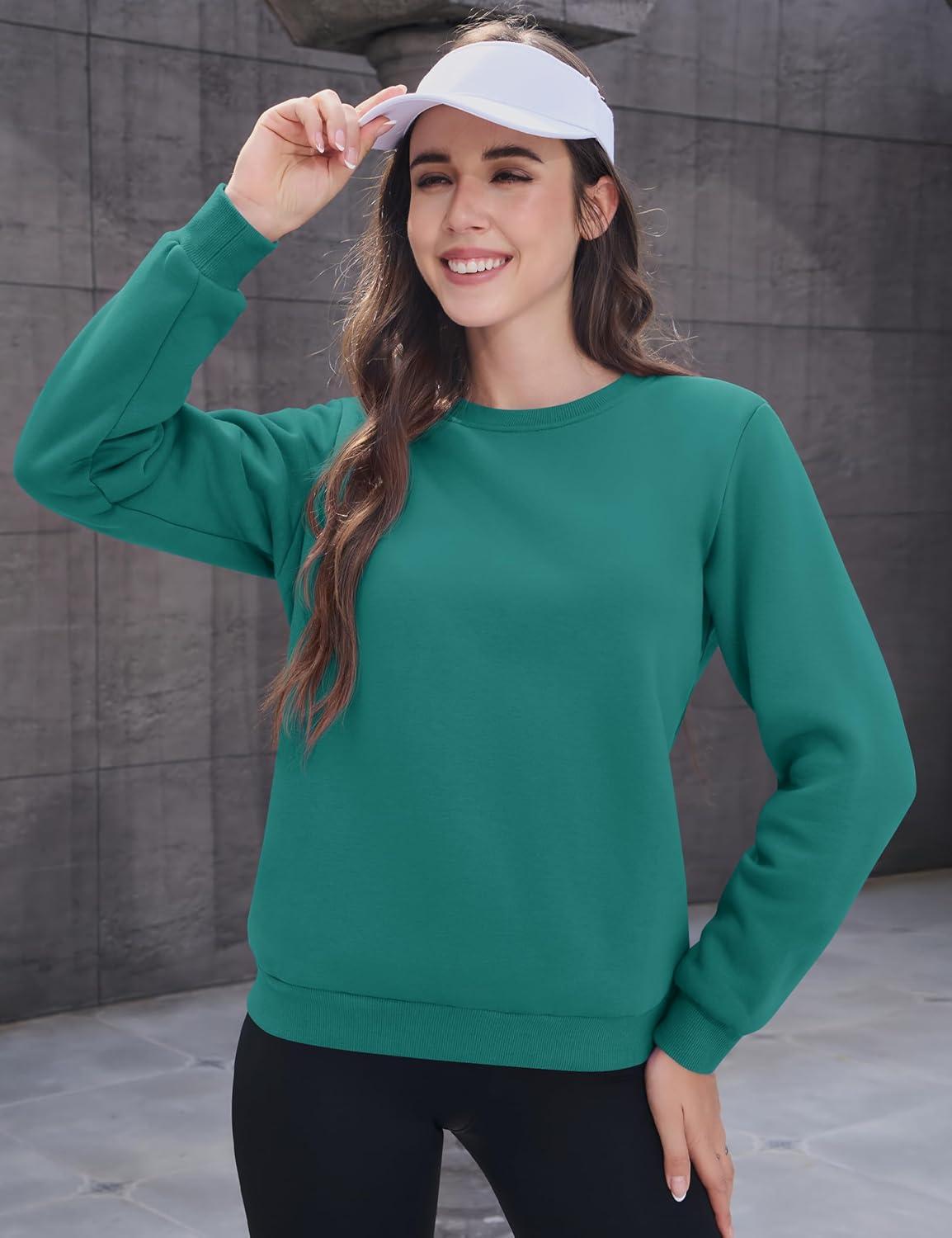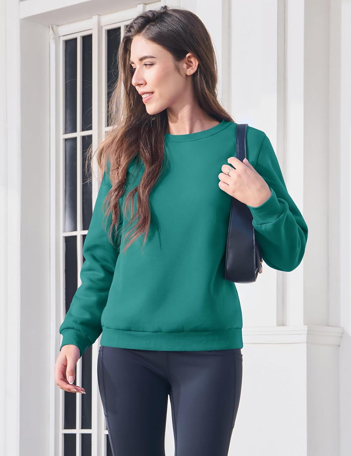 MAGCOMSEN Women’s Sherpa Lined Sweatshirts Thermal Casual Crewneck Fleece Pullover Winter Warm Thick Tops(Emerald Green)