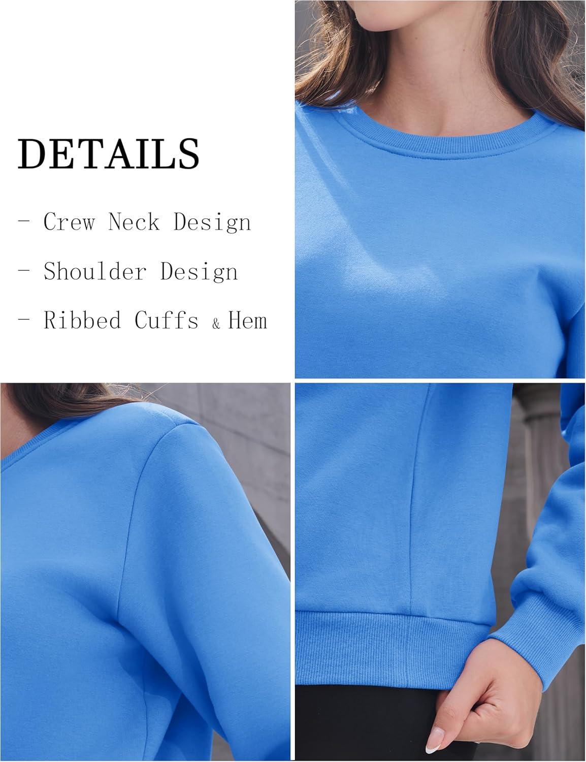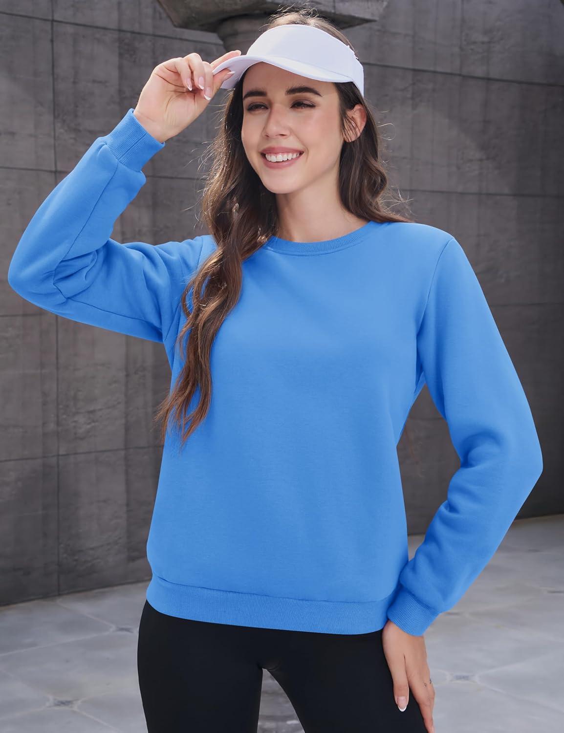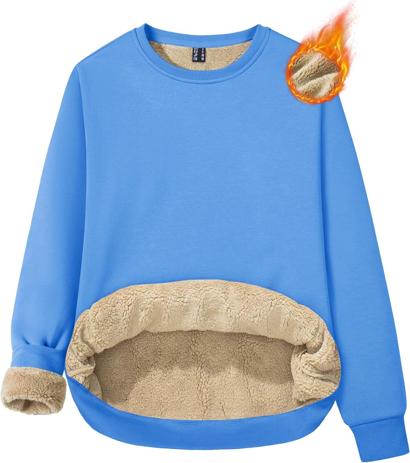 MAGCOMSEN Women’s Sherpa Lined Sweatshirts Thermal Casual Crewneck Fleece Pullover Winter Warm Thick Tops(Ice Blue)