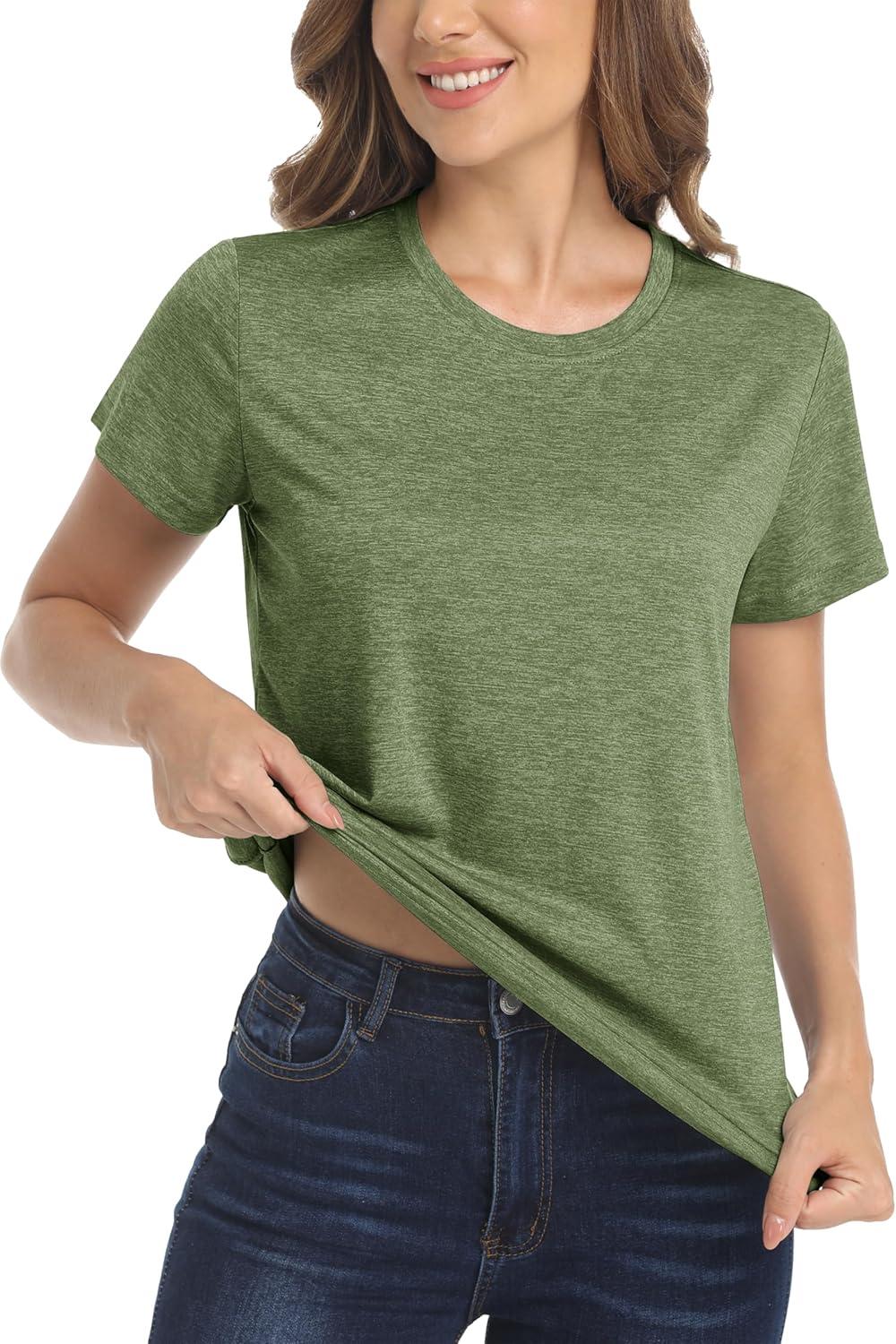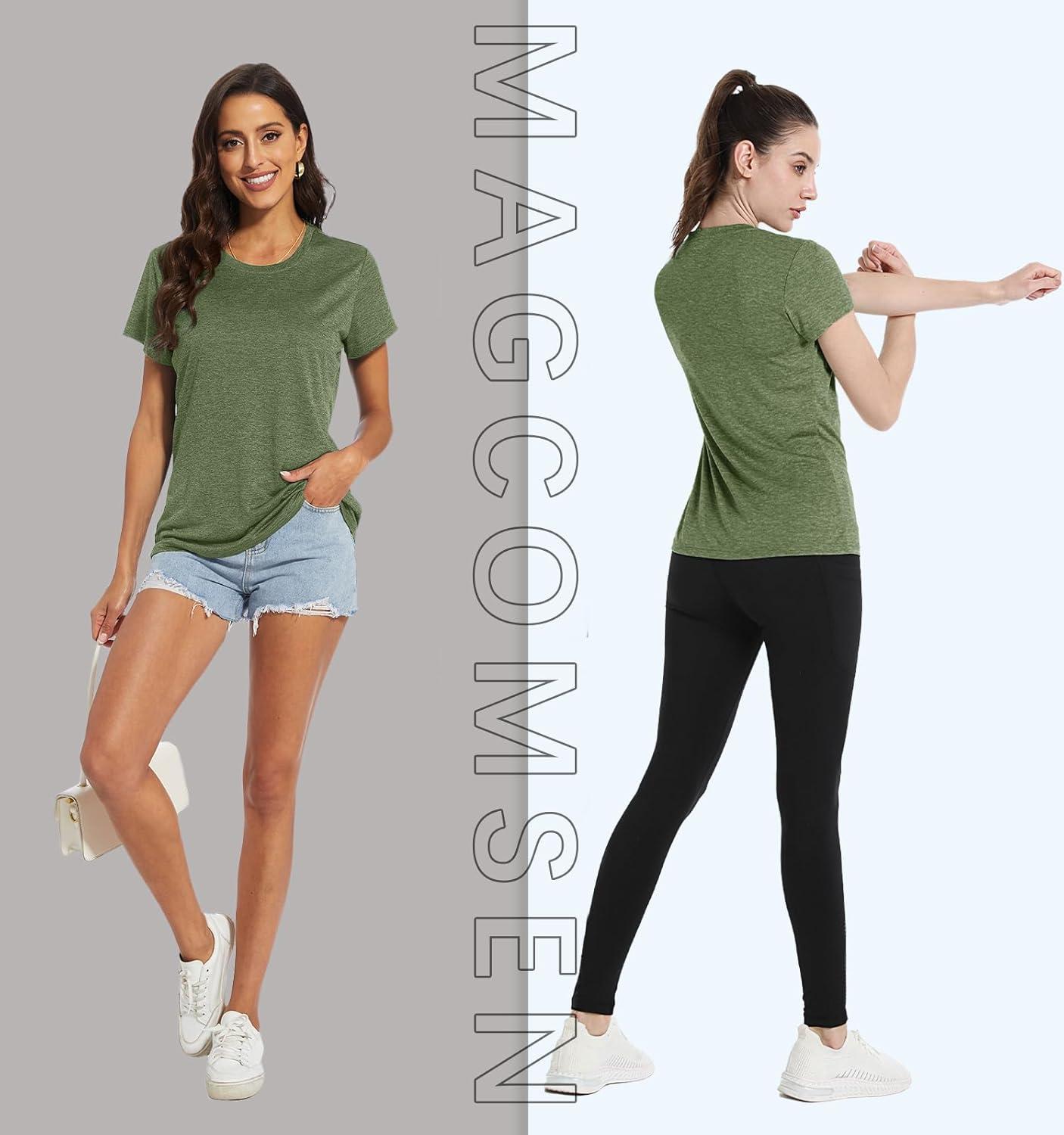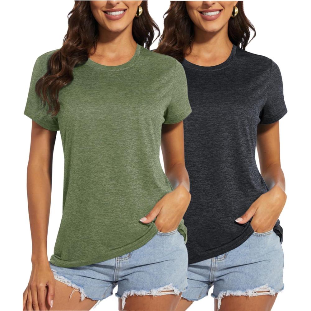 MAGCOMSEN Women’s Short Sleeve Quick Dry T-Shirt Cool Wicking Moisture Workout Athletic Hiking Running Yoga Gym 2 Pack(2 Pack-black army Green)