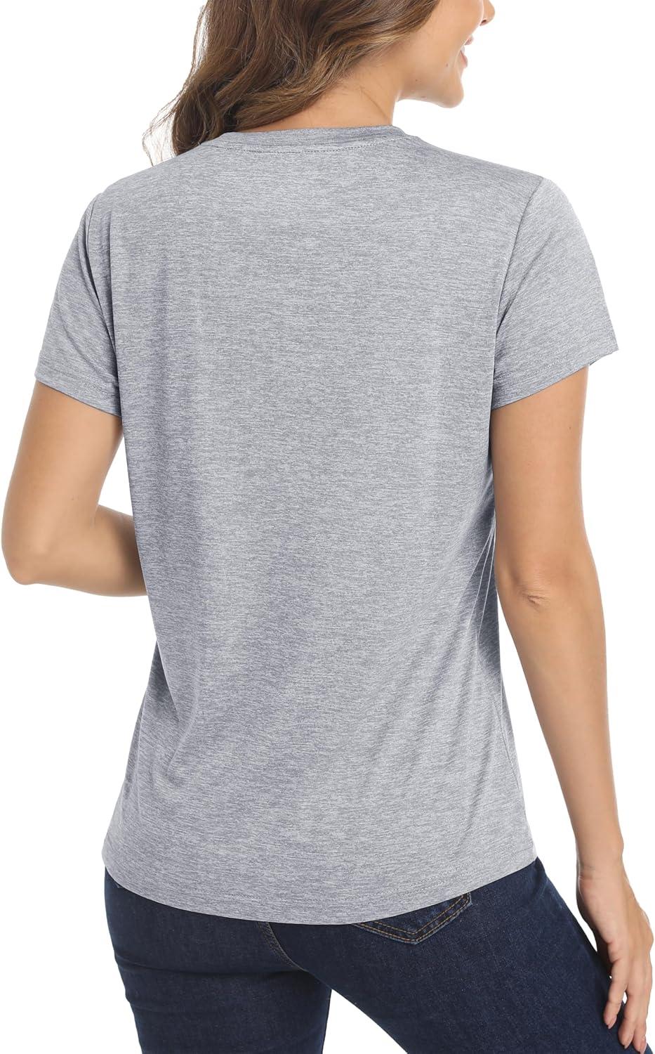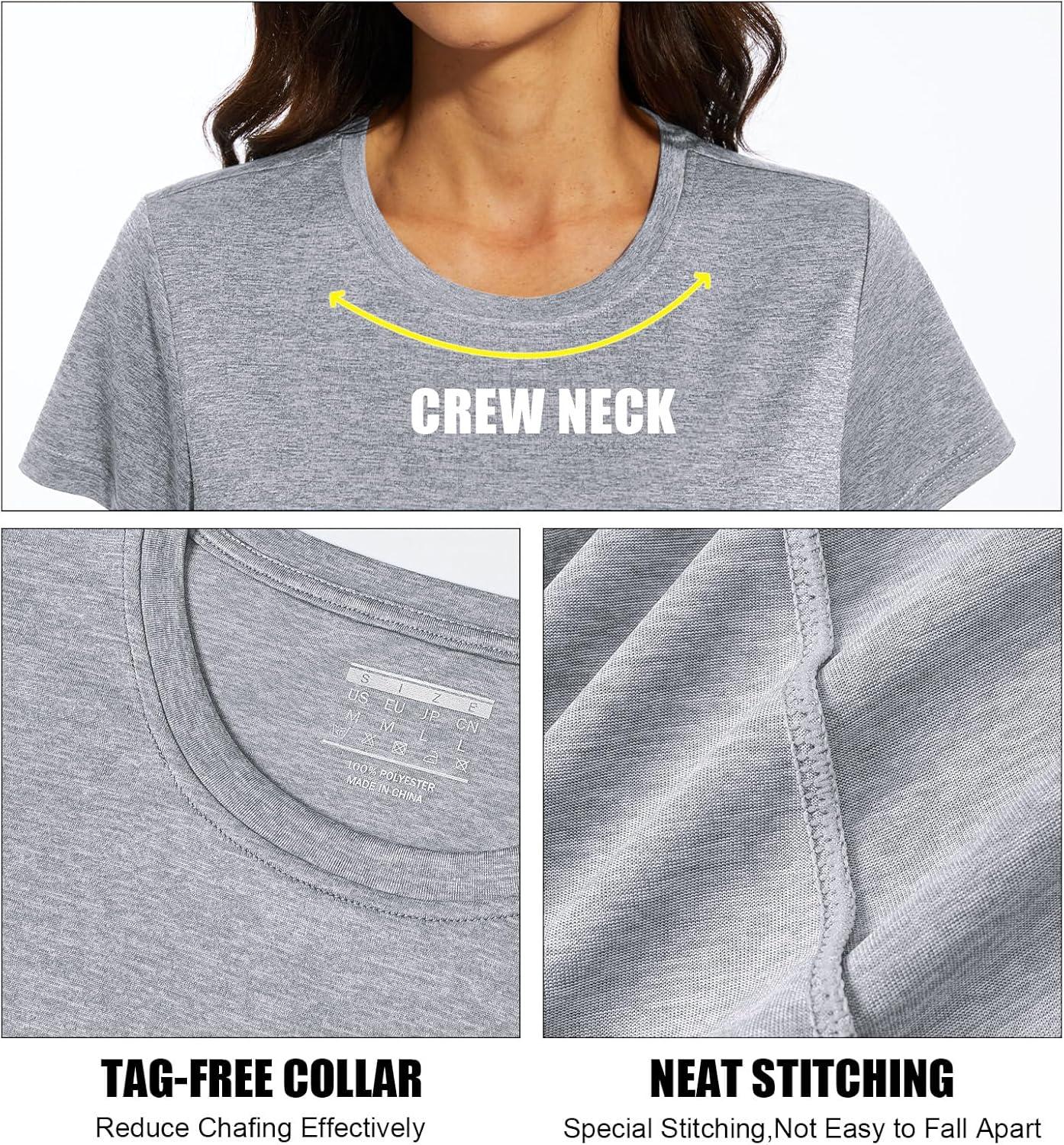 MAGCOMSEN Women’s Short Sleeve Quick Dry T-Shirt Cool Wicking Moisture Workout Athletic Hiking Running Yoga Gym 2 Pack(2 Pack-black light Grey)