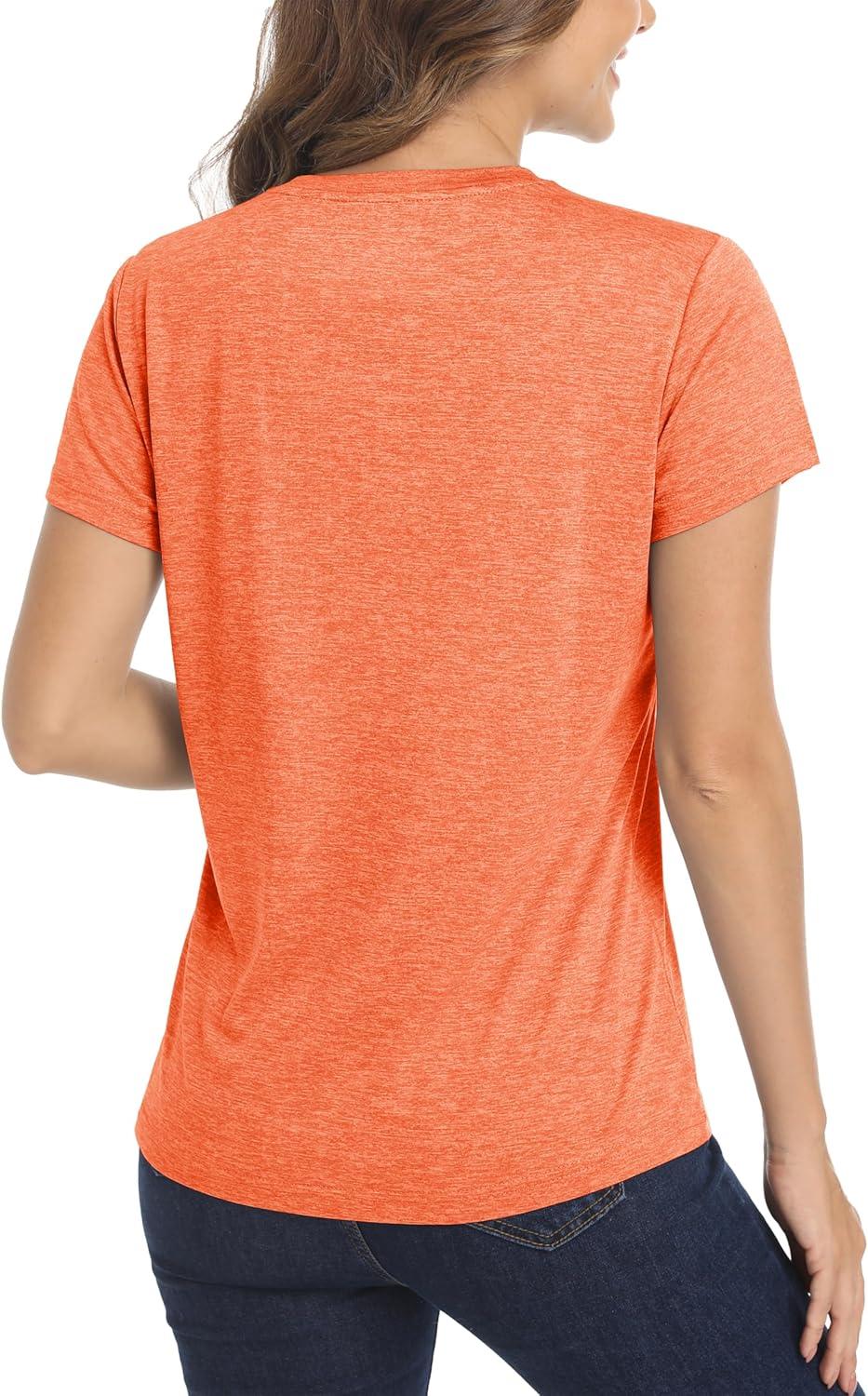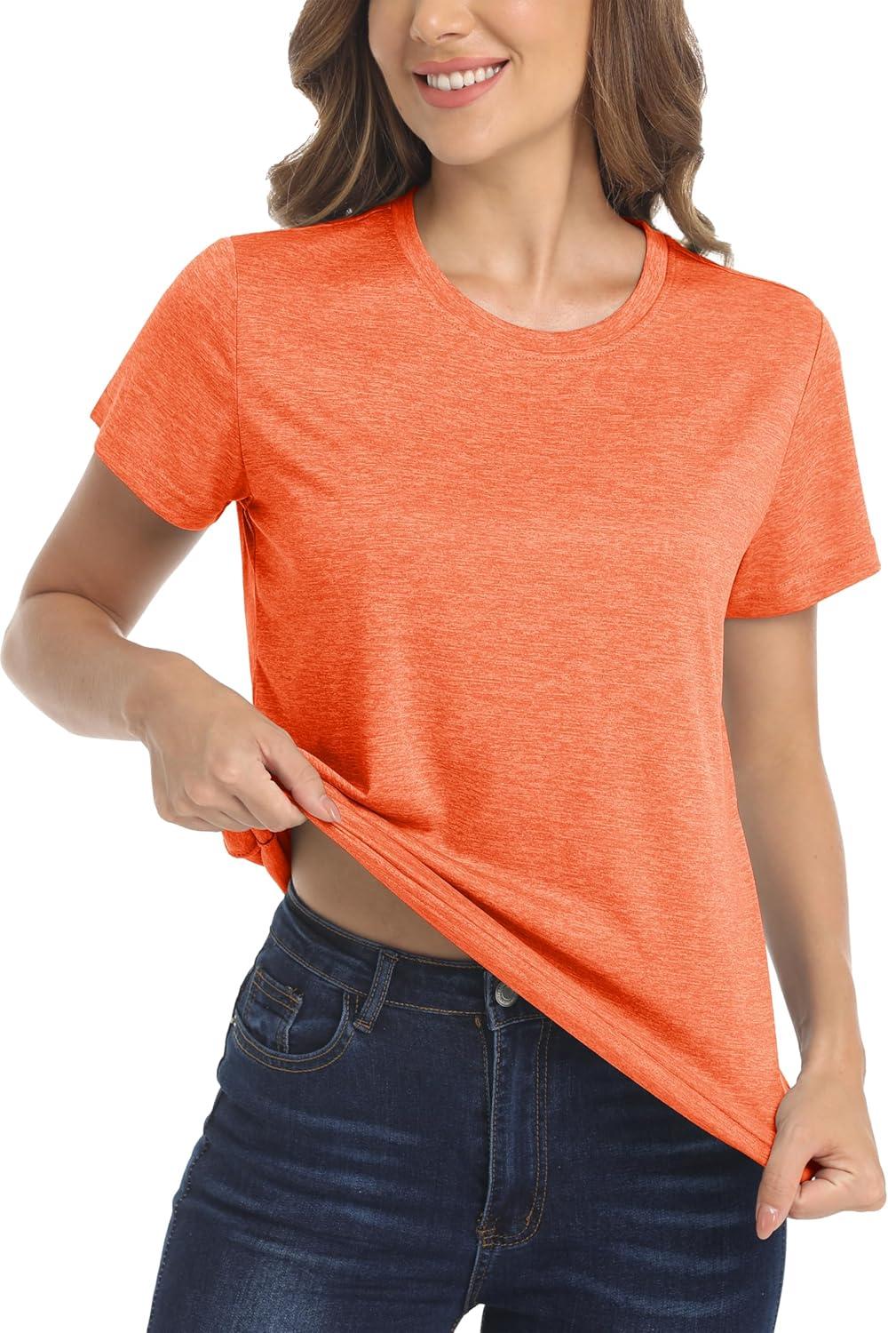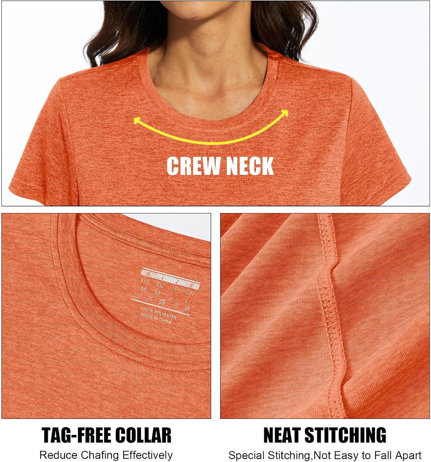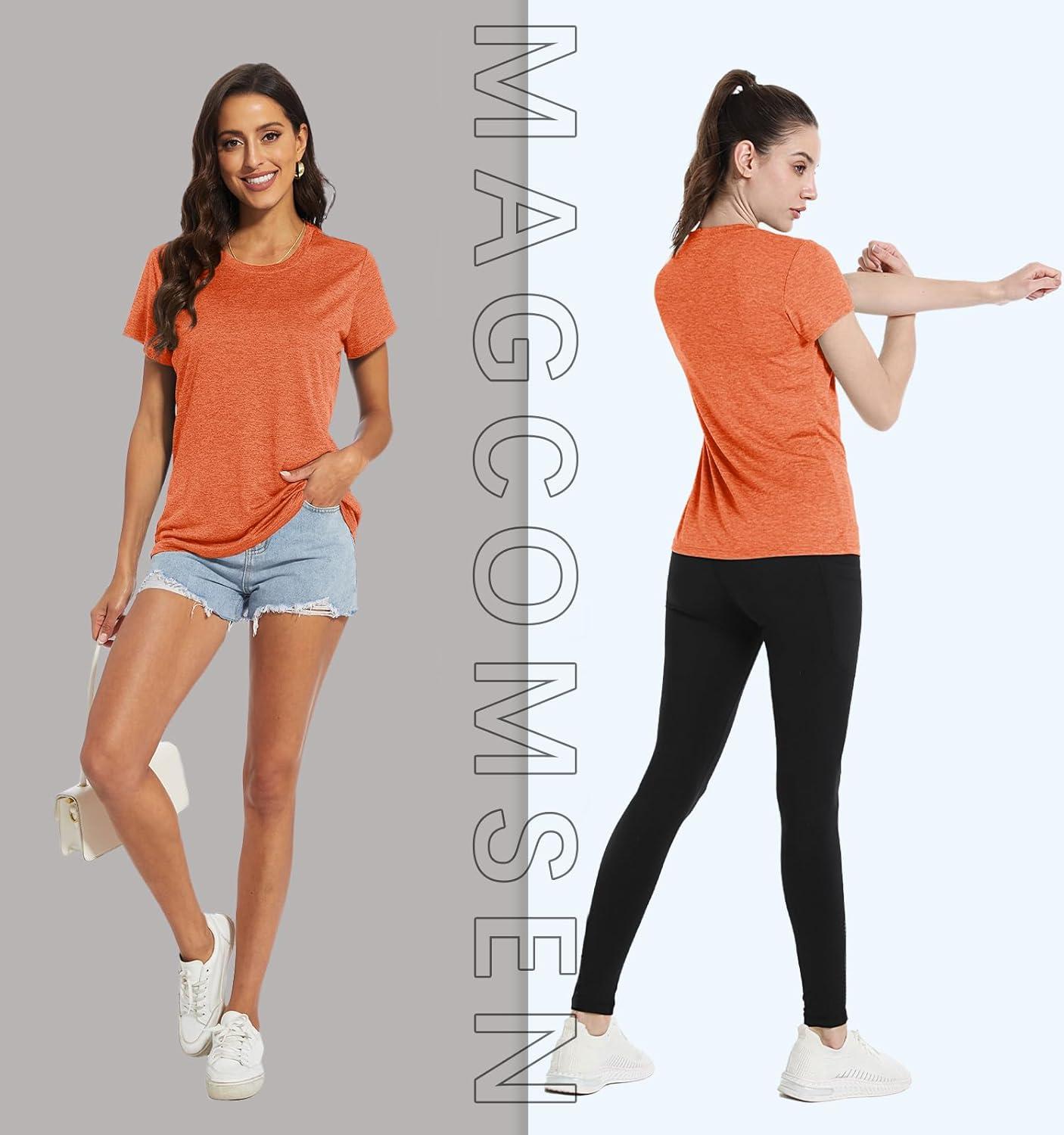 MAGCOMSEN Women’s Short Sleeve Quick Dry T-Shirt Cool Wicking Moisture Workout Athletic Hiking Running Yoga Gym 2 Pack(2 Pack-light Grey orange)