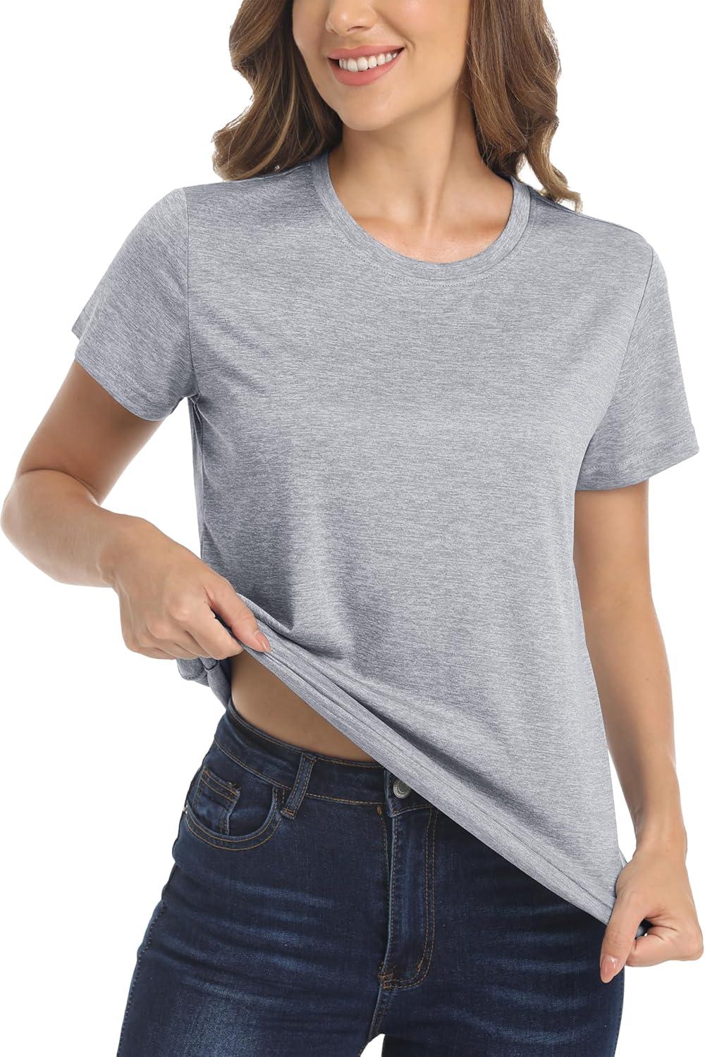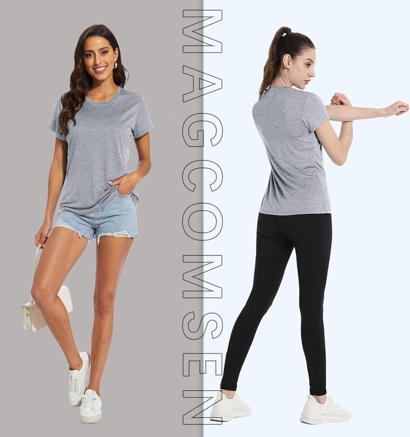 MAGCOMSEN Women’s Short Sleeve Quick Dry T-Shirt Cool Wicking Moisture Workout Athletic Hiking Running Yoga Gym 2 Pack(2 Pack-light Grey light Blue)