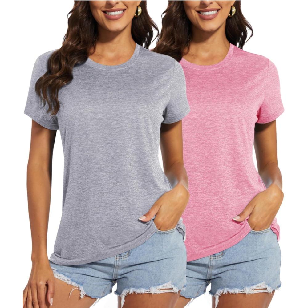 MAGCOMSEN Women’s Short Sleeve Quick Dry T-Shirt Cool Wicking Moisture Workout Athletic Hiking Running Yoga Gym 2 Pack(2 Pack-light Grey pink)