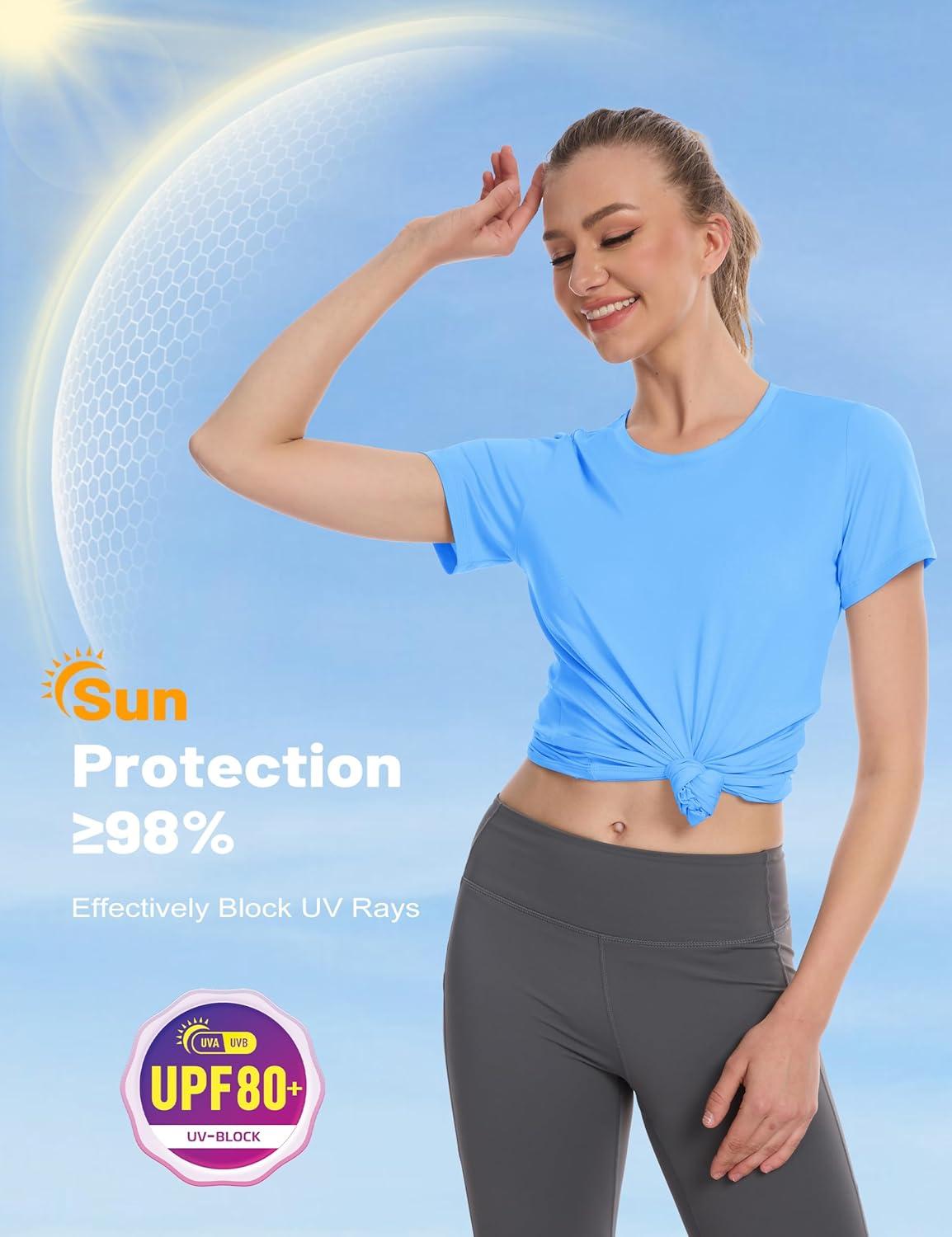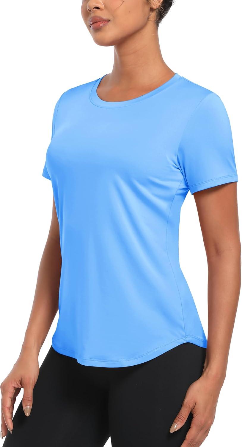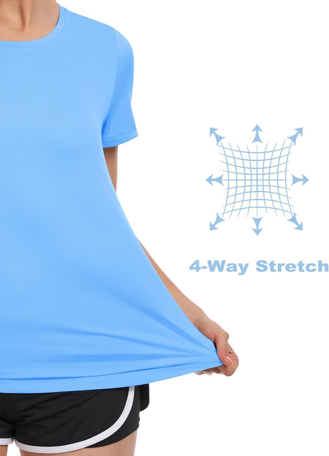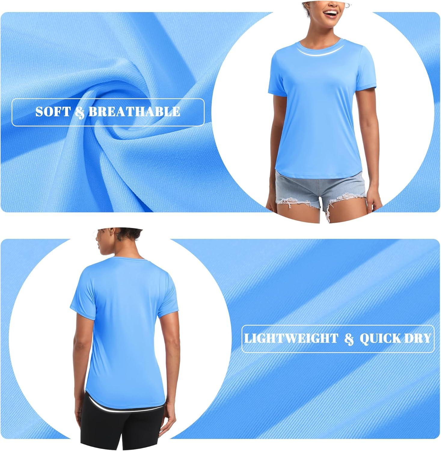 MAGCOMSEN Women’s Short Sleeve T-Shirts UPF 50+ Sun Protection Quick Dry Athletic Running Workout Rash Guard Tops(S Blue)