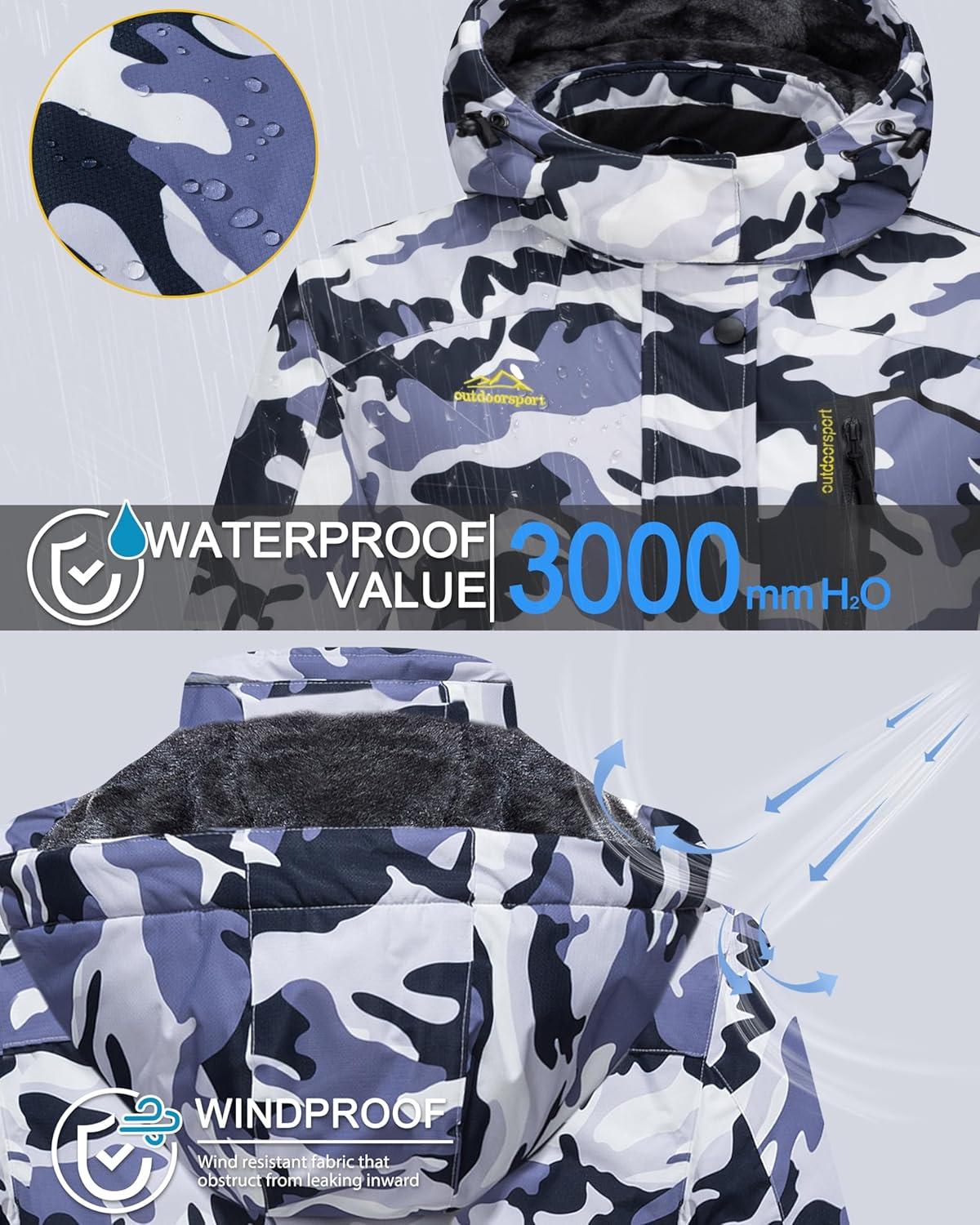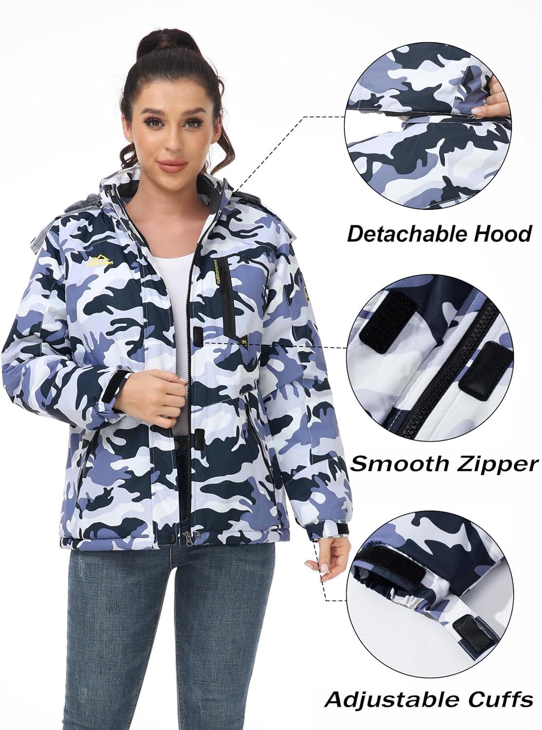 MAGCOMSEN Womens Ski Jacket Waterproof Insulated Snow Jacket Warm Windproof Winter Coats with Hood Fleece Lined Jacket(Grey Camo)