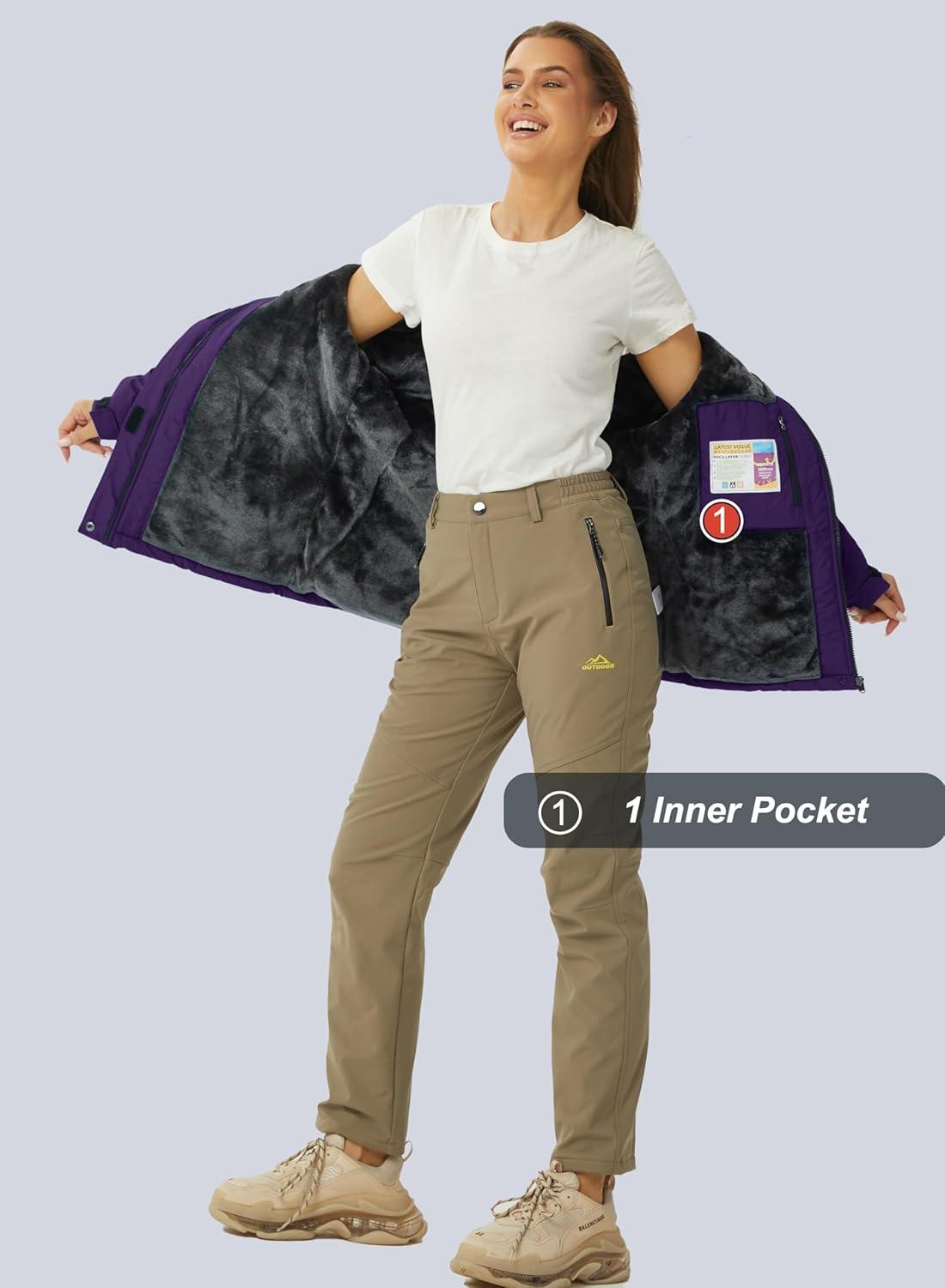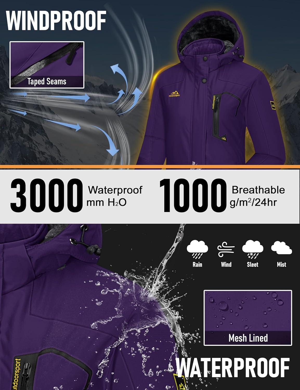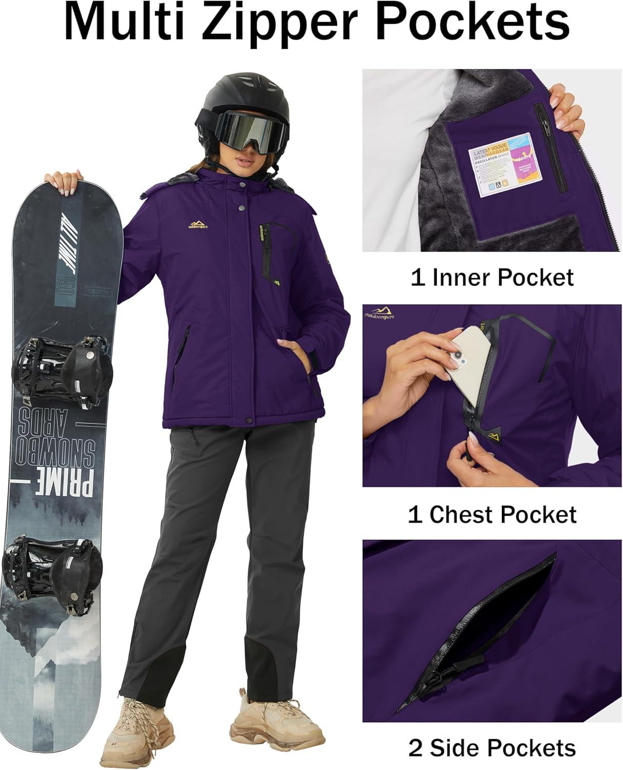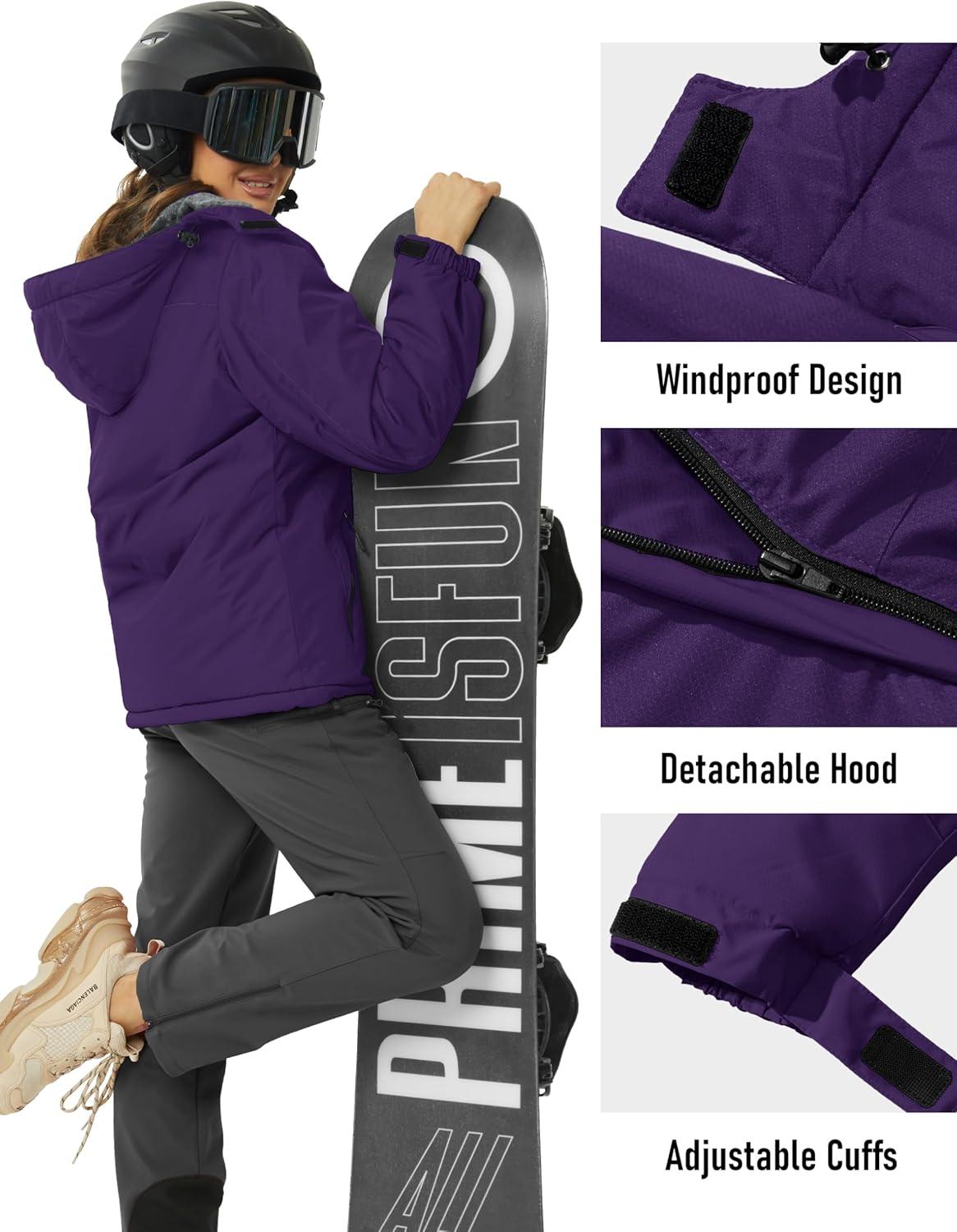 MAGCOMSEN Womens Ski Jacket Waterproof Insulated Snow Jacket Warm Windproof Winter Coats with Hood Fleece Lined Jacket(Purple)