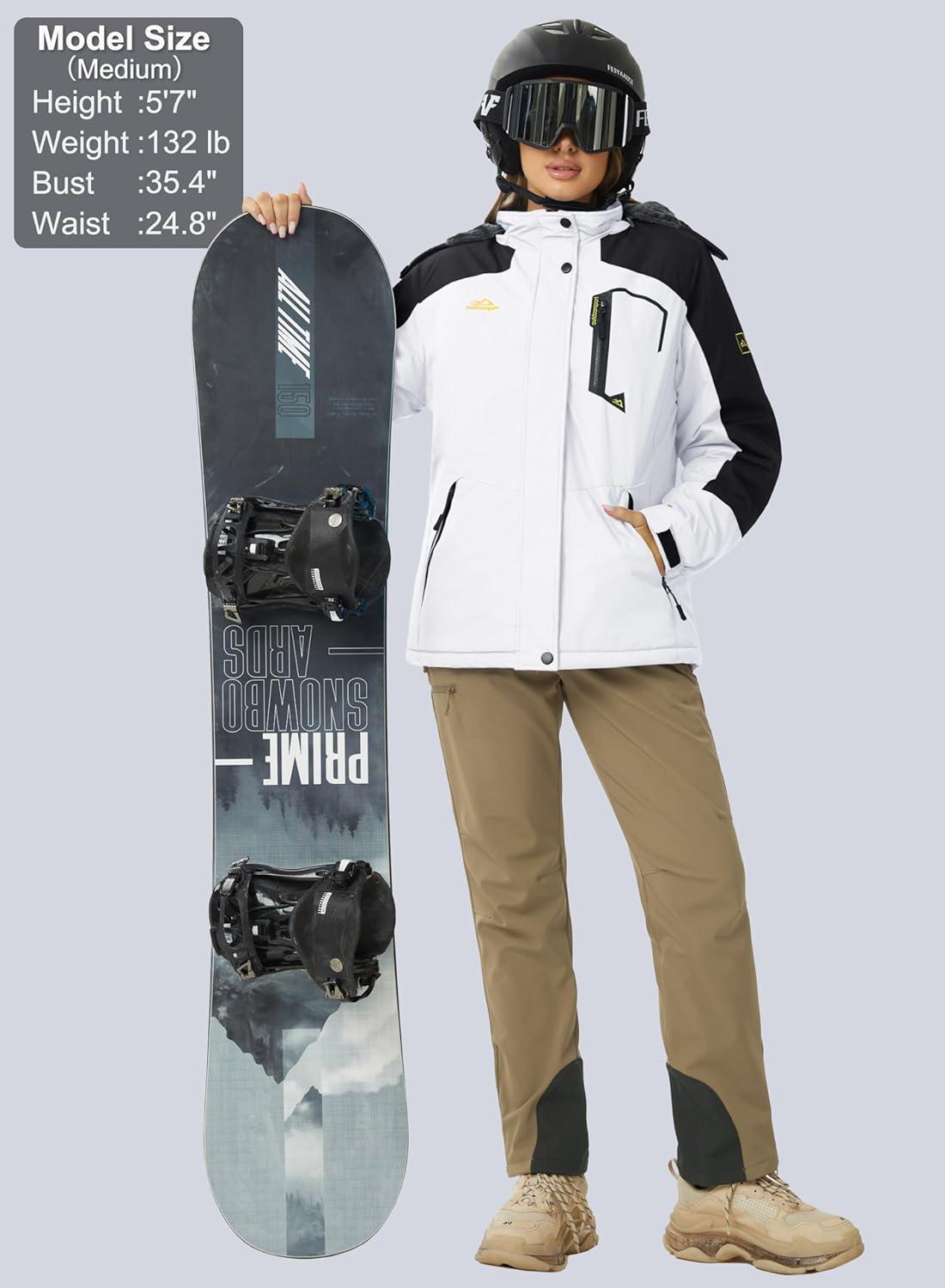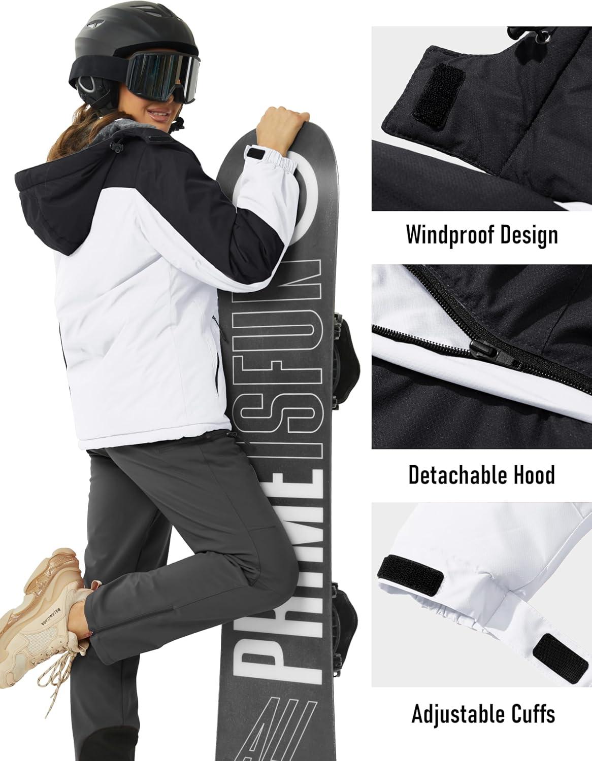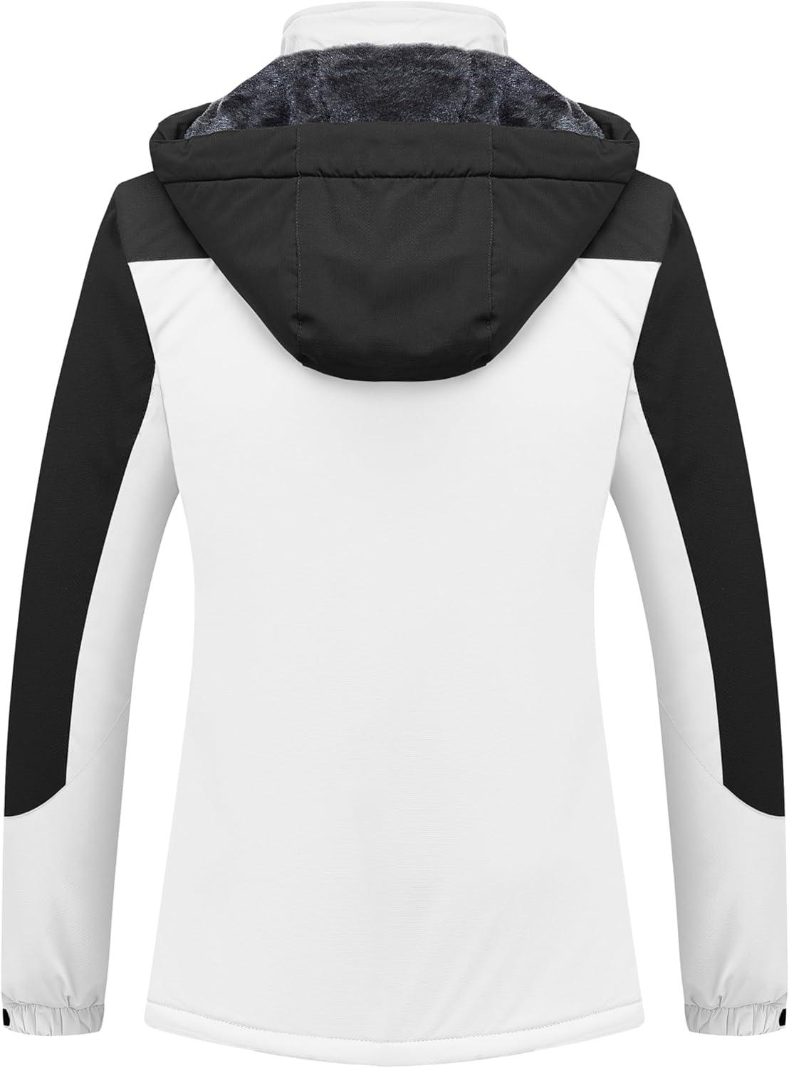 MAGCOMSEN Womens Ski Jacket Waterproof Insulated Snow Jacket Warm Windproof Winter Coats with Hood Fleece Lined Jacket(White Black)